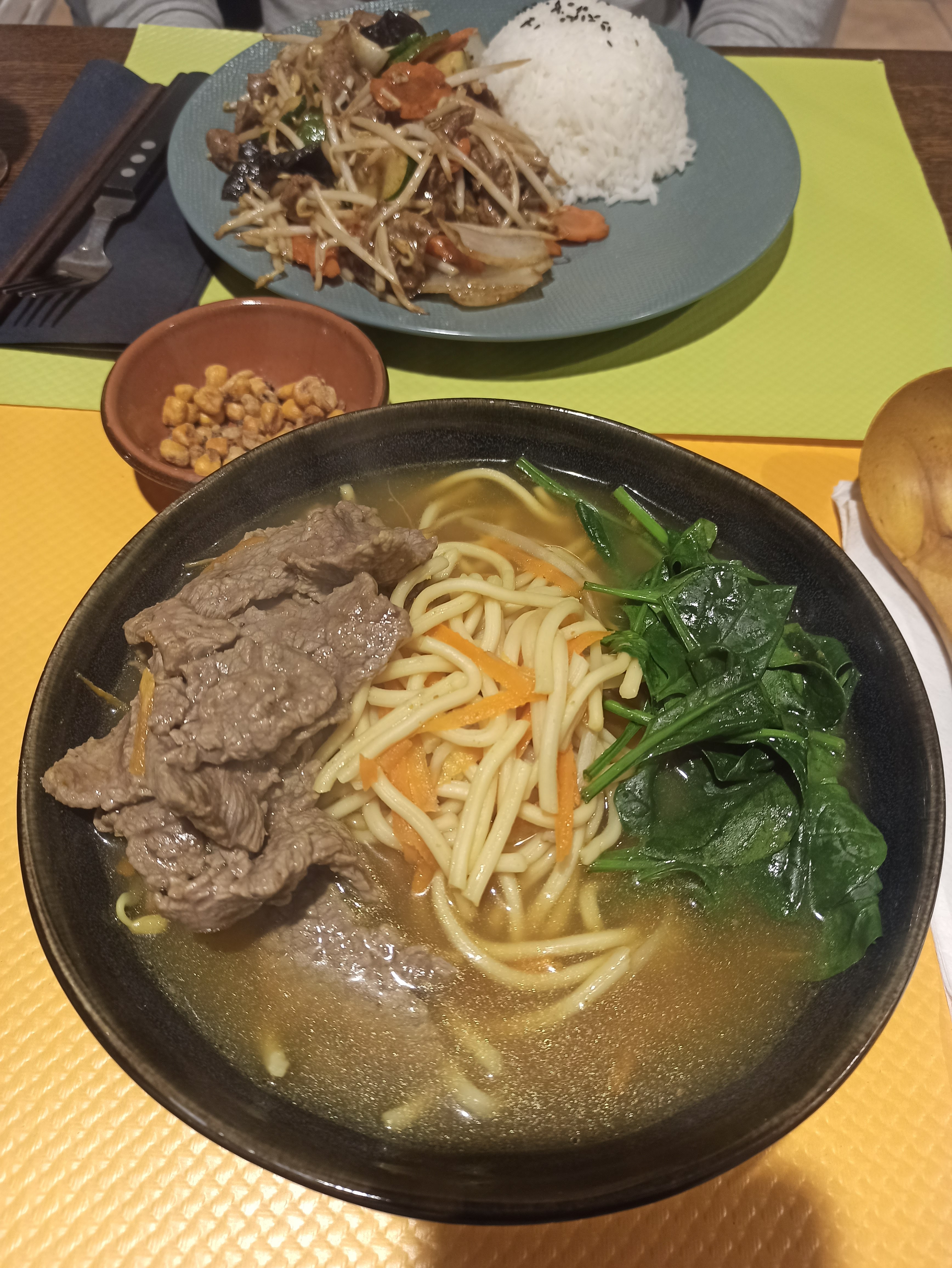 Accueil sympathique, service rapide et nourriture copieuse et délicieuse, tout était parfait. Le bœuf était tendre, la sauce délicieuse, enfin un vrai restaurant asiatique.