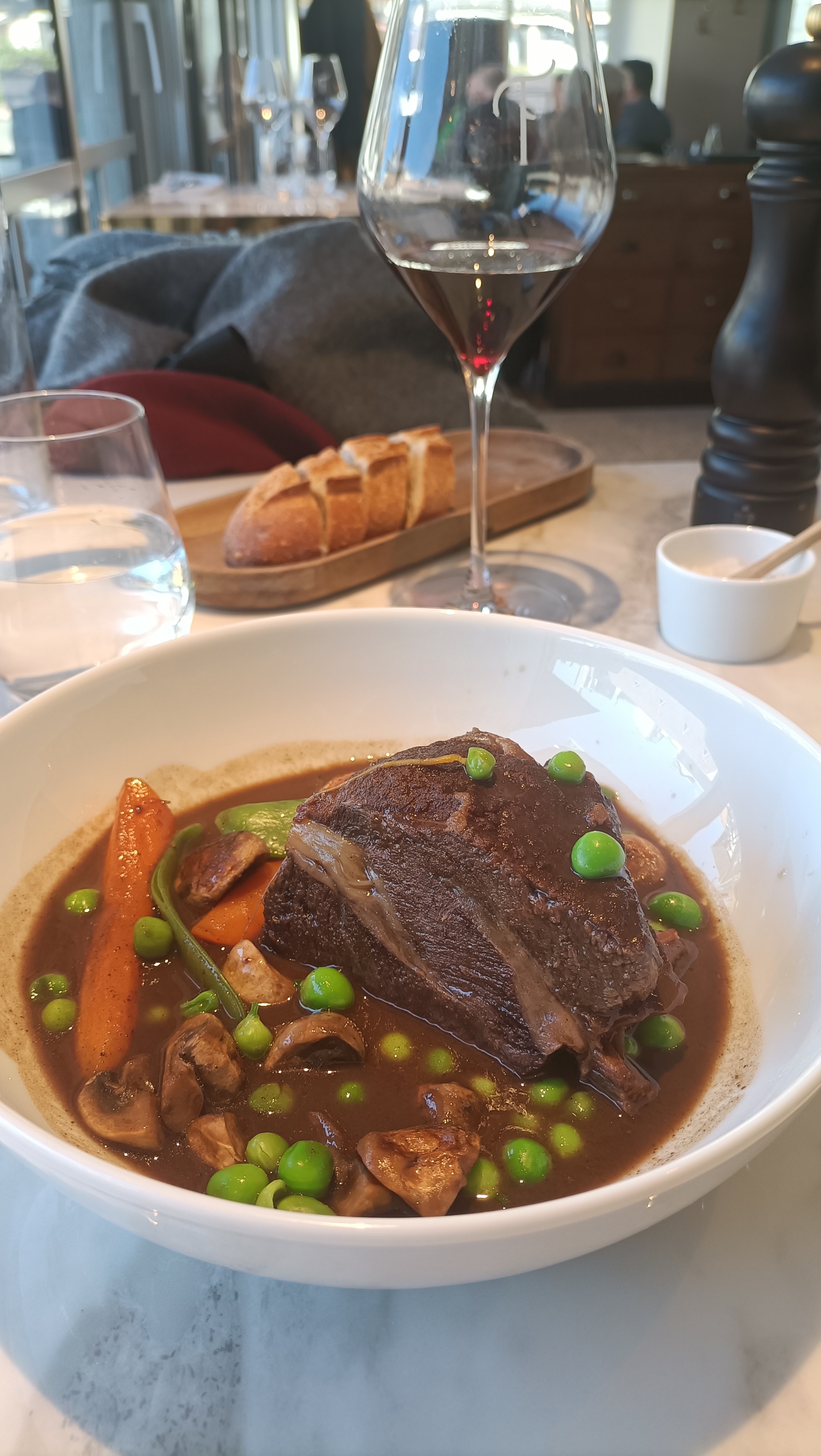 Fondant de bœuf excellent, accompagné de petit pois, au mois de février, un peu dommage d'autant plus que le restaurant donne sur la place du marché où il pourrait se fournir en produits locaux et de saison... ce qui justifierait ses prix. Belle déco même si les assises ne sont pas toutes confortables, ambiance chaleureuse. Une belle résurrection après chez Hervé.