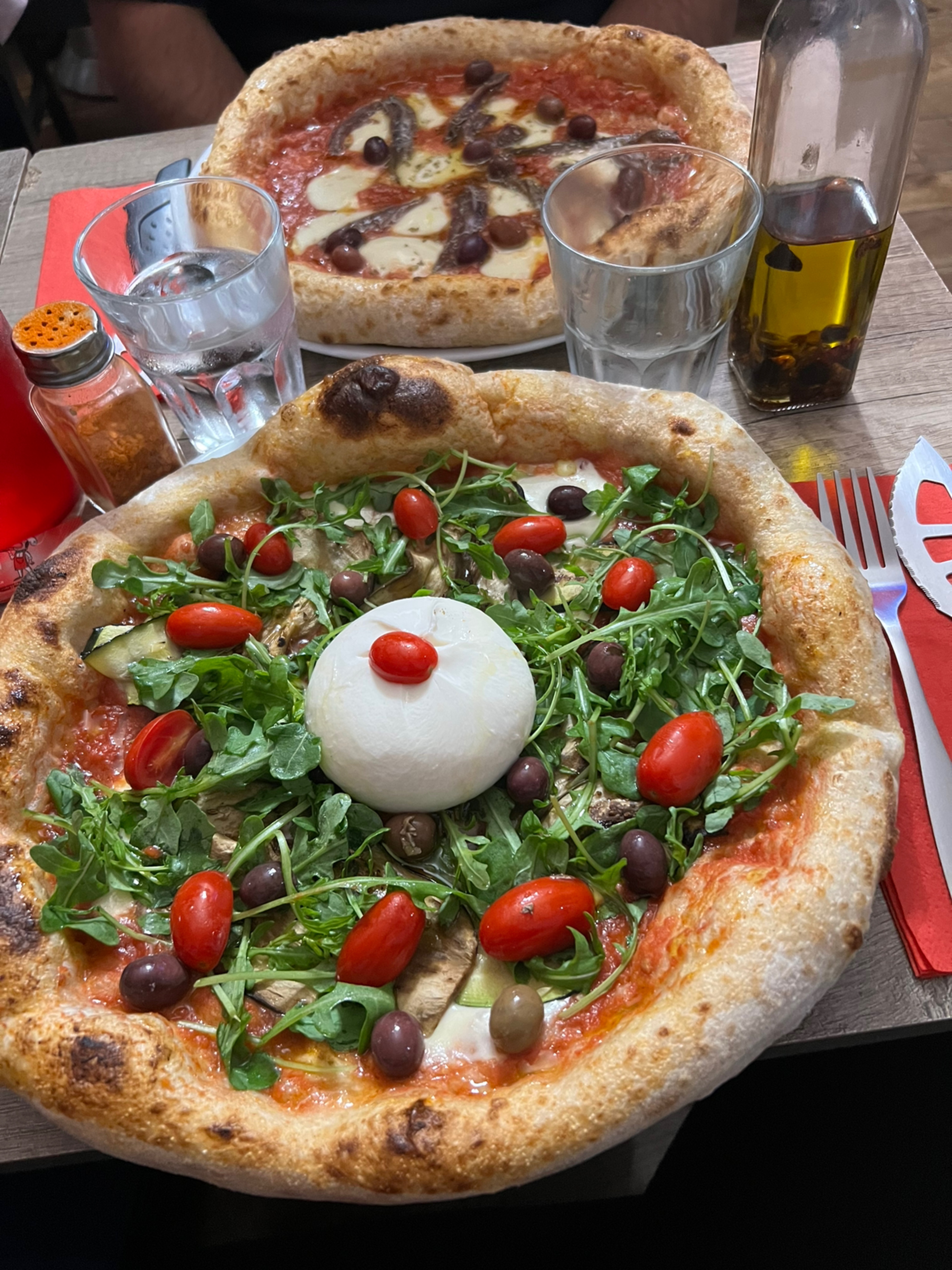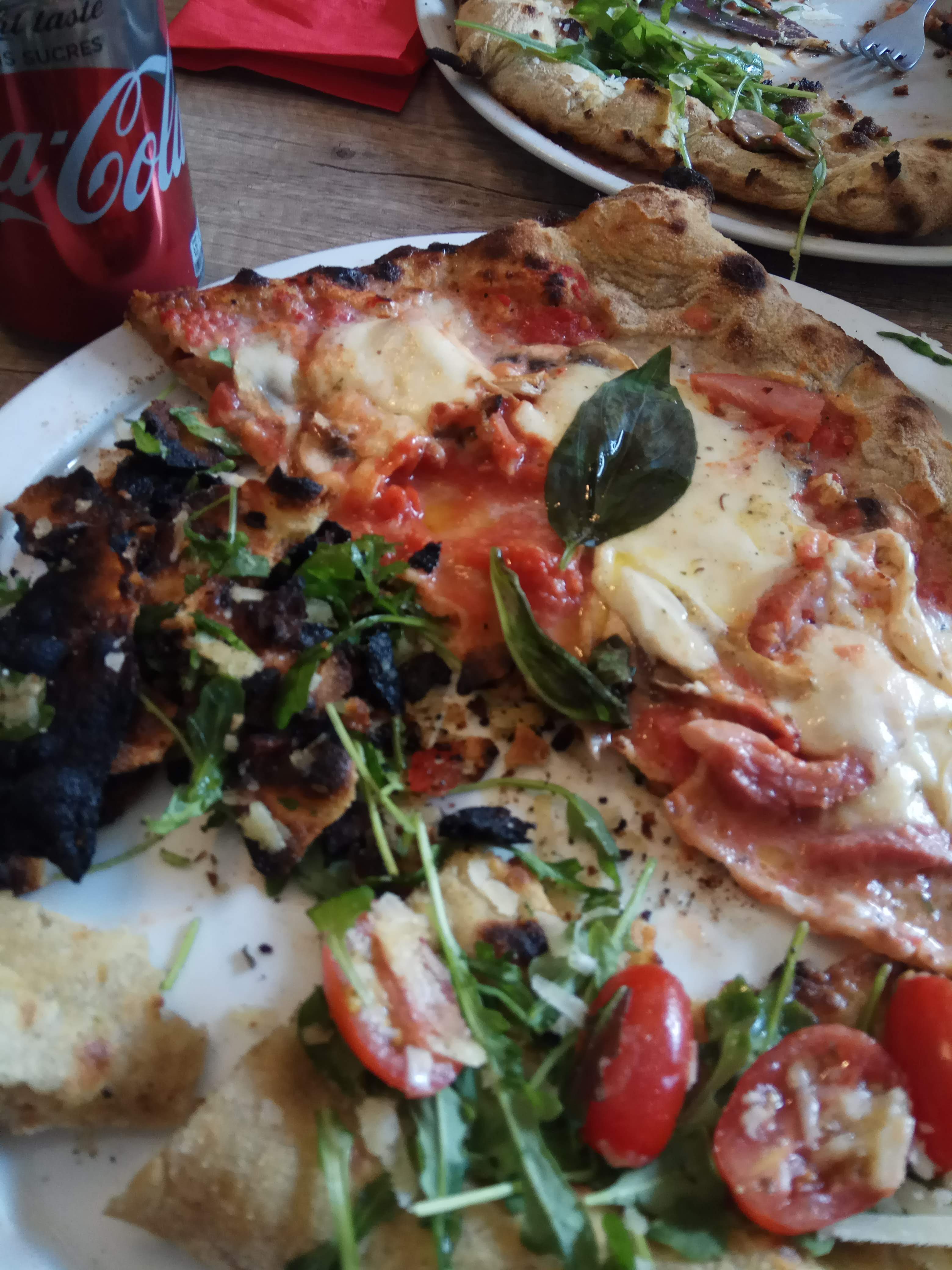 Les pizzas sont bonnes, la mienne était légèrement brûlée du coup j'étais un peu déçue, pas de lambrusco ni de lemoncello, dommage... La salle est très petite pour manger sur place et il fait vraiment très chaud...le patron et la serveuse sont agréable