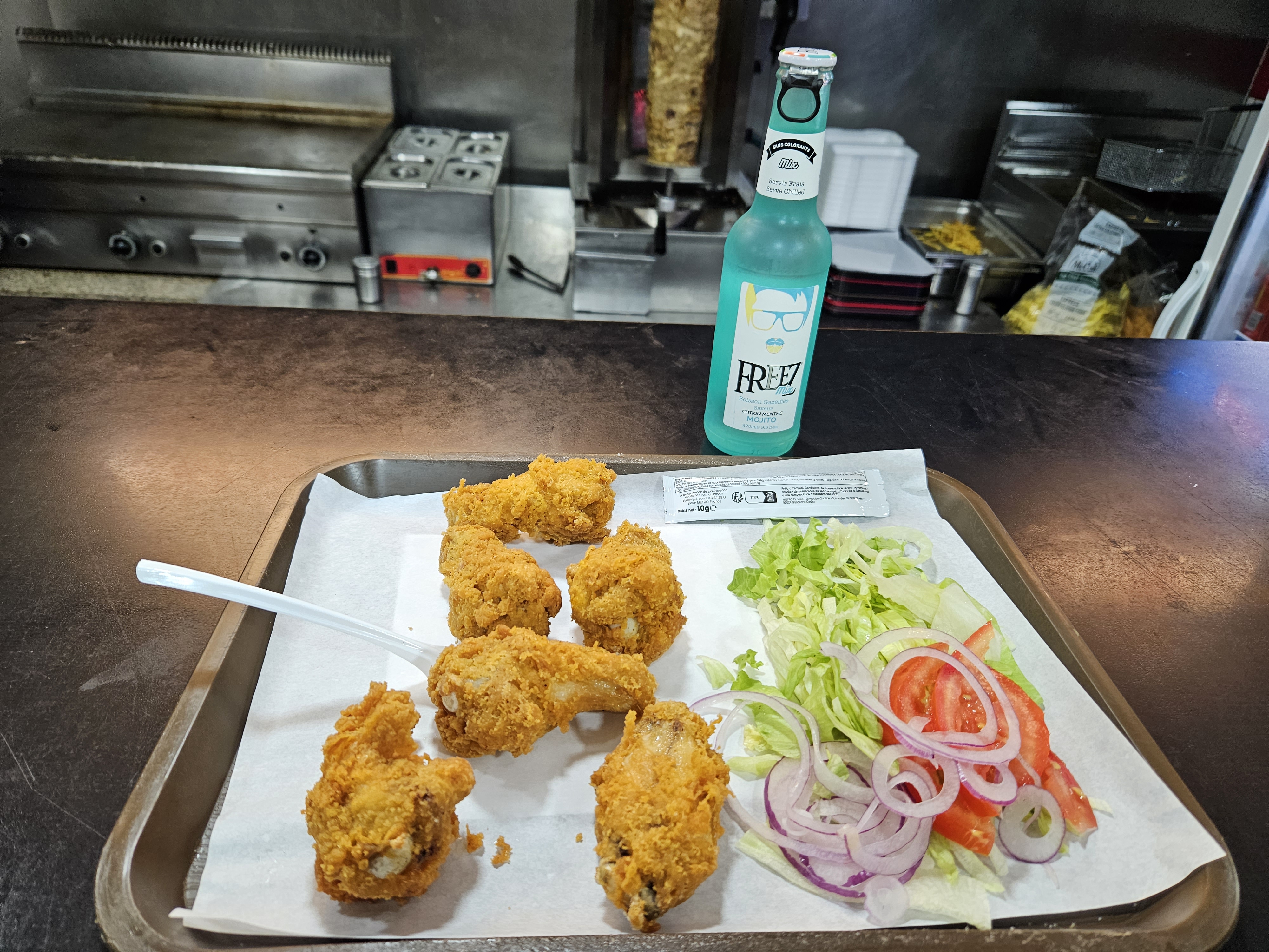 Les poulets sont préparés à la commande, ce qui les rend délicieusement croustillants. Le monsieur à l'accueil la nuit était très attentionné, il a gentiment échangé les frites contre une petite salade. C'est le choix parfait lorsque vous venez d'arriver à Créteil Université et que vous avez un petit creux approchant minuit.