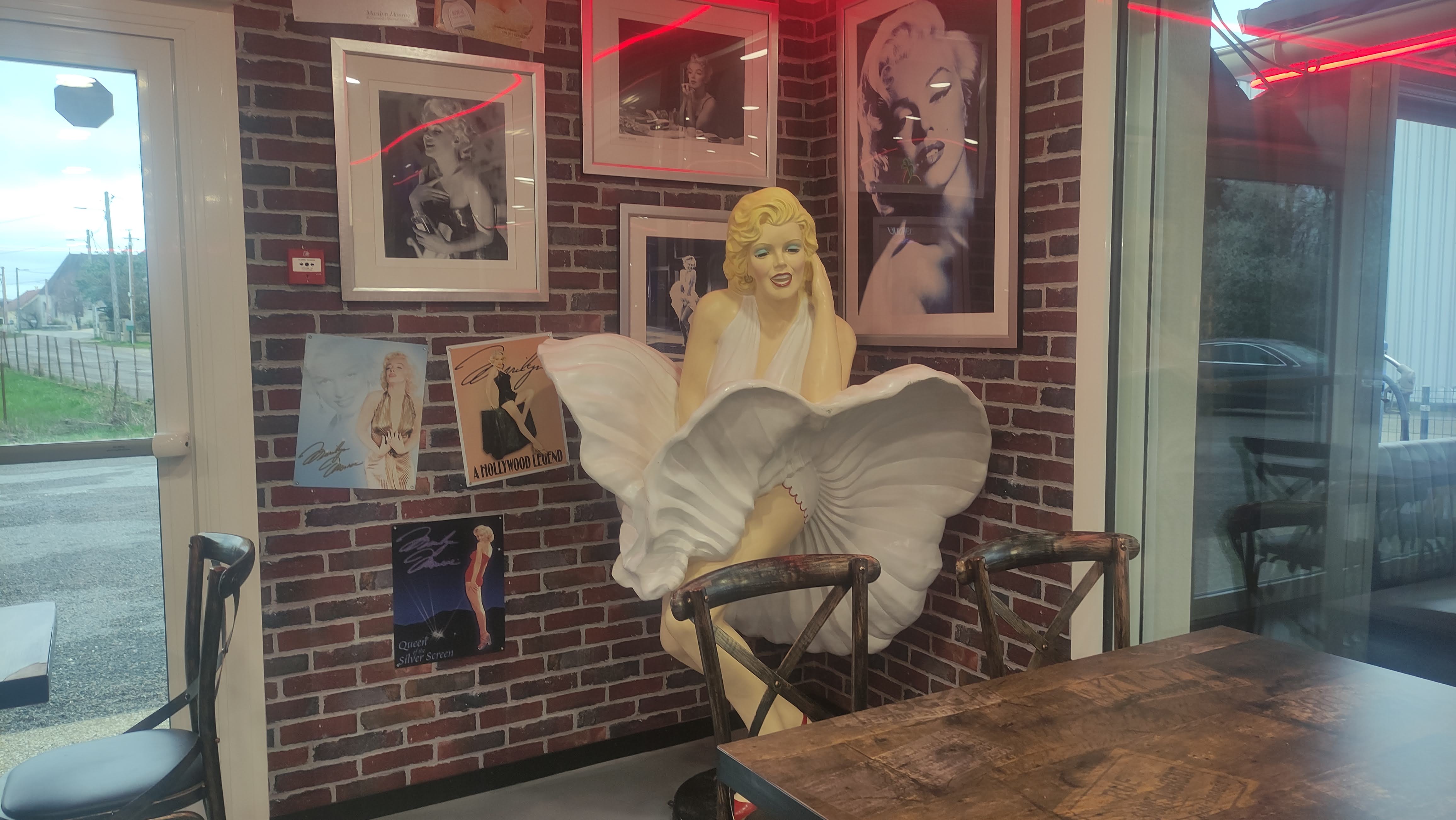 Un lieu dépaysant, nous projetant dans les années 60. Prendre son repas en compagnie d'Elvis 🌟 de Marilyn 🌟 dans un décor extravagant . Le service 🌟 et la nourriture 🌟 sont des atouts majeurs pour passer un excellent moment de convivialité. À bientôt c'est sûr. Les prix sont très abordables encore une étoile 🌟.