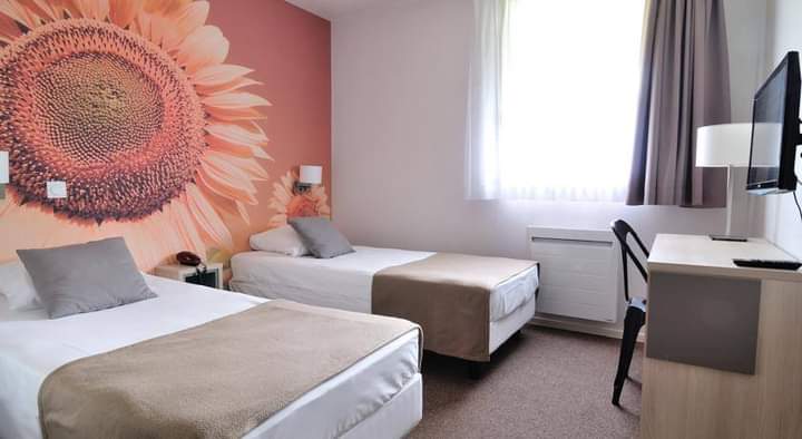 Chambre un peu petite mais très correct pour le prix, super cadre et étonnamment calme, situé sur une aire d'autoroute je ne m'attendais pas à tant de calme, la piscine est top et balade possible autour et dans la nature
