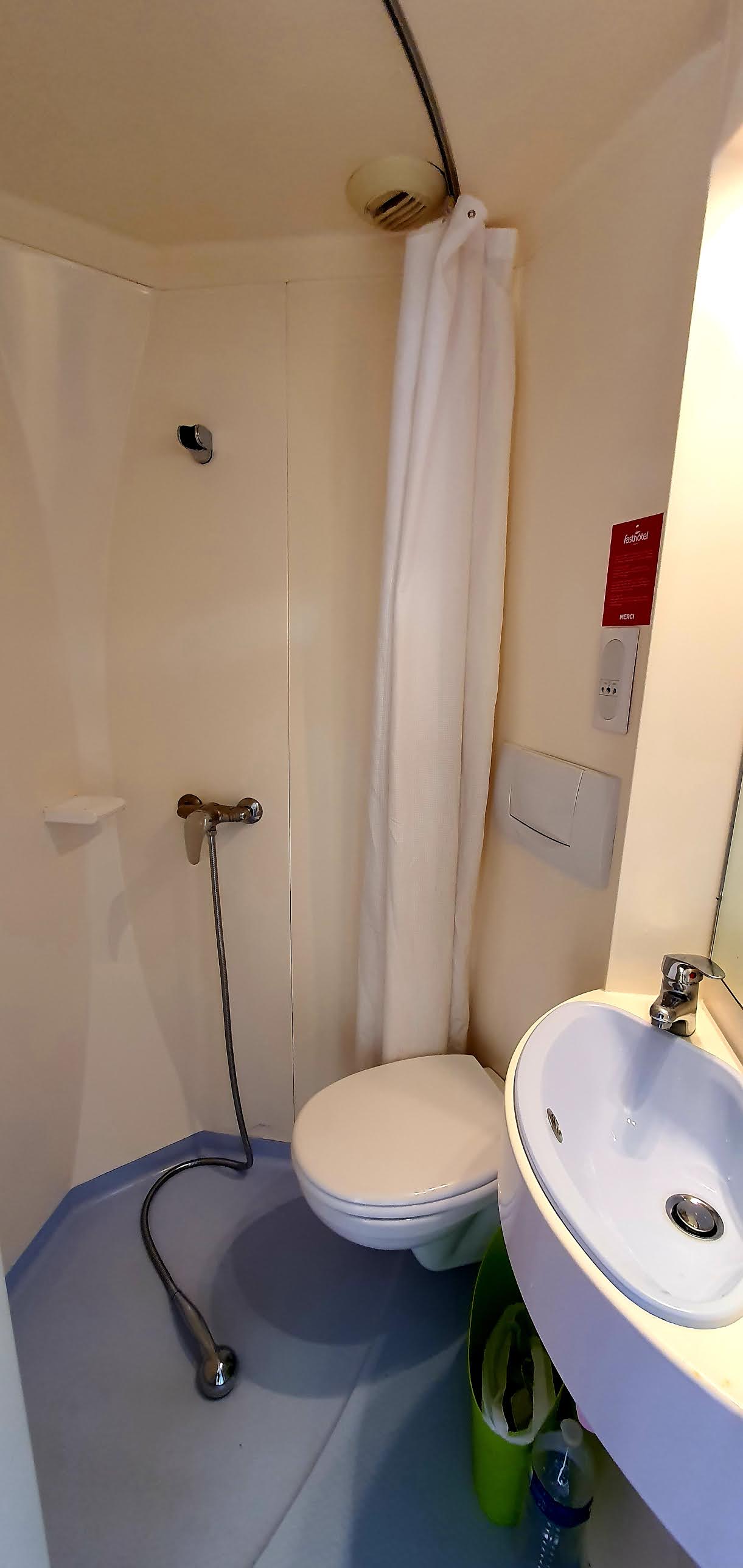 Pour une premiere fois dans cet hotel je fus tres déçu de n avoir eu que le prix de 79 euros pour une chambre a ma demande on ma proposé une chambre a 59 euros dans cette chambre j ai eu droit a un toilette dans la douche photo a l appui