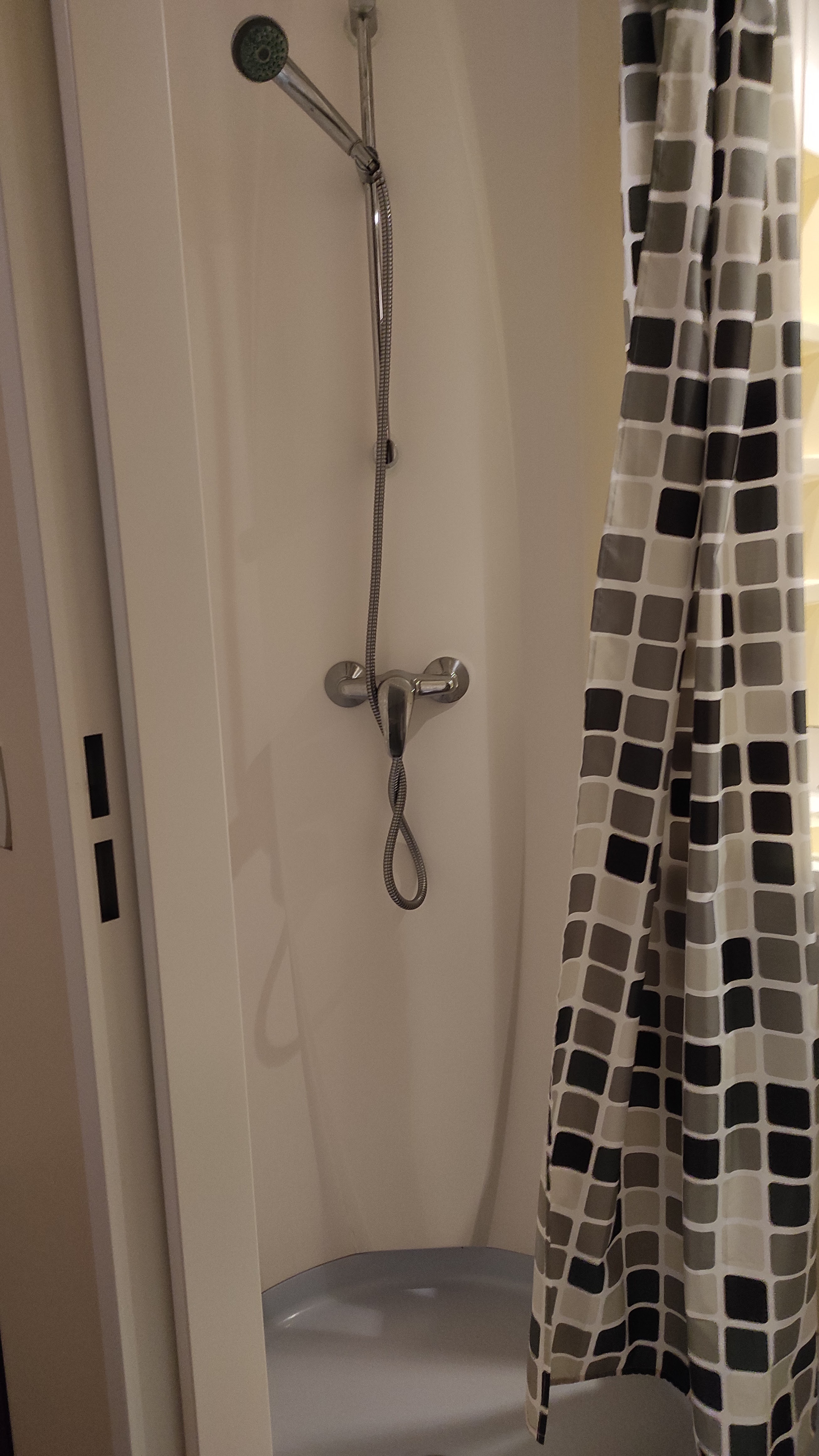 Fondamentalement, une cabine portative. 2 prises, 1 pour TV et autre pour un petit ventilateur. J'ai passé la moitié de la nuit avec la porte (et la fenêtre unique) grandes ouvertes. Service agréable cependant.