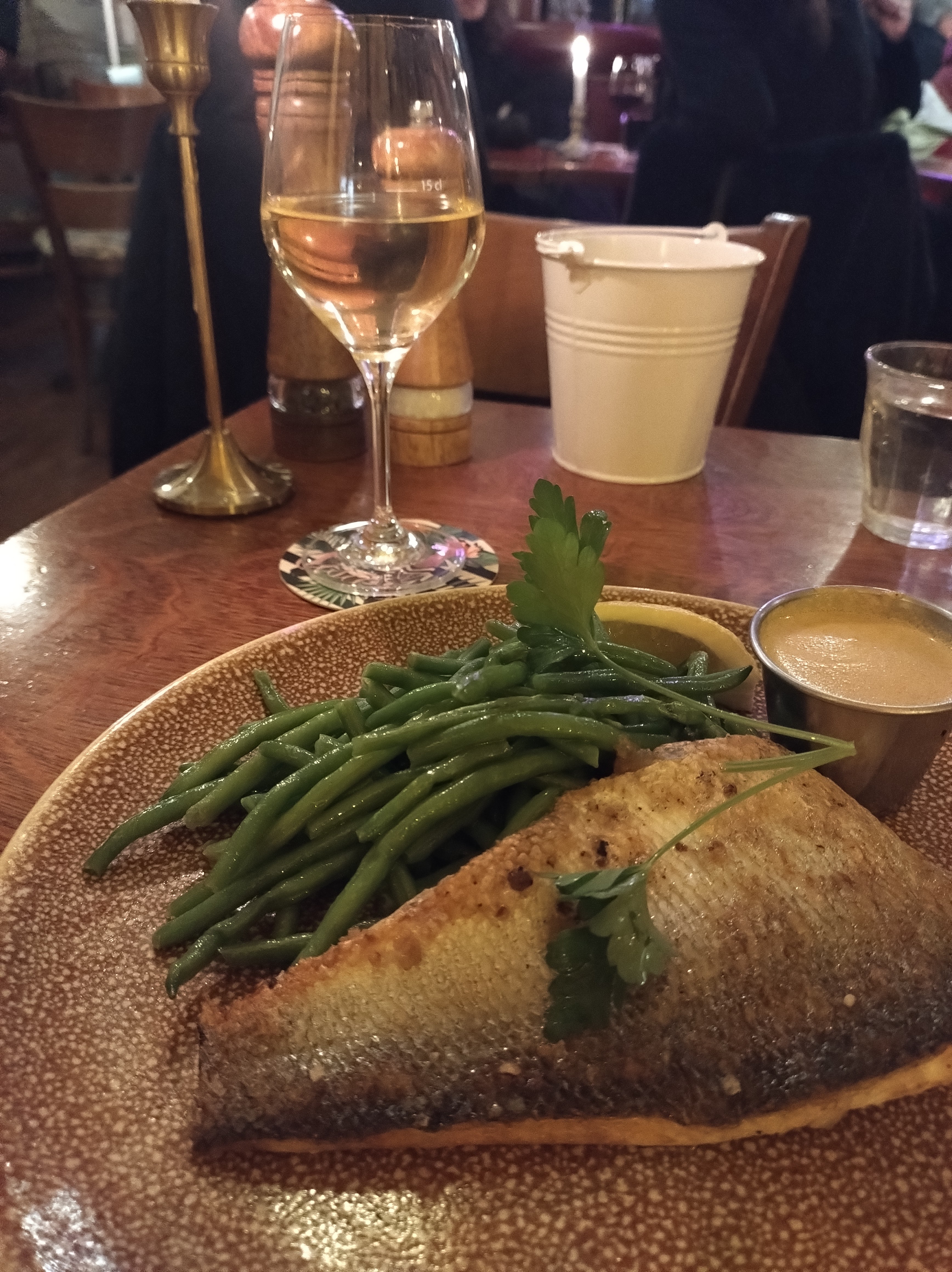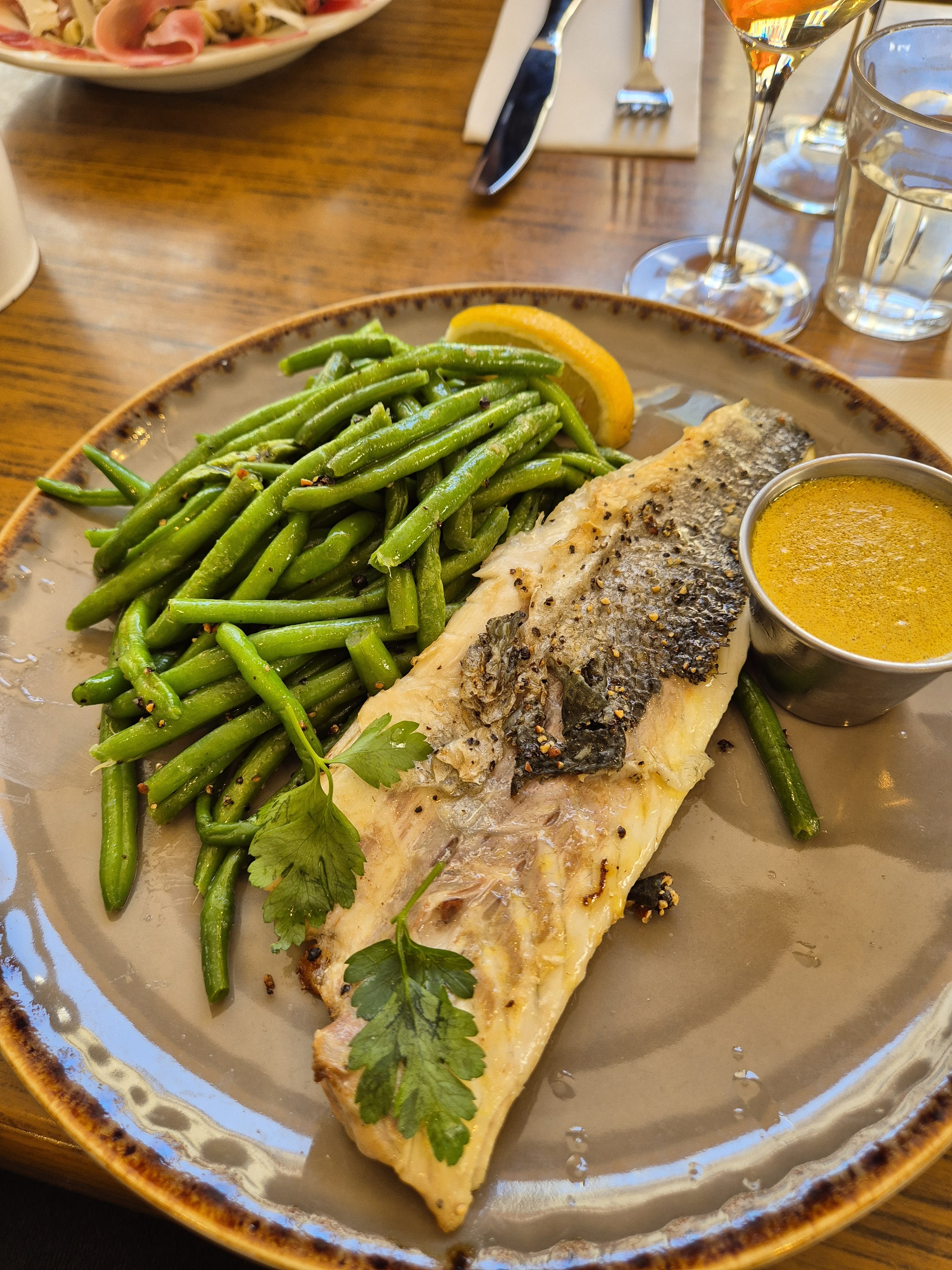 Une très belle cuisson du filet de bar, et sauce safran, le tout dans un canapé moelleux et ambiance Cosi, que du bonheur !