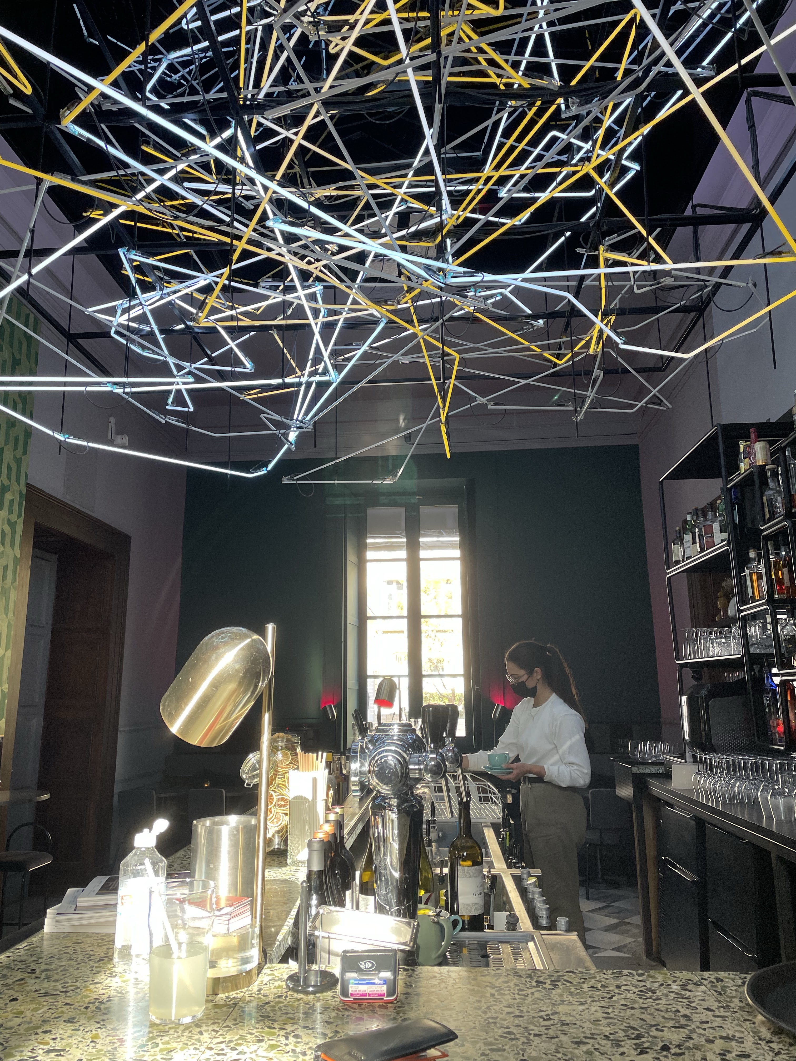 Allez-y les yeux fermés vous ne serez pas déçus. Je m’y suis rendue avec mes amis pour fêter mon anniversaire et nous avons passé un très agréable moment. Le cadre est exceptionnel, très chic. Avec un contraste très intelligent entre l’art modern et la renaissance. Concernant la cuisine, elle est superbe, très bien réalisée avec beaucoup de choix. Trop même, c’est dur de choisir ! On peut opter pour la carte ou les plats à partager avec des prix tous budgets, mais aussi pour le menu à 25€ entrée plat dessert disponible midi/soir, et ça c’est top. Mention spéciale pour les noix de saint Jacques avec le lard et l’œuf parfait, wow!! De ce que j’ai compris, des soirées electro ont lieu de temps à autre. Hâte de m’y rendre ! Merci beaucoup, à bientôt.