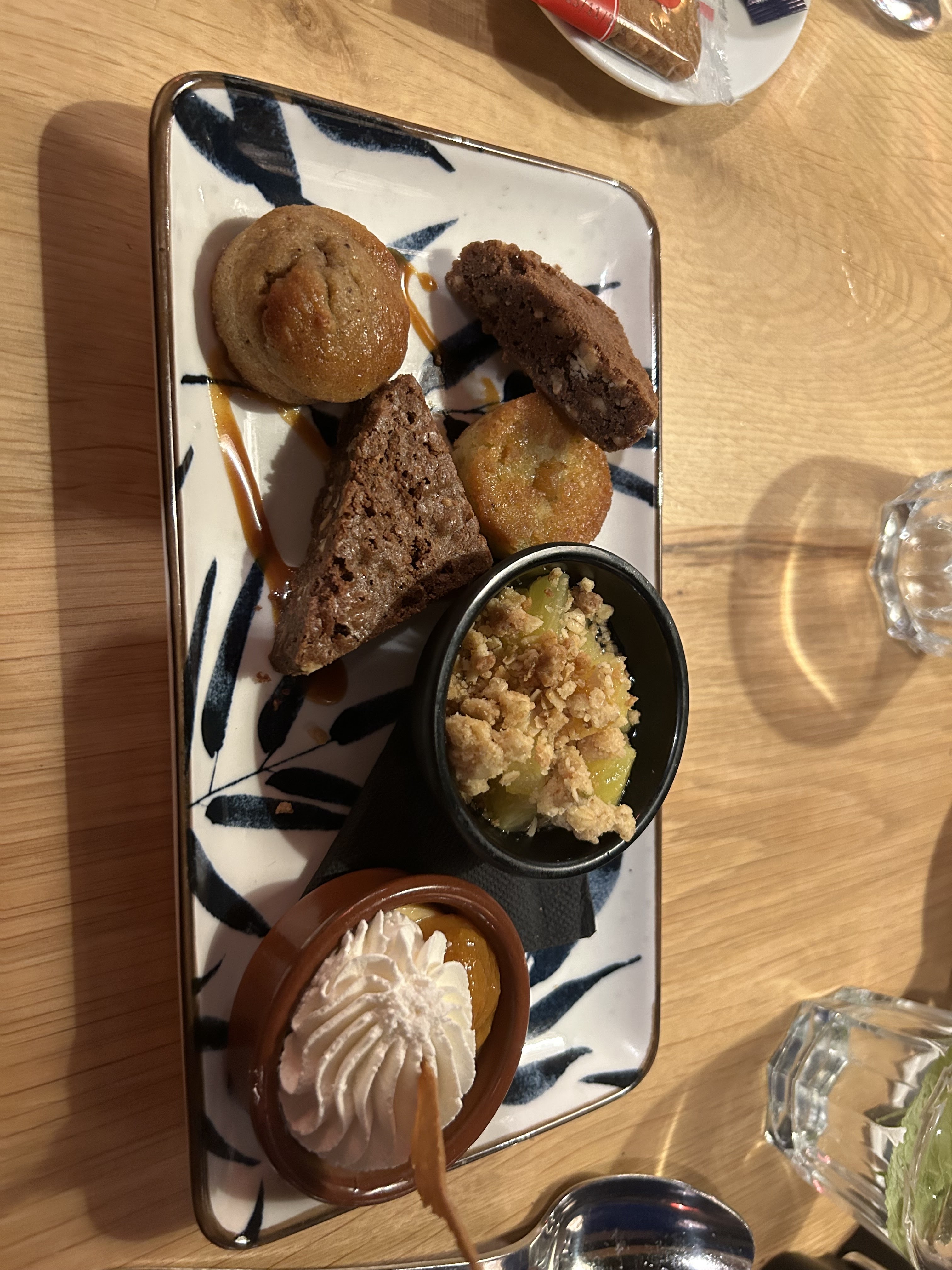 Déçue par le dessert. Le café gourmand était un peu cher par rapport aux mignardises proposées qui restaient simples dans l ensemble. Sinon la brochette de boeuf marinée et l accompagnement étaient excellents. Et le service était top. Je reviendrais !