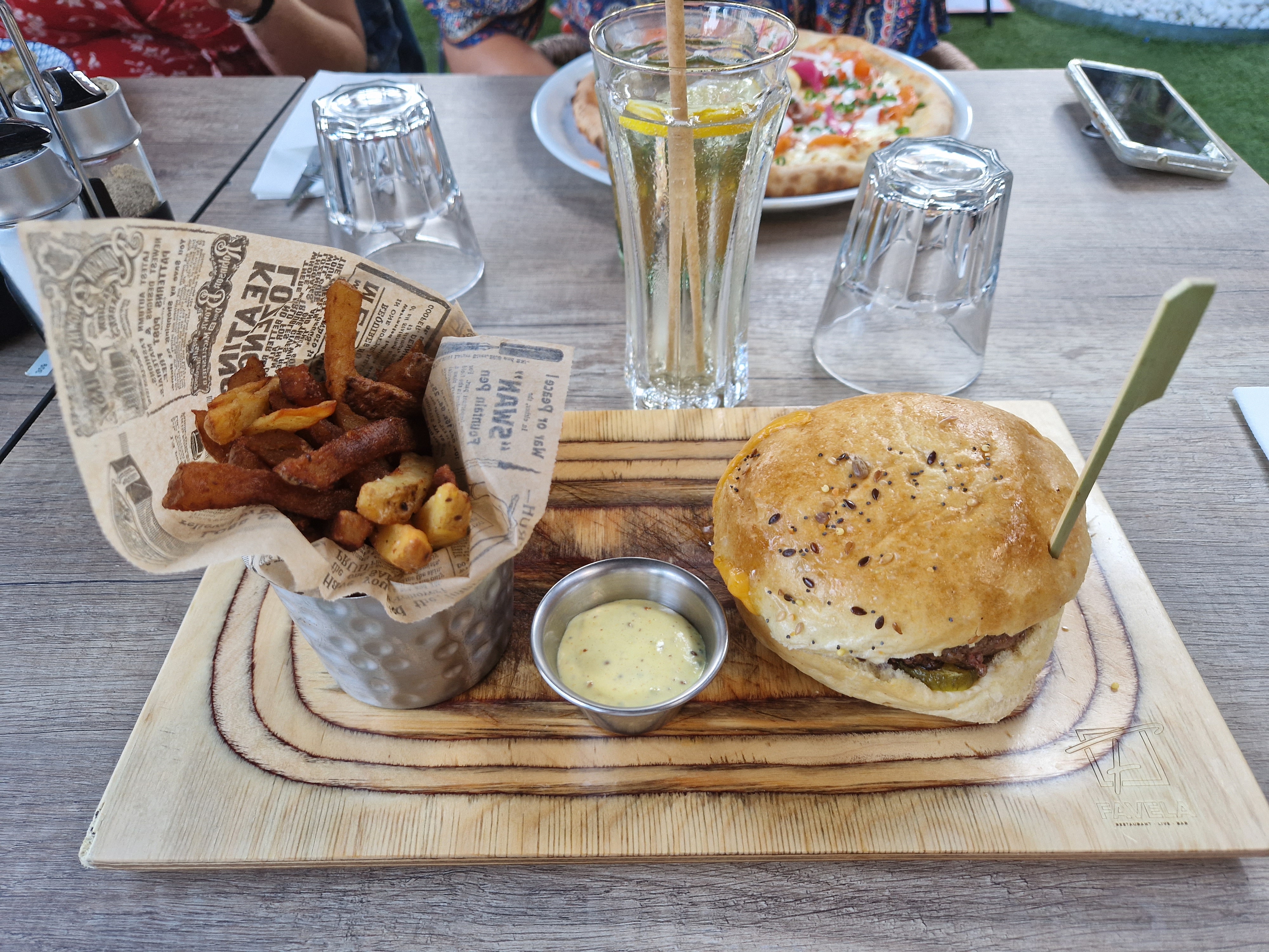 Restaurant très bien situé, personnel accueillant et décoration au top. Le menu est varié et les plats sont très bons, peut-être un peu chers ? Partie Bar bien agencée idéale pour les After work , les animations variées sont très appréciées. Très bon concept aux portes de la ville. Allez y vous passerez un bon moment a coup sûr !