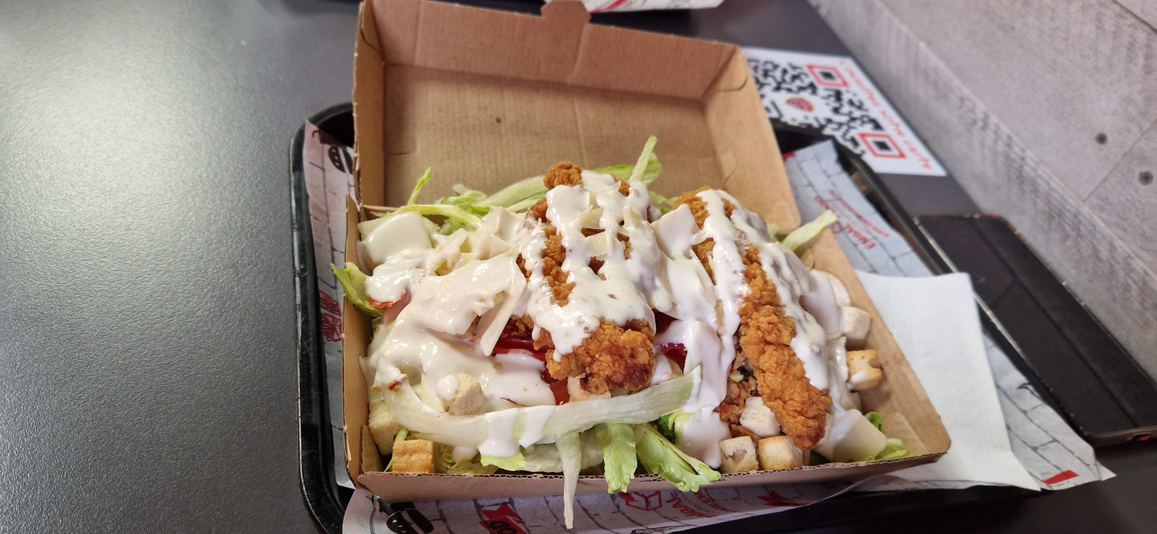 Alors la c'est vraiment un échec total pour nous ... Sauce fromagere c'est que de la crème et fade Le taccos demander sans frite pour les deux mais il y avait des frite dedans Le wrap galette 🐔 et basta Et les frites fromagère payer 5€ est quelque heuuuu elle est où la sauce fromagere ? Que de la crème et très fade Vraiment dessus et tout ça pour 70 euro a 3 .... je ne recommanderais plus jamaisla bas .