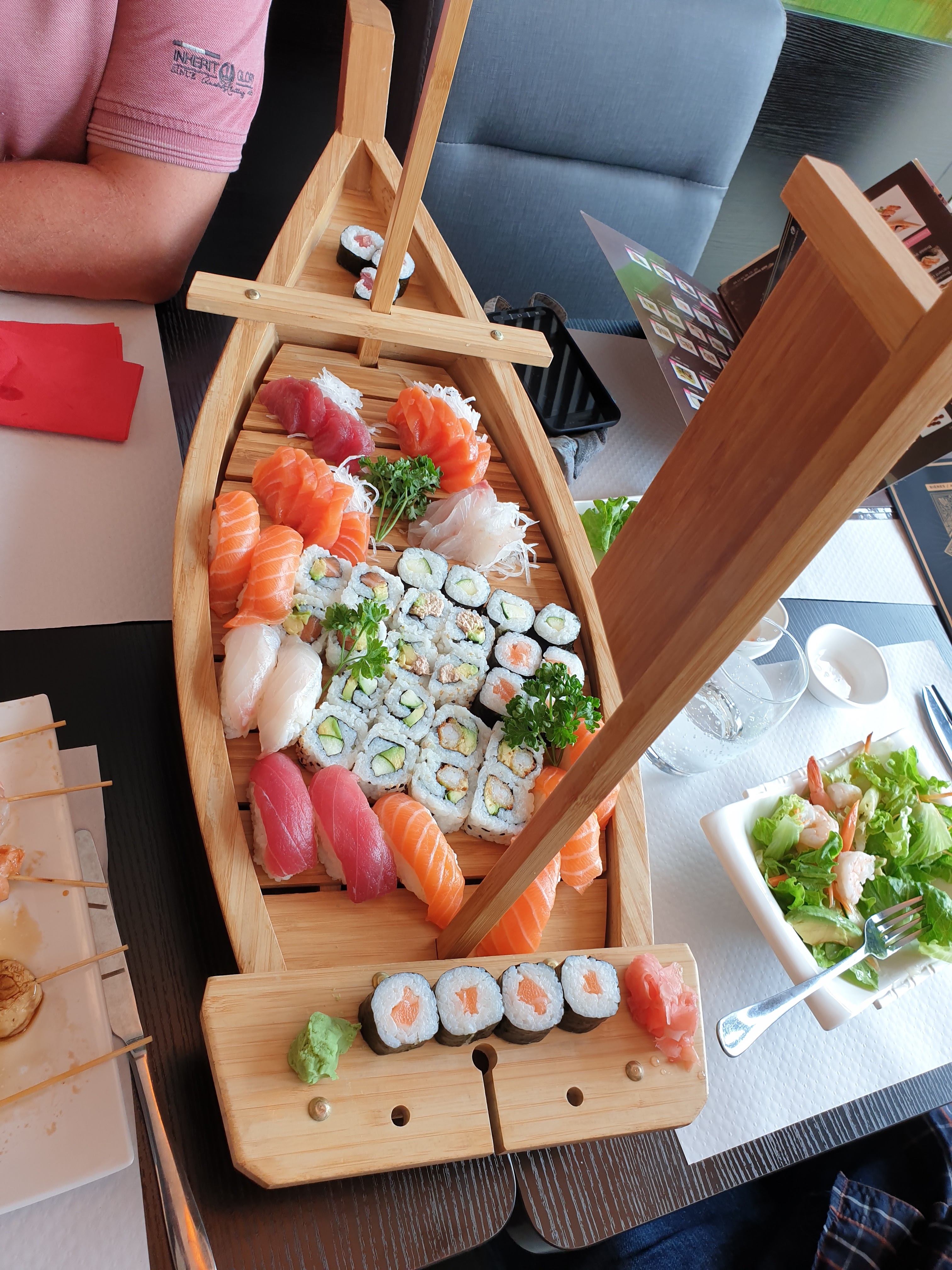 Belle découverte, service à table agréable on mange au fur et à mesure le poisson est très frais saumon et thon super fin et tendre. Du choix en chaud et froid. J'y retournais pour le soir voir ce qu'il y a de plus