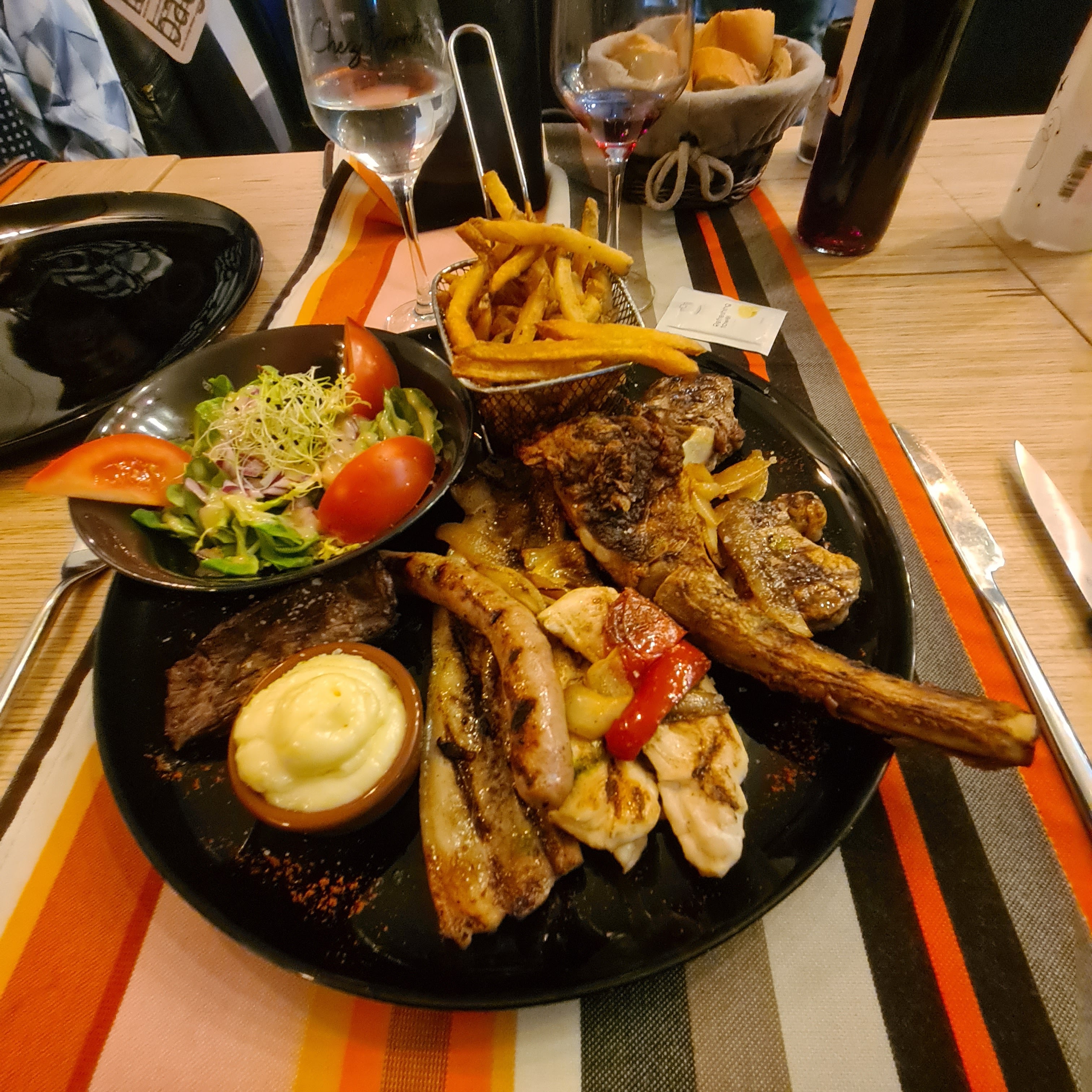 Parrillade de poissons et Parrillade de viandes excellentes, un café gourmand copieux, accueil chaleureux, serveuse agréable. Nous reviendrons les chauriens (vive le cassoulet)