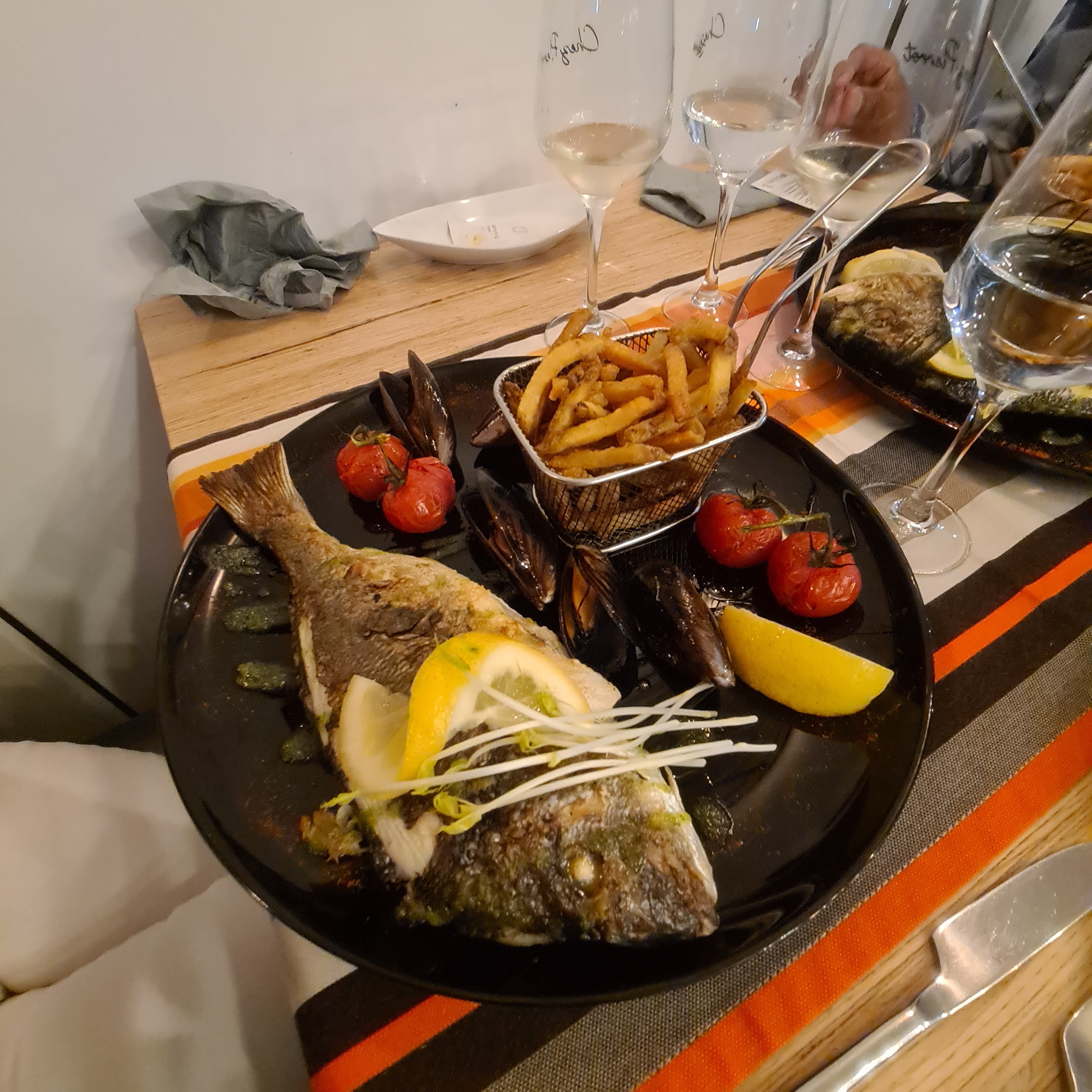 Bon poisson , service chaleureux, très bon vin locale !