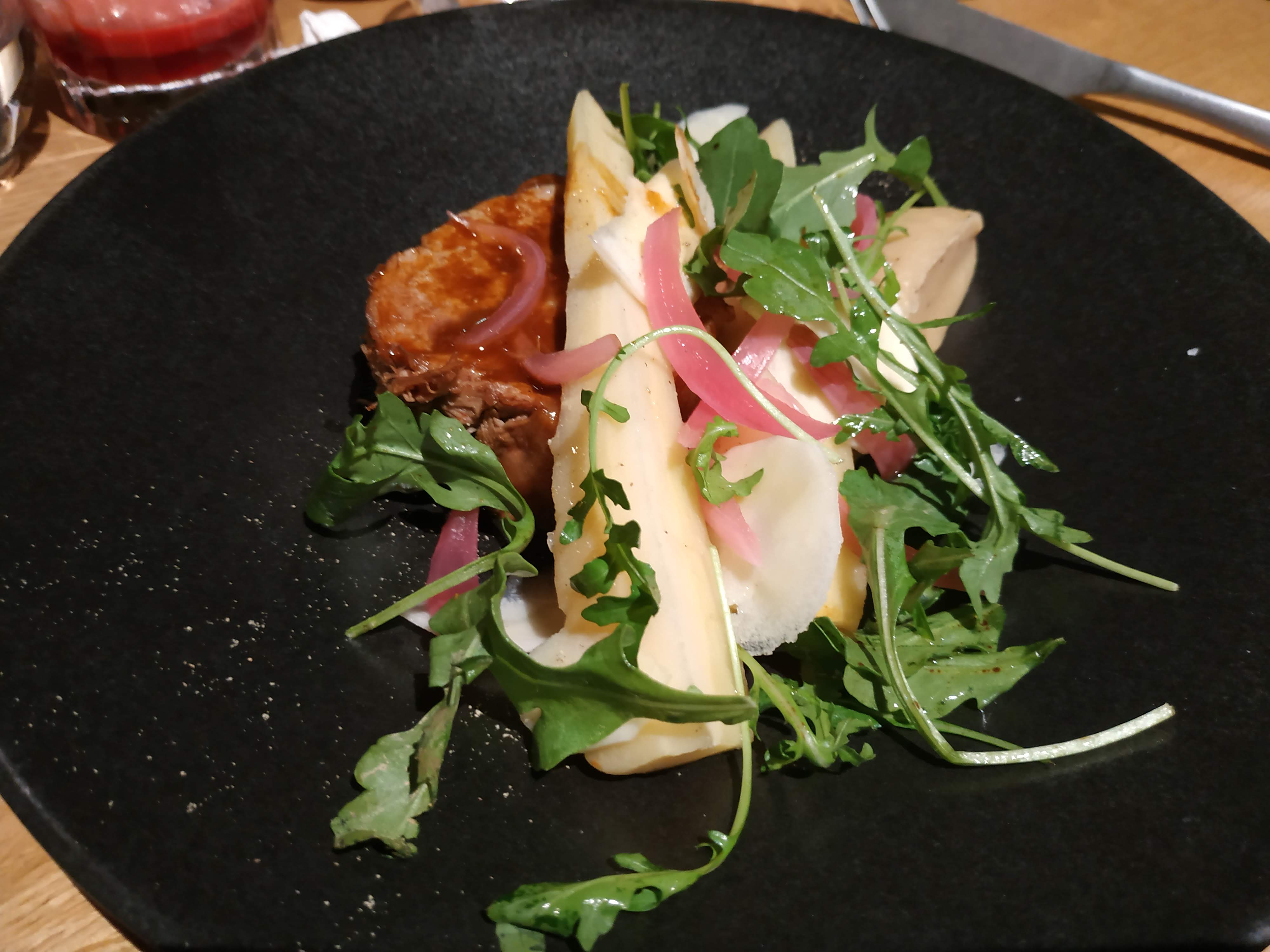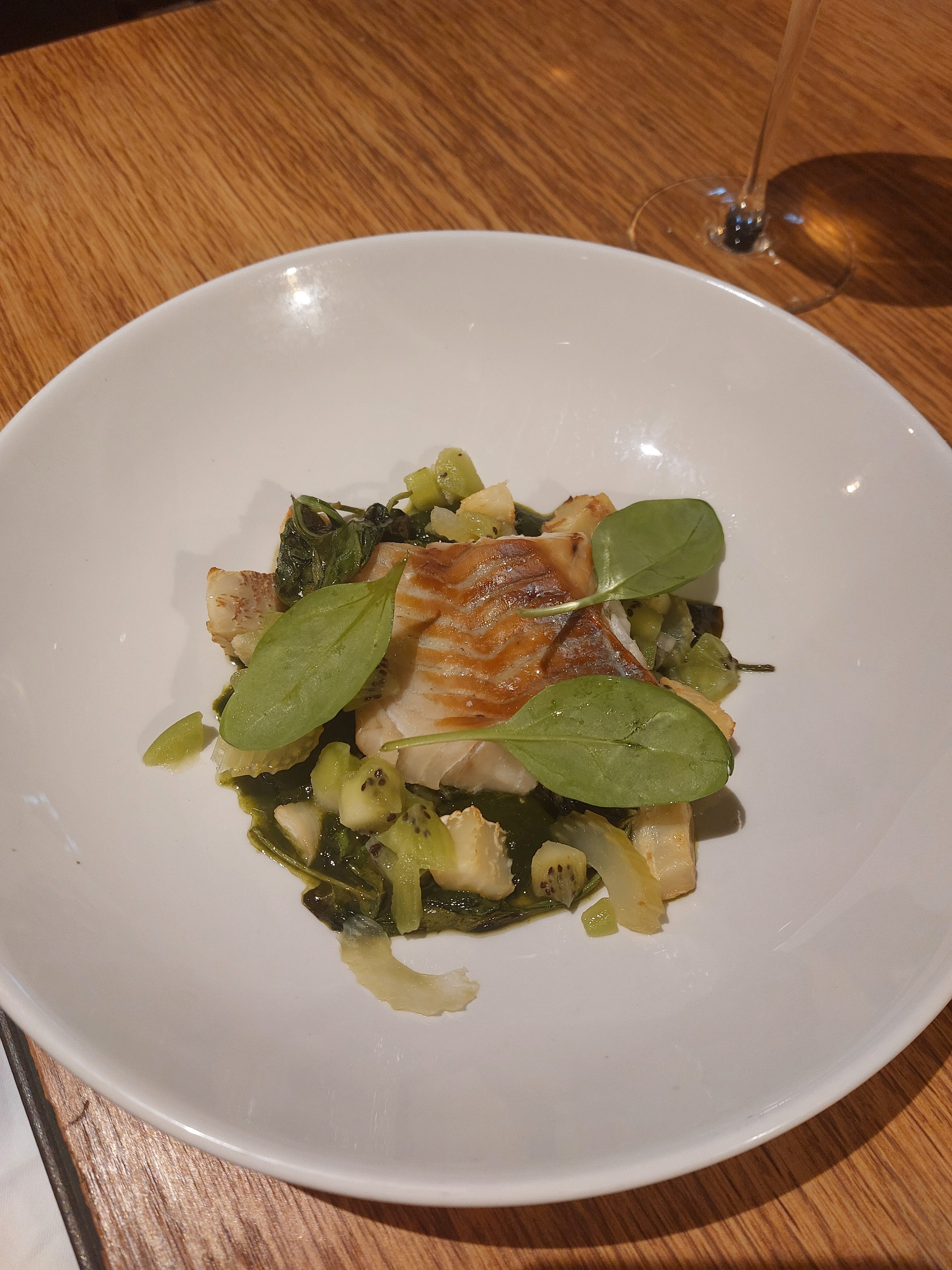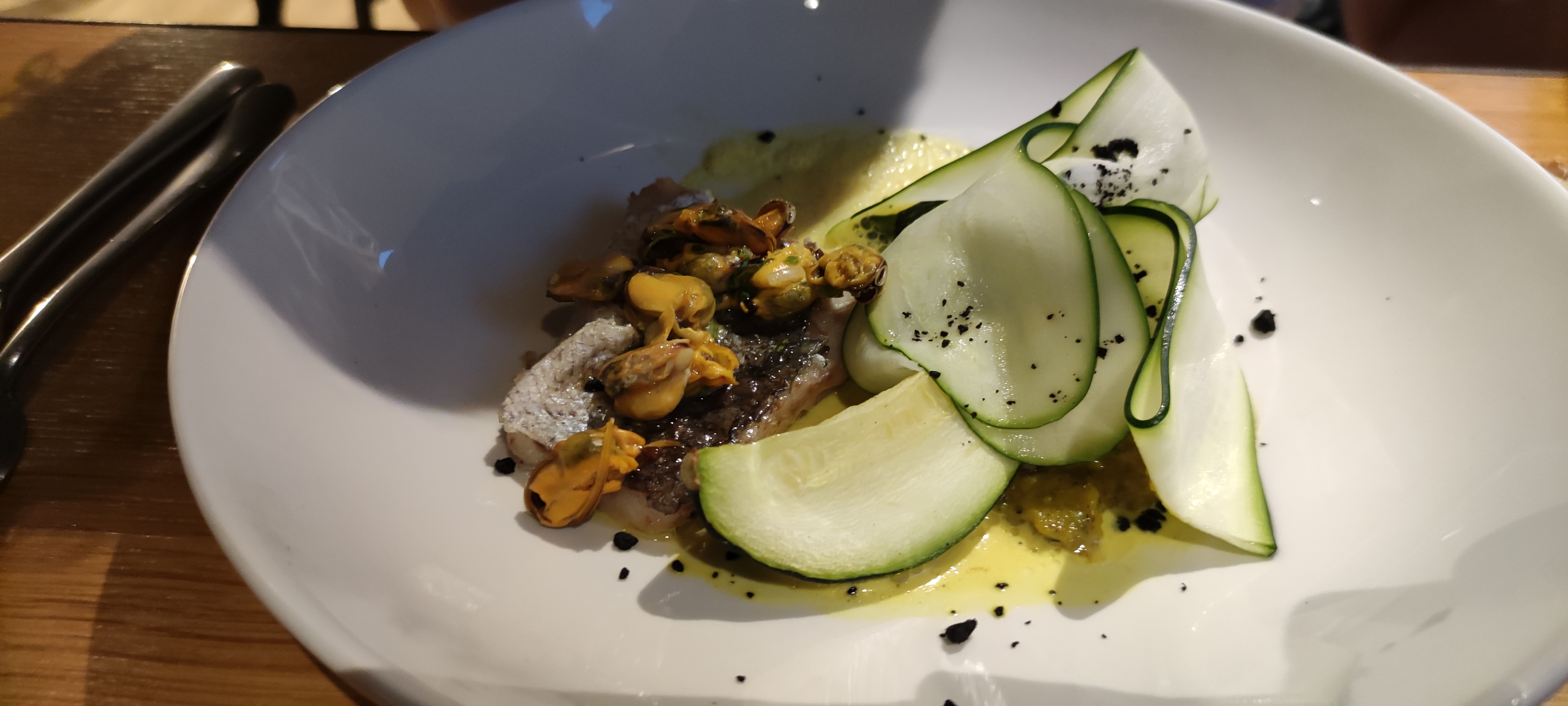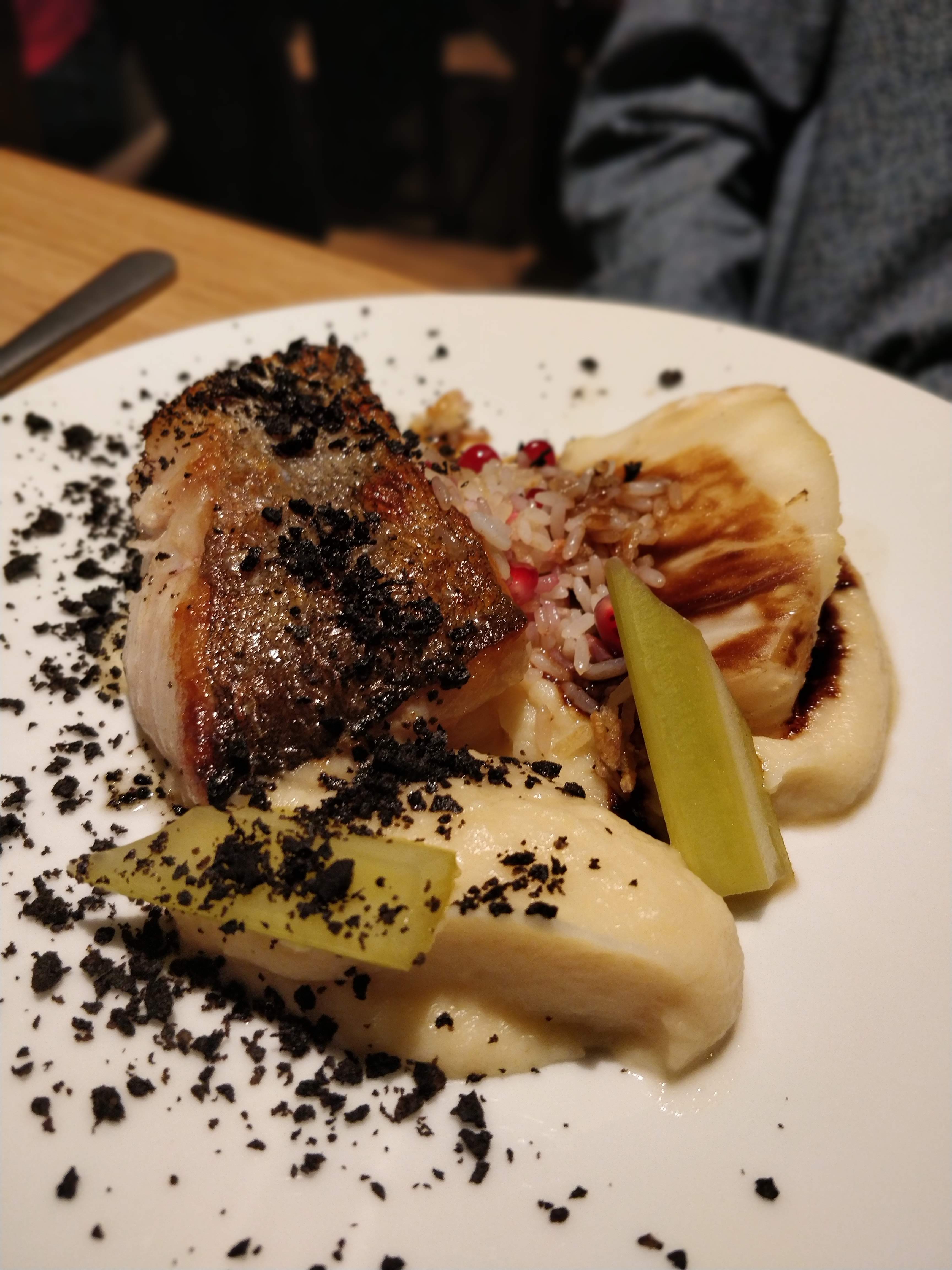 Restaurant très agréable, atmosphère chaleureuse et service parfait. Mention spéciale au barman qui nous a délivré un Espresso Martini succulent et extrêmement bien dosé. La cuisine est assez bonne, extrêmement bien présentée, et avec certaines saveurs/ingrédients qui changent des restaurants habituels. Néanmoins, même si cela est bon, j’ai trouvé que ça manquait d’un poil plus de saveurs, de goûts un peu plus prononcés. Mais cela reste un avis personnel, et comme on le sait : les goûts et les couleurs ça ne se discute pas. Je vous conseille cependant d’y aller vous faire votre propre avis, car c’est une bonne adresse !