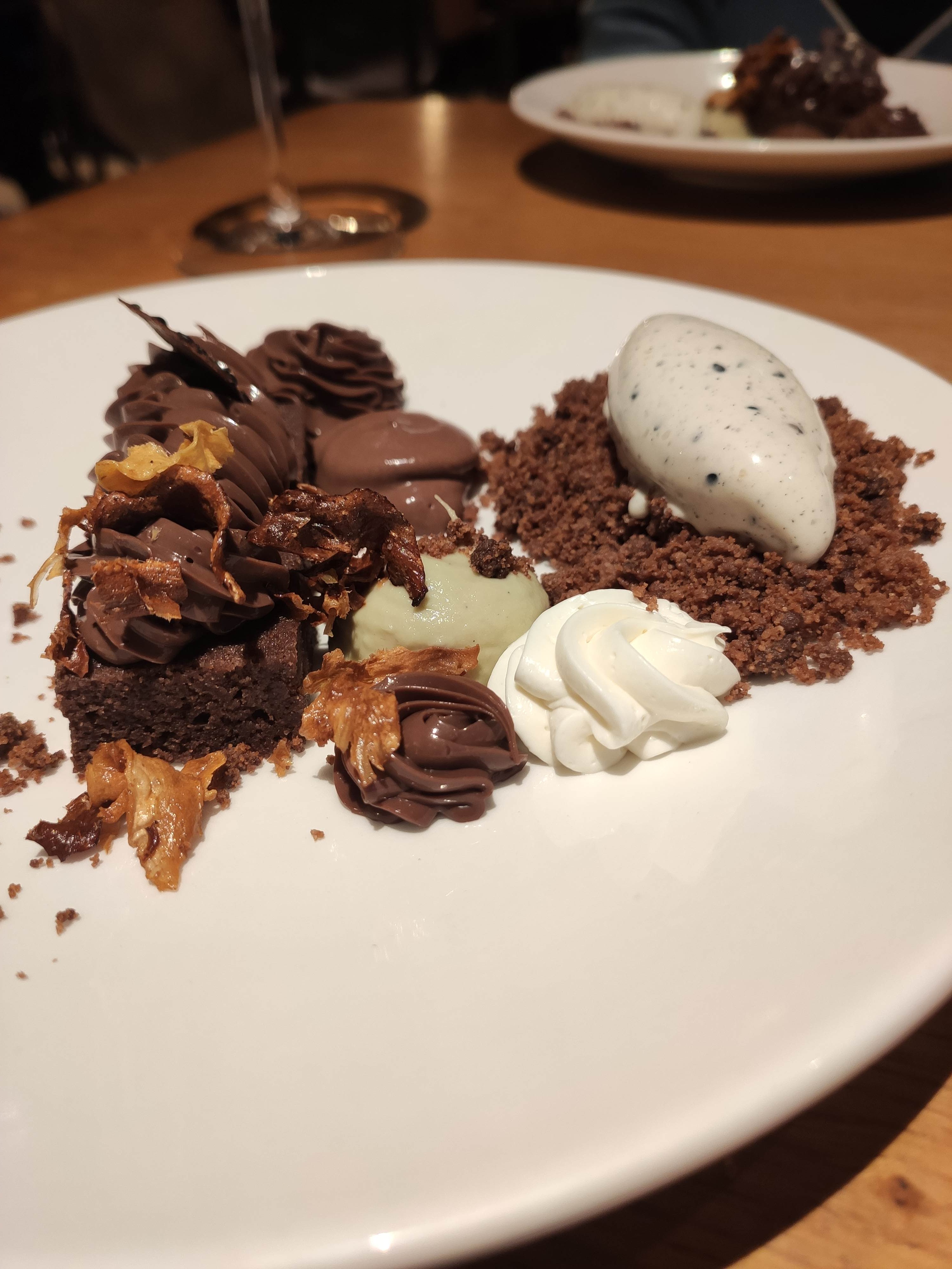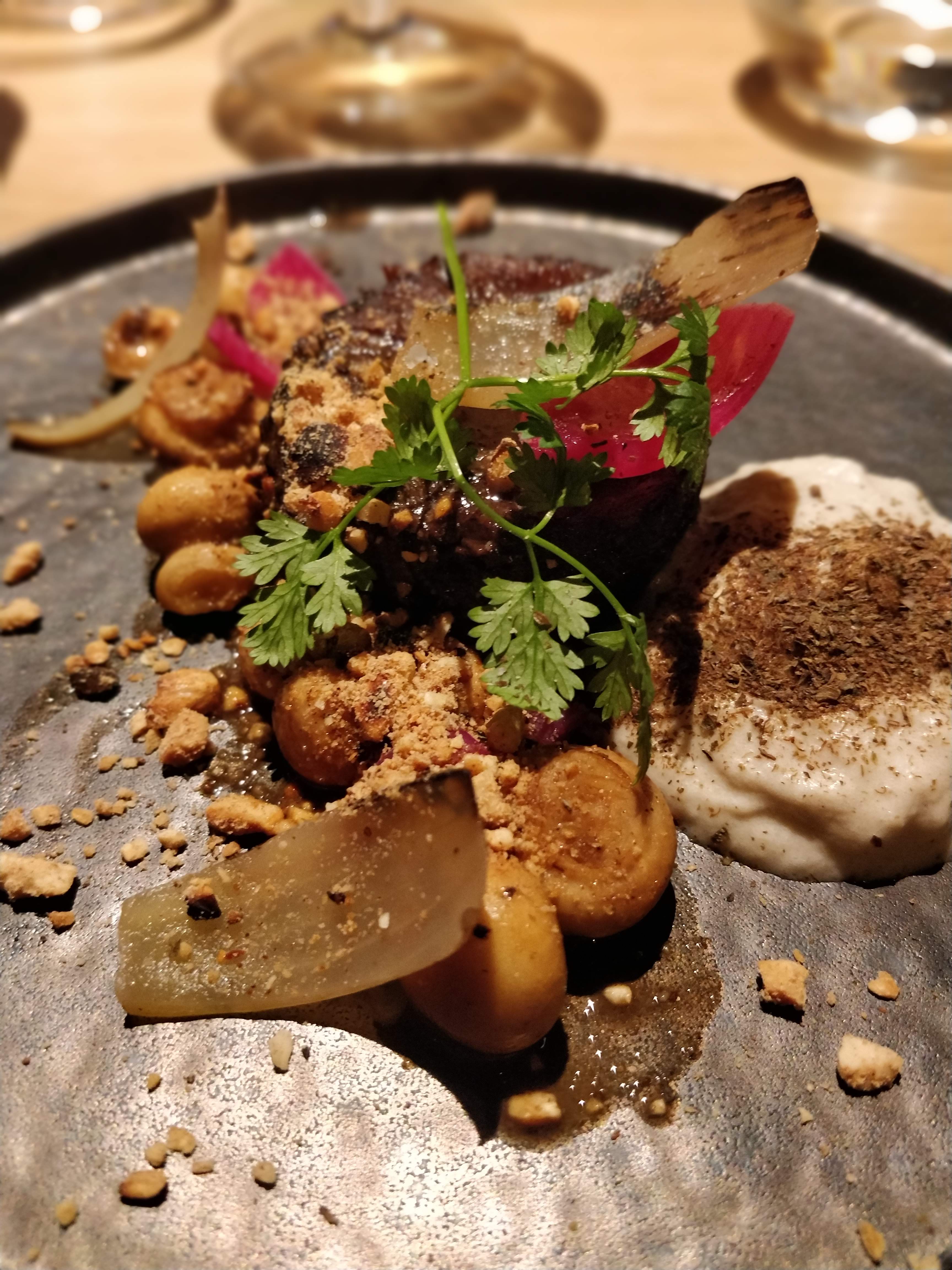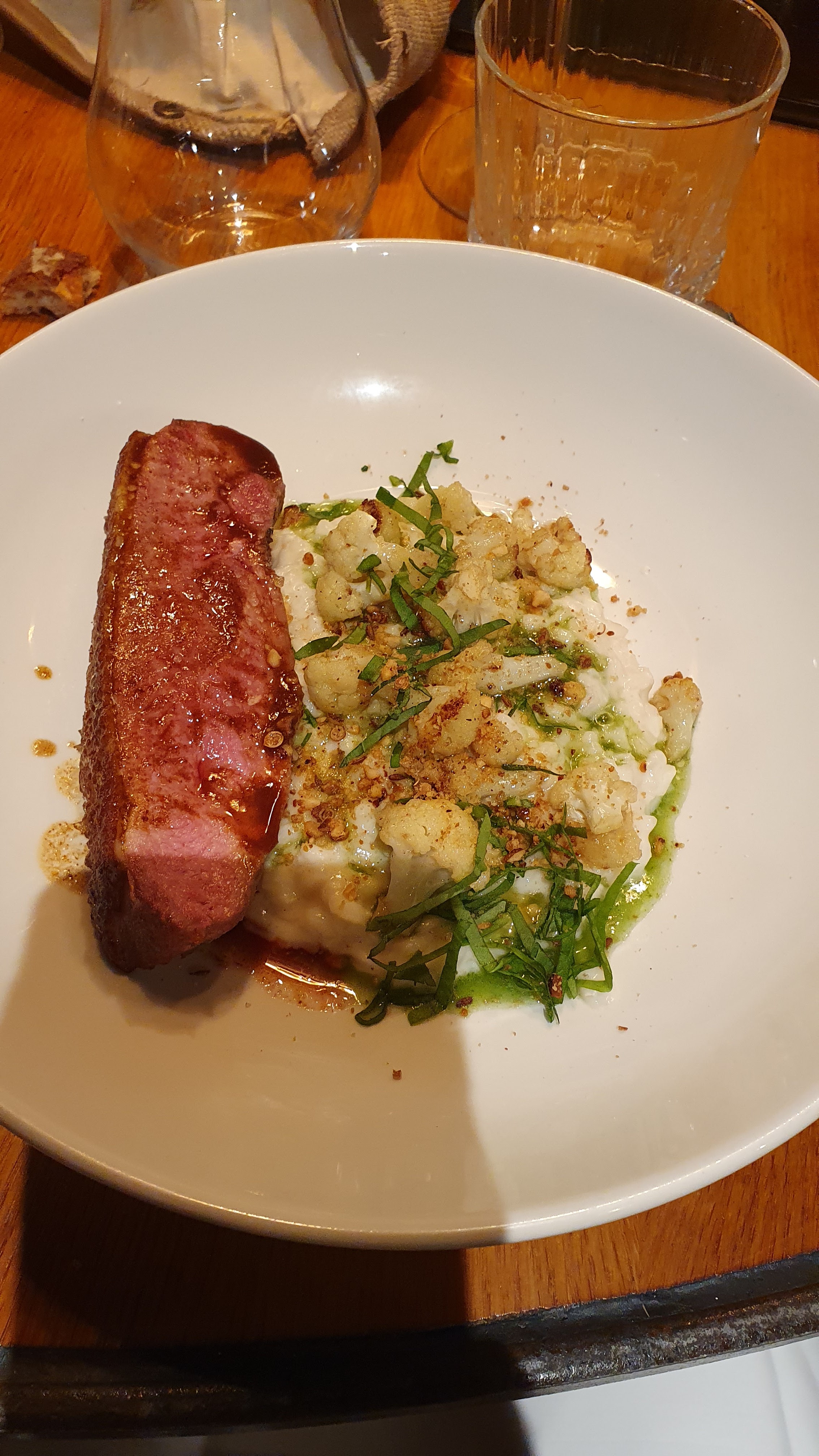 Restaurant très agréable, atmosphère chaleureuse et service parfait. Mention spéciale au barman qui nous a délivré un Espresso Martini succulent et extrêmement bien dosé. La cuisine est assez bonne, extrêmement bien présentée, et avec certaines saveurs/ingrédients qui changent des restaurants habituels. Néanmoins, même si cela est bon, j’ai trouvé que ça manquait d’un poil plus de saveurs, de goûts un peu plus prononcés. Mais cela reste un avis personnel, et comme on le sait : les goûts et les couleurs ça ne se discute pas. Je vous conseille cependant d’y aller vous faire votre propre avis, car c’est une bonne adresse !