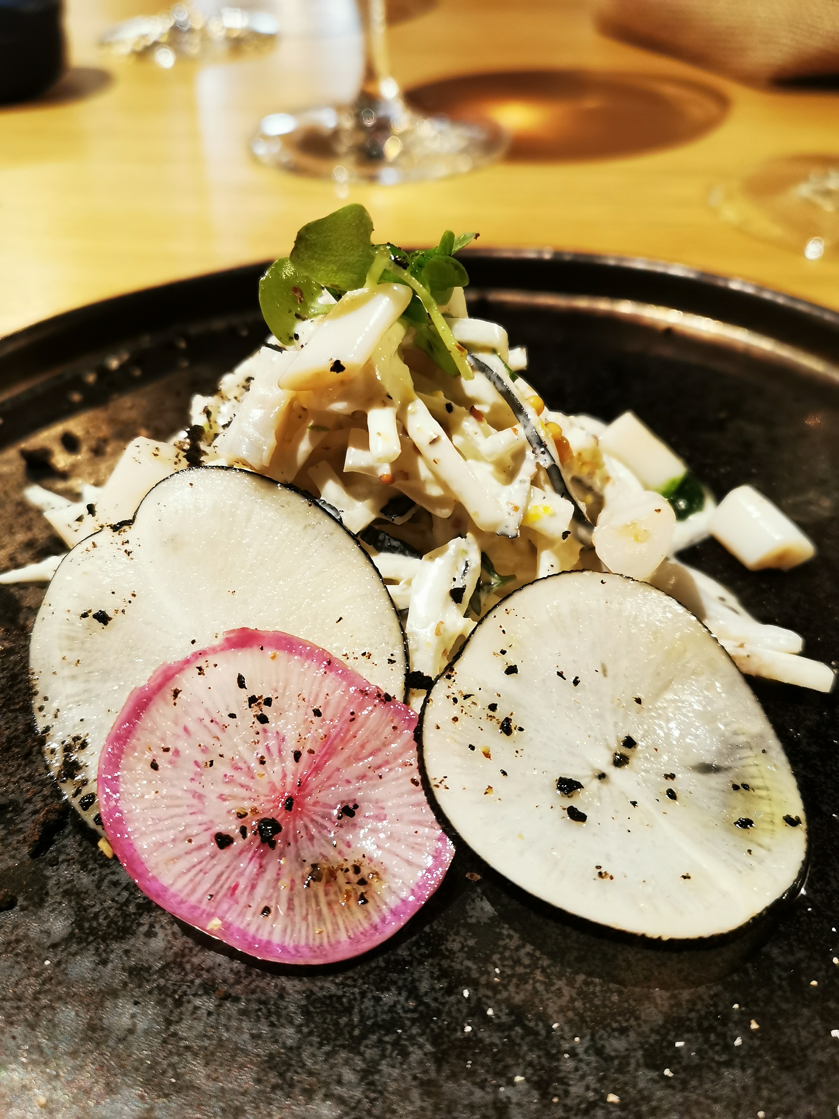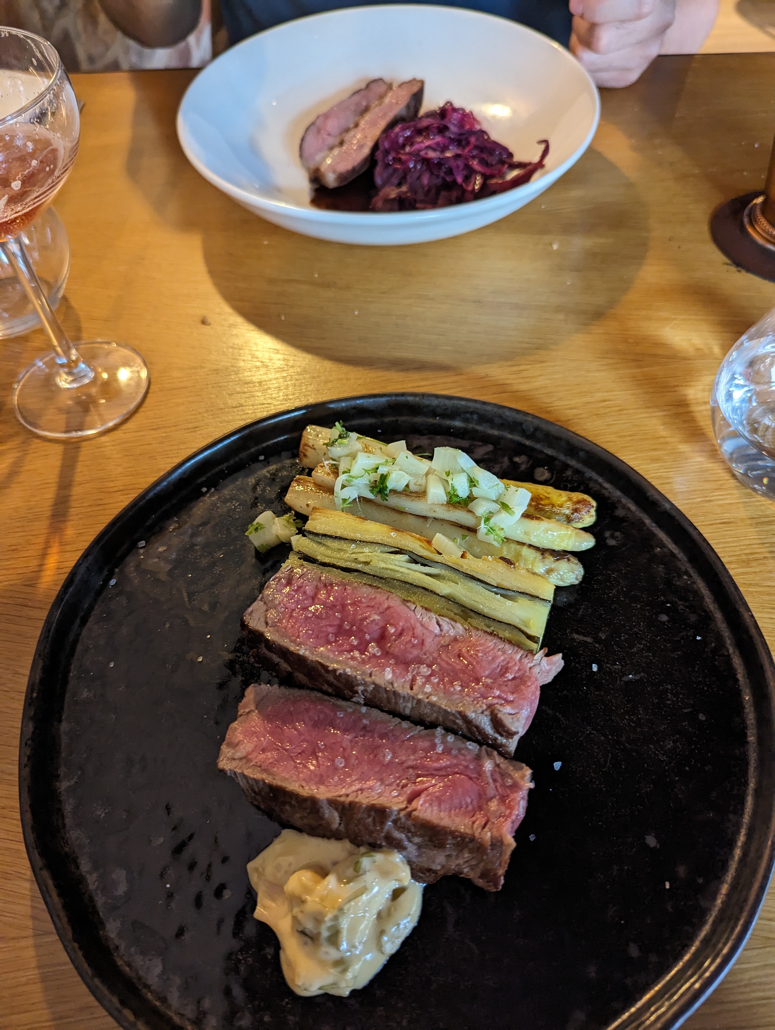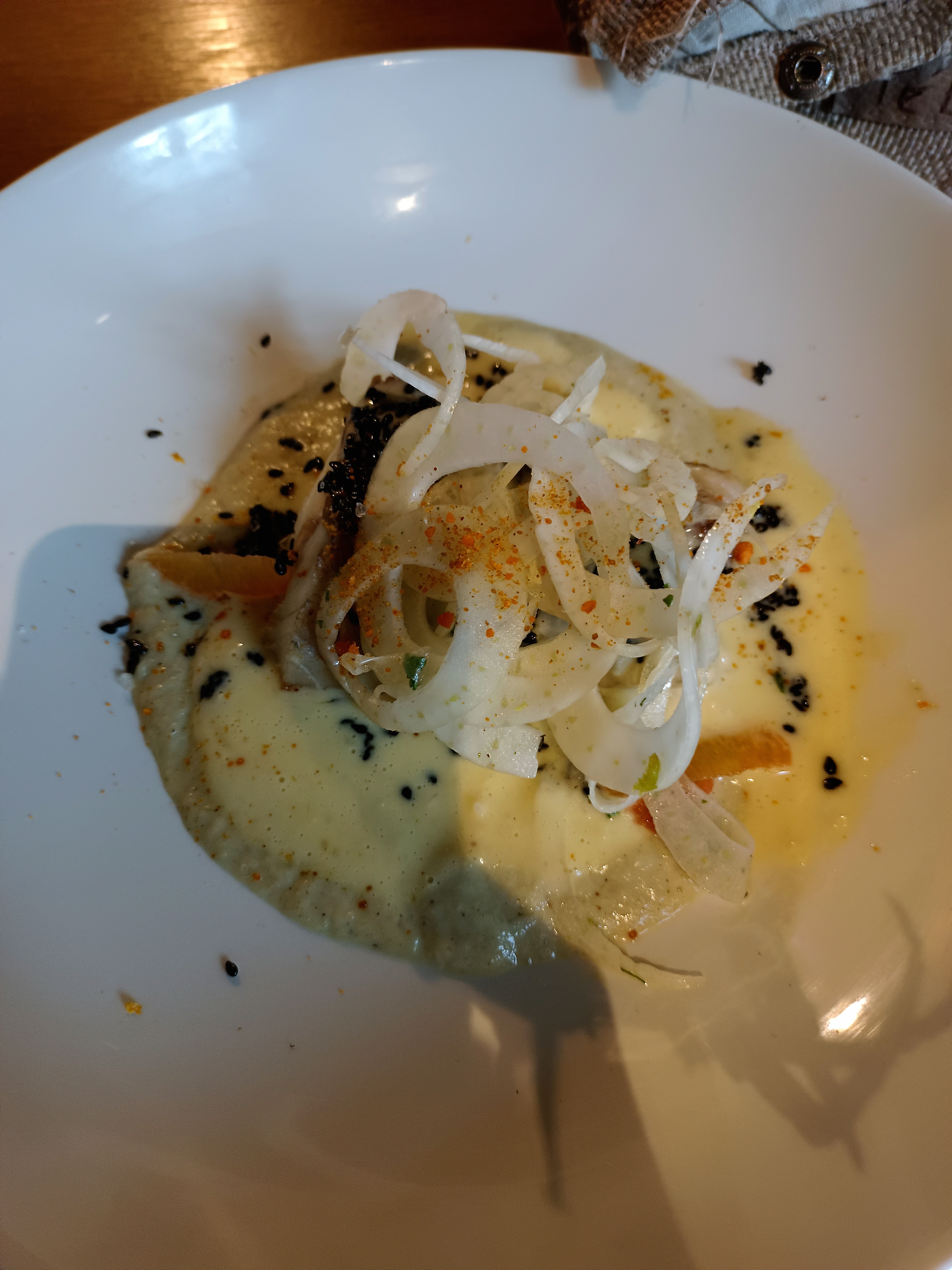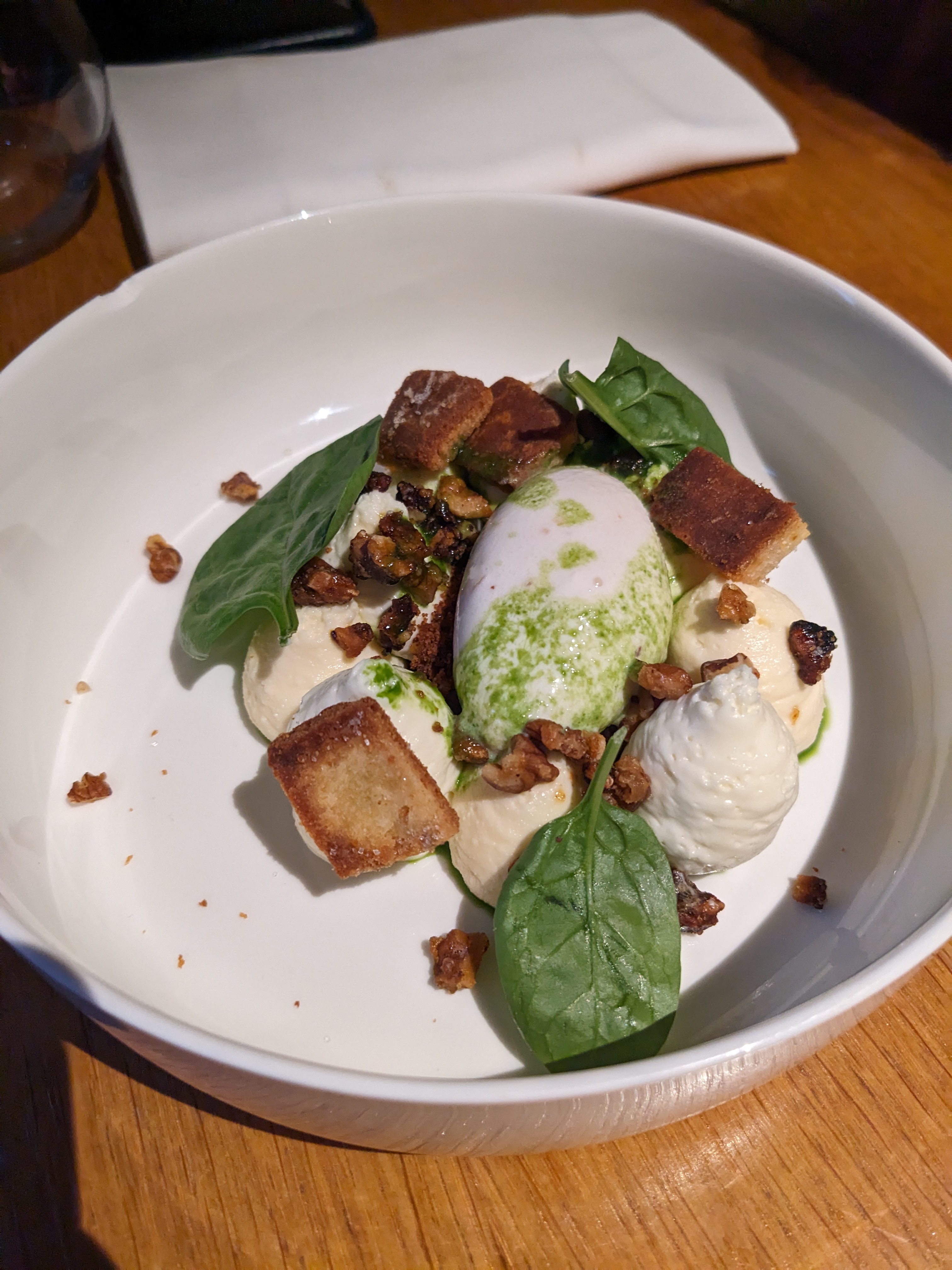 Restaurant très agréable, atmosphère chaleureuse et service parfait. Mention spéciale au barman qui nous a délivré un Espresso Martini succulent et extrêmement bien dosé. La cuisine est assez bonne, extrêmement bien présentée, et avec certaines saveurs/ingrédients qui changent des restaurants habituels. Néanmoins, même si cela est bon, j’ai trouvé que ça manquait d’un poil plus de saveurs, de goûts un peu plus prononcés. Mais cela reste un avis personnel, et comme on le sait : les goûts et les couleurs ça ne se discute pas. Je vous conseille cependant d’y aller vous faire votre propre avis, car c’est une bonne adresse !