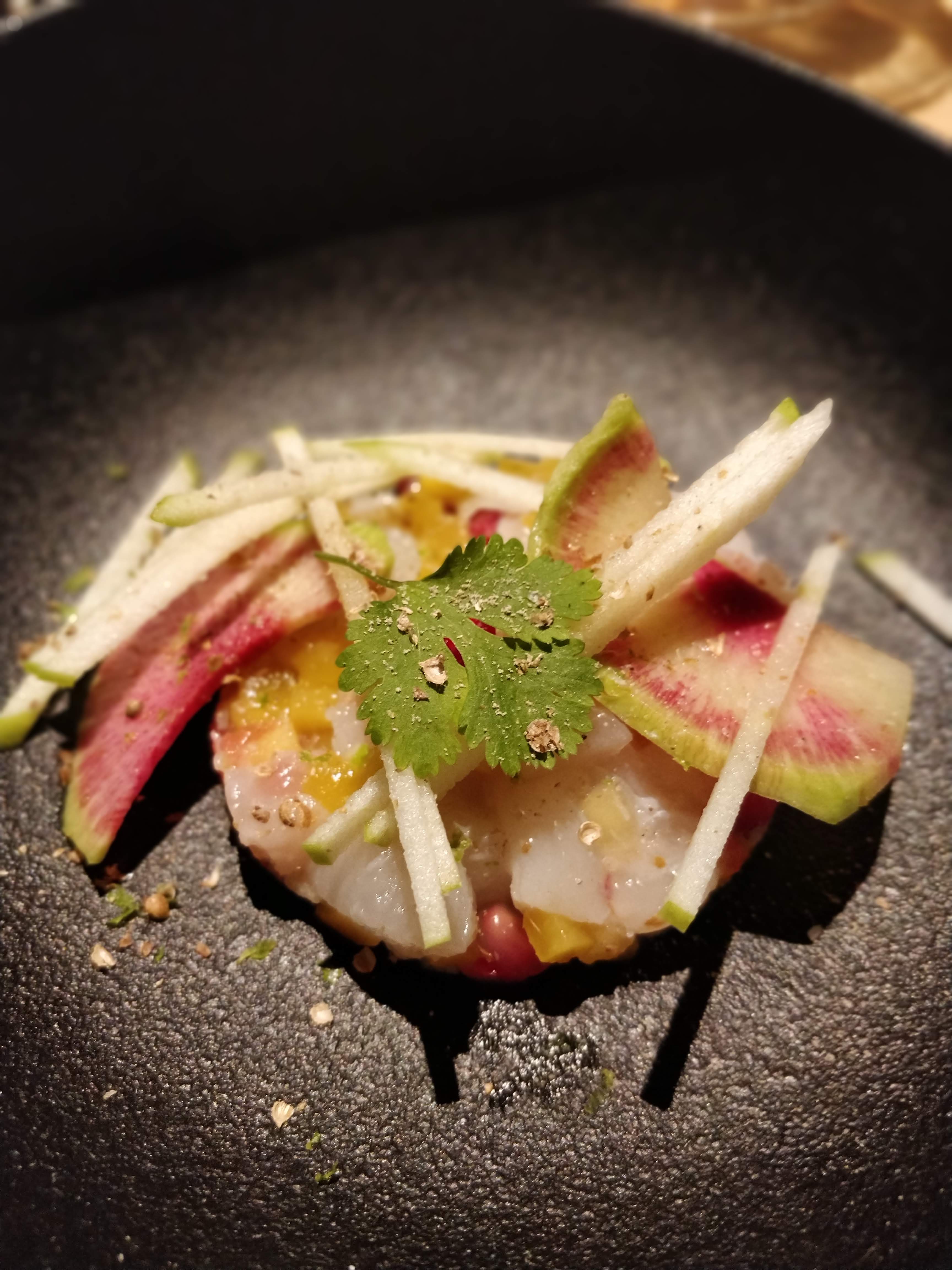 Alors l’ambiance est vraiment superbe, pareil pour la nourriture! Les saveurs des plats étaient vraiment incroyables! En plus pour 15 ou 20 euros vous pouvez avoirs des vins (ou cocktail) qui accompagnent les plats! La seule raison pour lequel ils perdent une étoile, c’est que l’attente était malheureusement beaucoup trop longue!