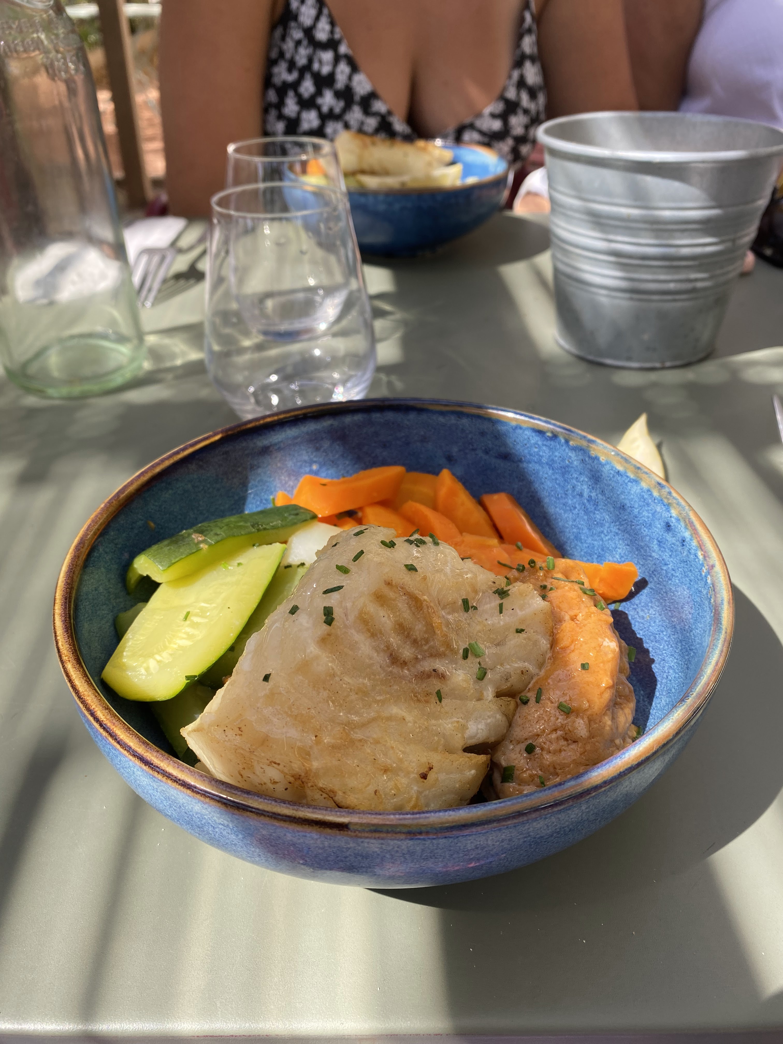 J’ai eu froid Pas de « grignoterie » pour l’apéro (livraison le mercredi nous a t on dit) Le poisson n’était pas cuit à l’intérieur L’accompagnement ?? Peu de choix de vins au verre