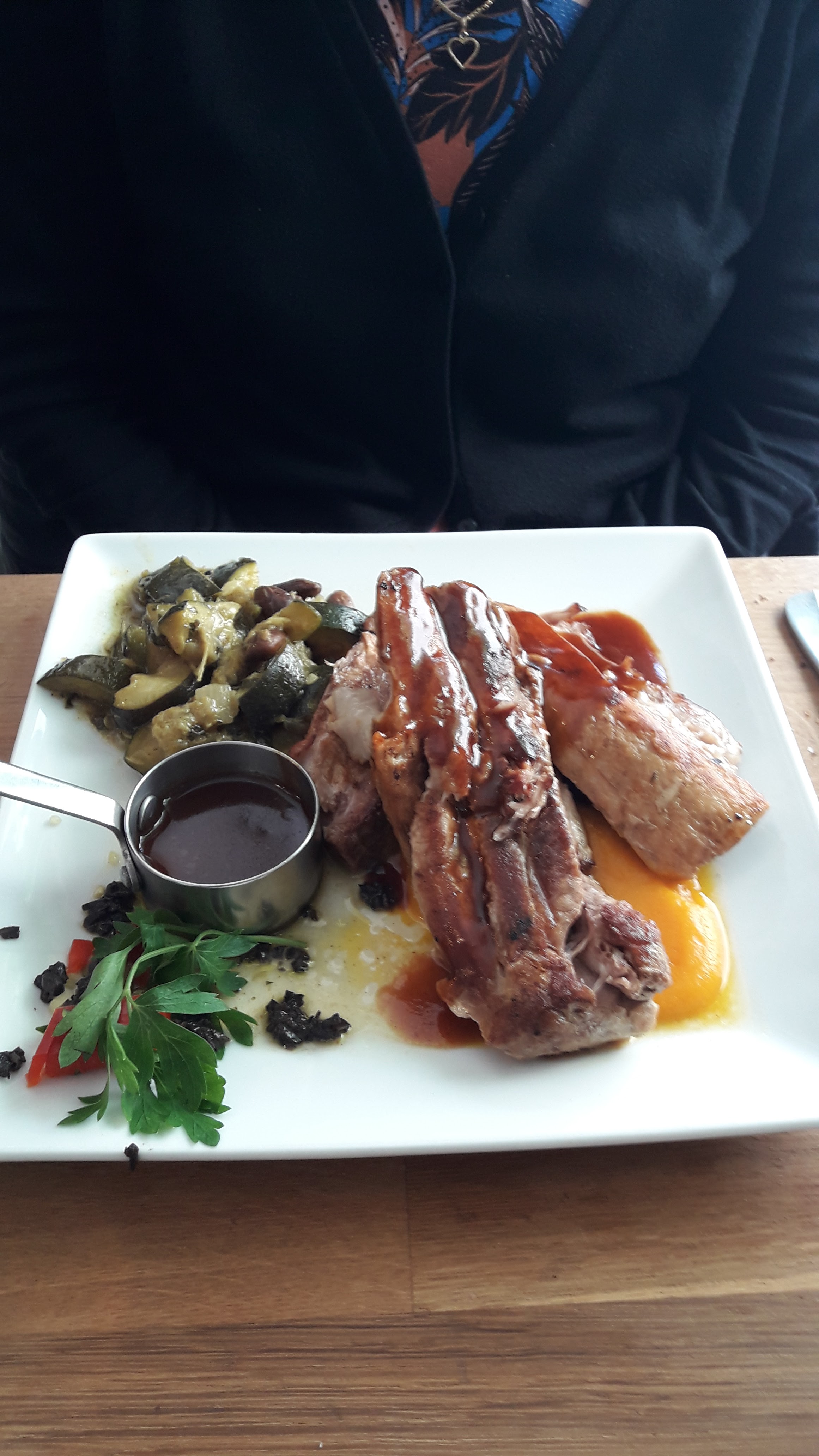 Lieux très agréable. Service très sympathique dans l'esprit Bistrot. Le carré de porc en cuisson lente était très bien cuit mais aurait mérité une petite sauce pour ajouter de la gourmandise.