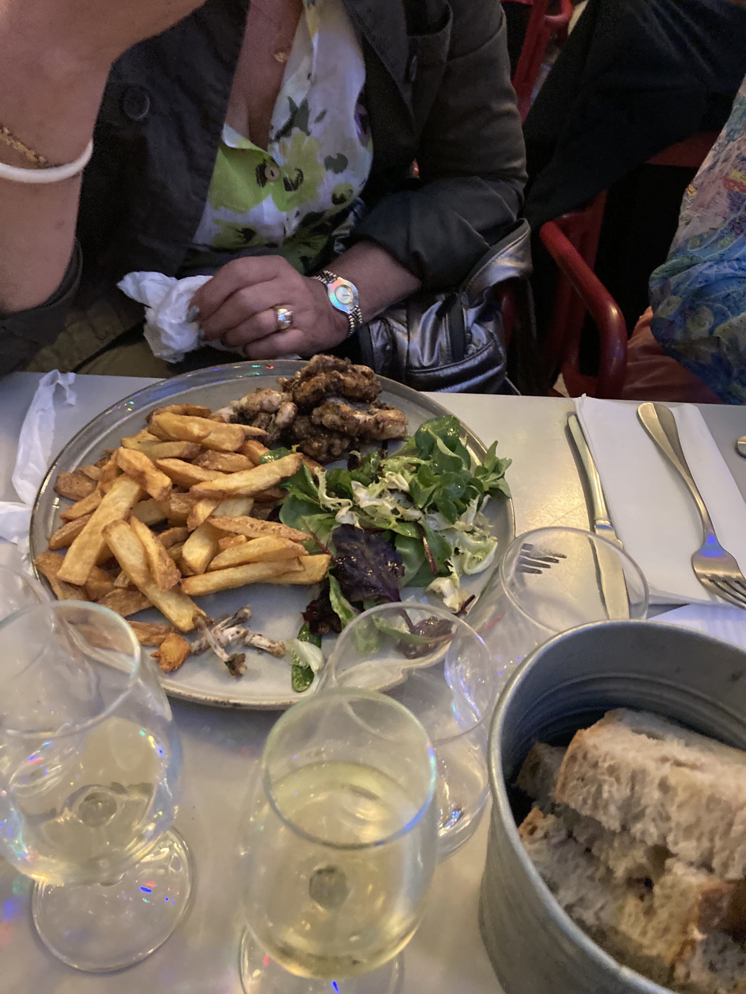 Soirée guinguette ! Certainement victime de son succès, on nous sert 5 cuisses de grenouilles !!! A 25 euros le plat ...ça fait cher et assaisonnement avec très peu de beurre et d'ail, Très décevant. Au contraire des joel's la friture de l'entrèe...très copieuse. Comme nous étions 5, commercialement une assiette de grenouilles nous a été offerte. Pourquoi ne pas avoir lors de la commande dire qu'il n'en restait qu'une ou deux assiettes ? Dommage