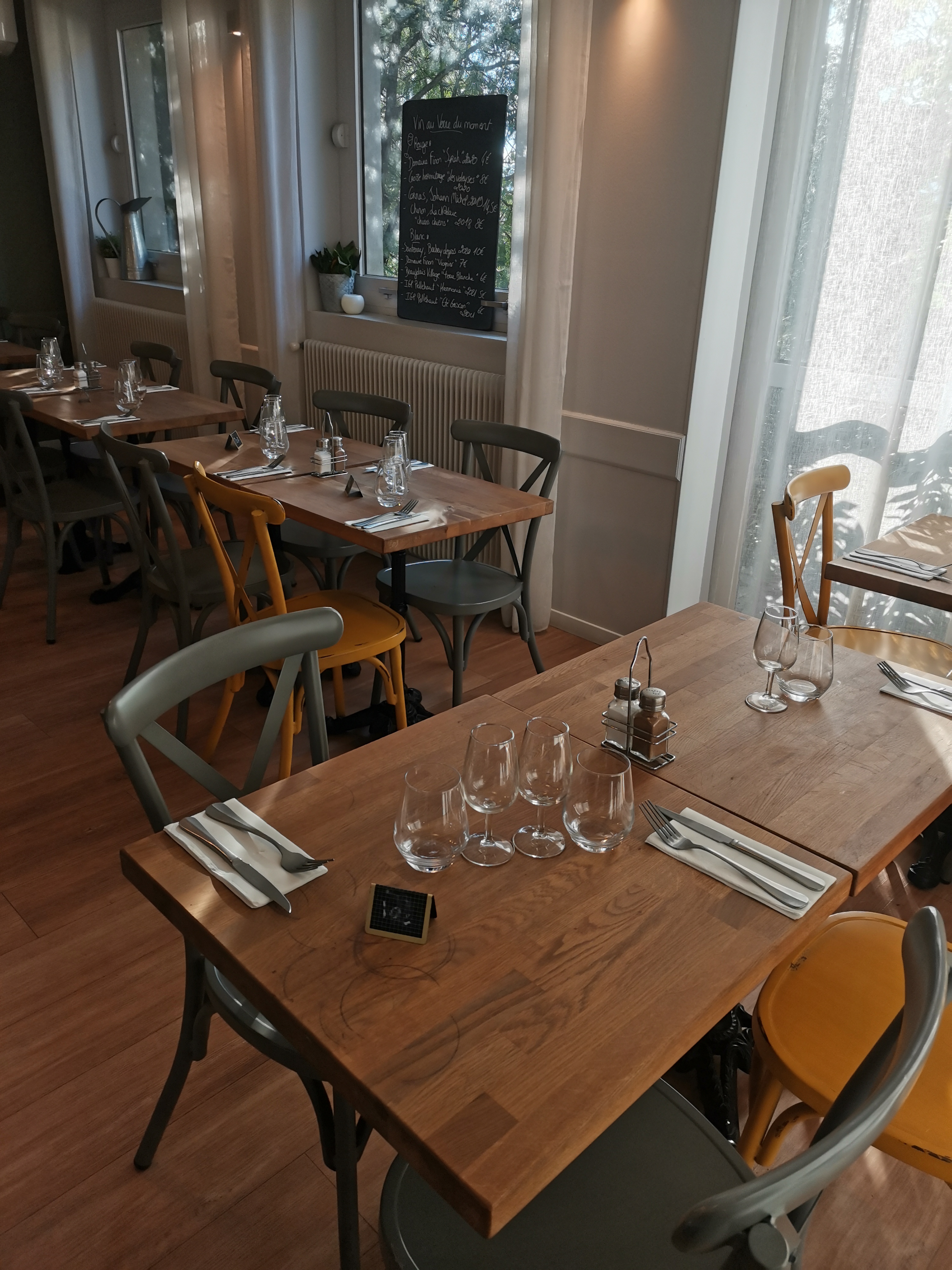 En cette période de déconfinement, la terrasse ombragée est un bonheur. L'accueil est chaleureux, le service rapide et efficace pour les personnes qui travaillent... Côté restauration, j'ai été ravi la première fois (tartare de boeuf excellent), la seconde fois, le cochon aurait mérité une cuisson plus aboutie mais la sauce BBQ était parfaite. Enfin, la carte des vins est simple mais composée de belles cuvées de notre région à des tarifs très raisonnables