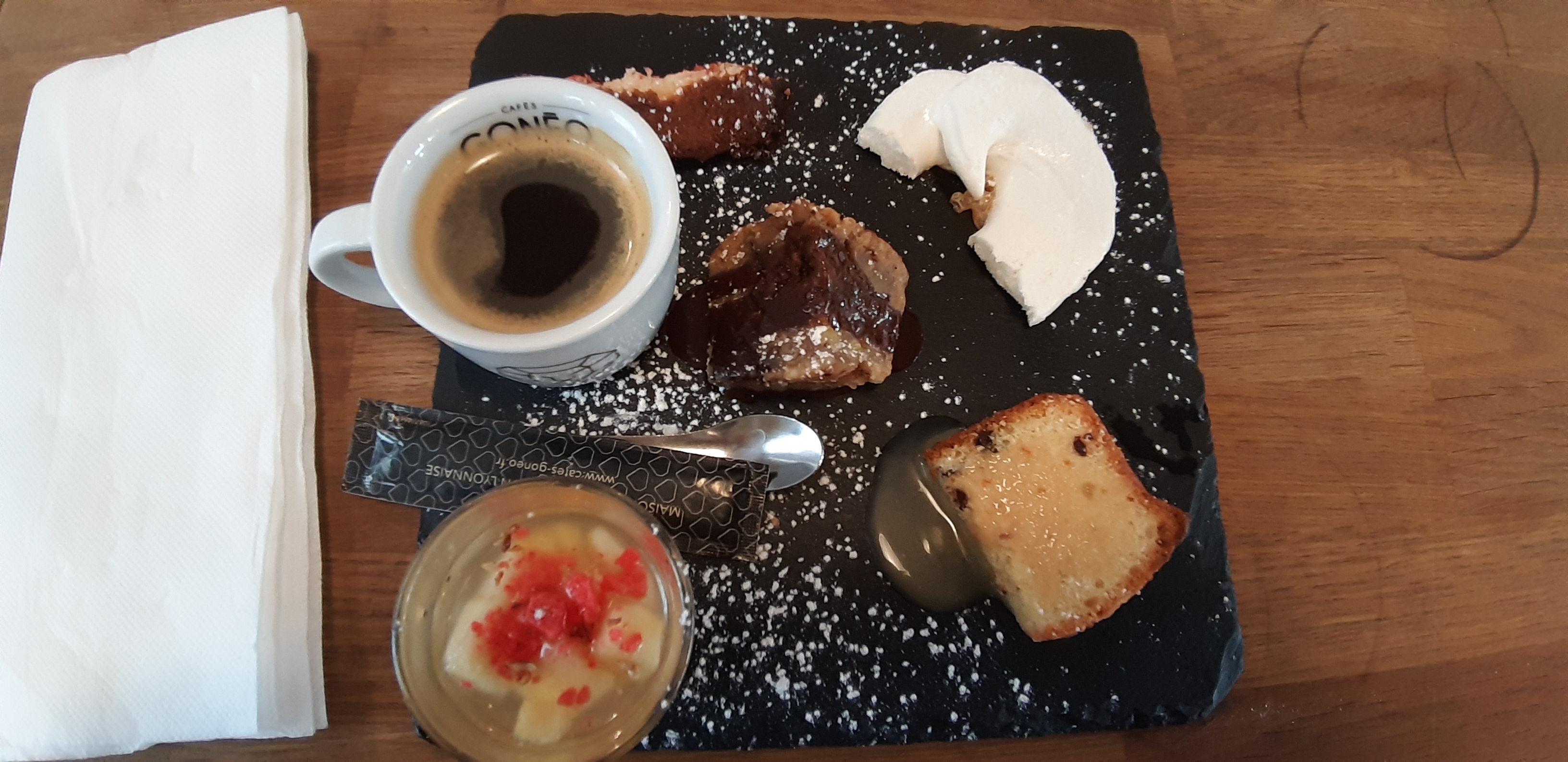 Un lieu très sympa, mais une salade lyonnaise sur base de salade en poche de supermarché, avec une tonne de lardons mais pas de sauce... et le pain était bien rassis !