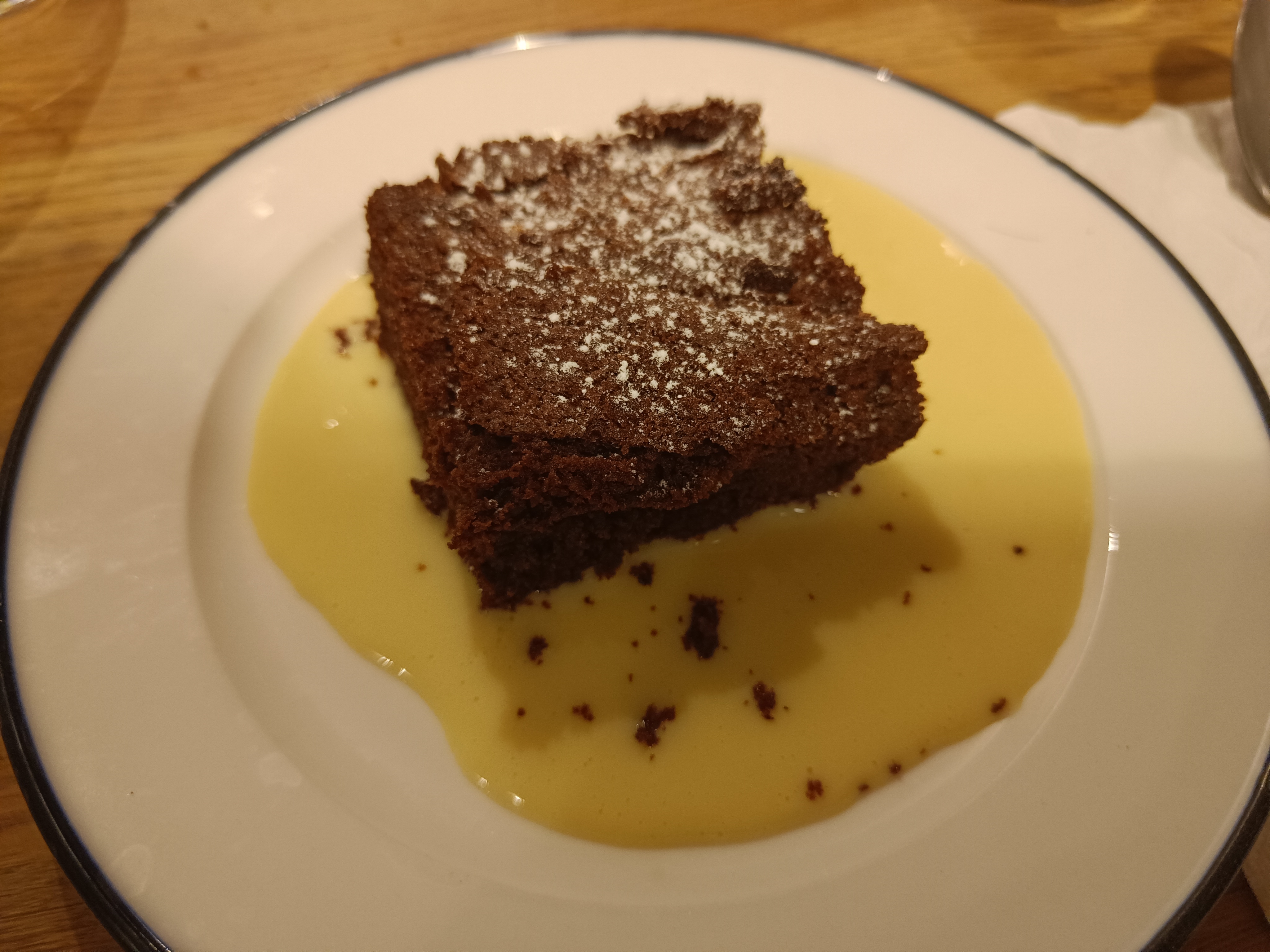 Plat principal bon mais rien d'exceptionnel non plus. Ma salade lyonnaise est servi avec un œuf limite dur. Mon dessert : un fondant au chocolat! Pour 9€ le dessert on s'attend à un minimum de présentation, résultat un fondant même pas tiède, pas de chantilly, pas de boule de glace! C'est un peu du foutage de gueule. Dommage nous ne reviendrons pas.