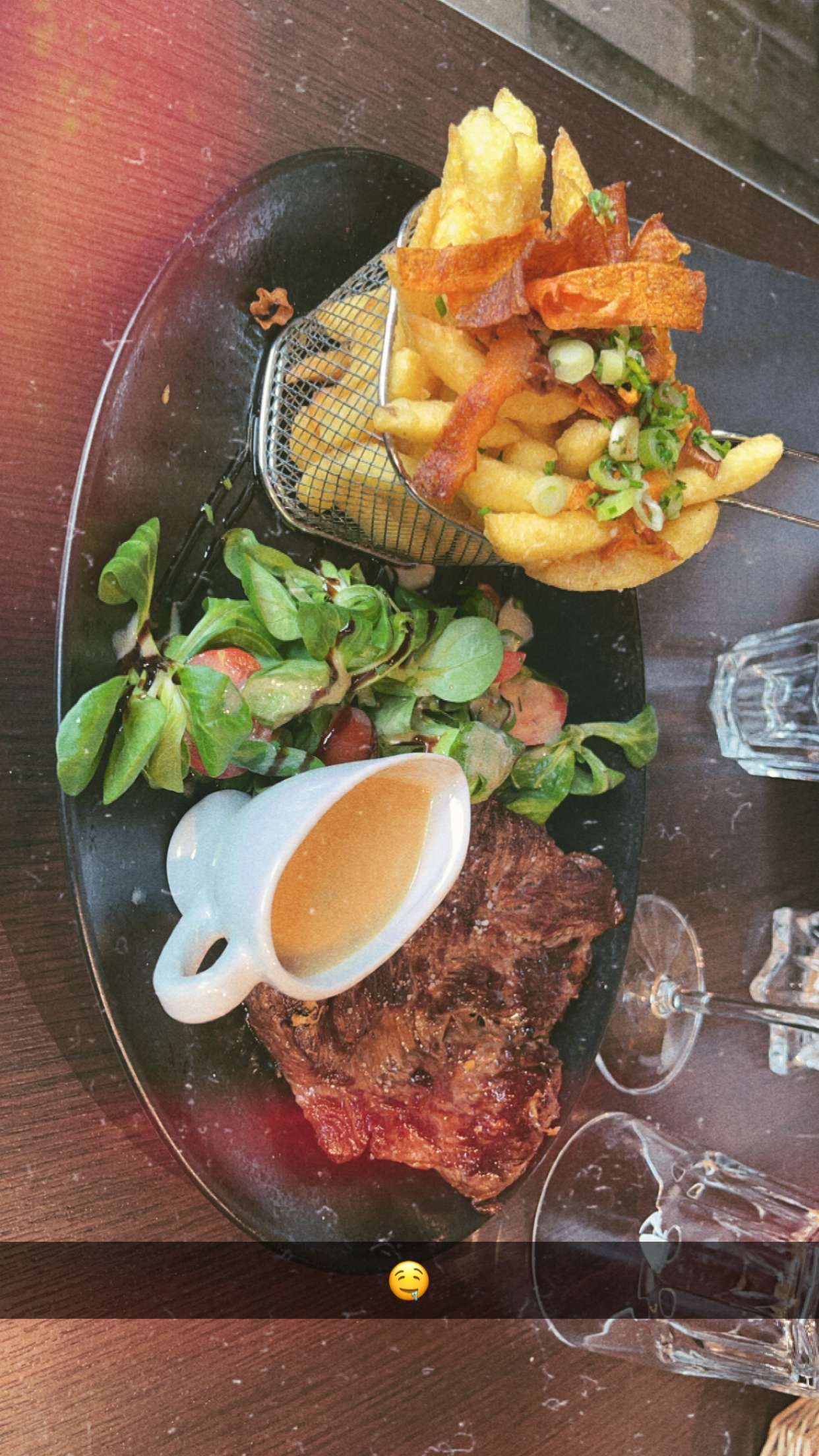 Très bon moment passé avec mon homme, la viande était juste parfaite l ambiance du restaurant est top les serveurs et serveuses aimables et accueillants. Hygiène bien respecté