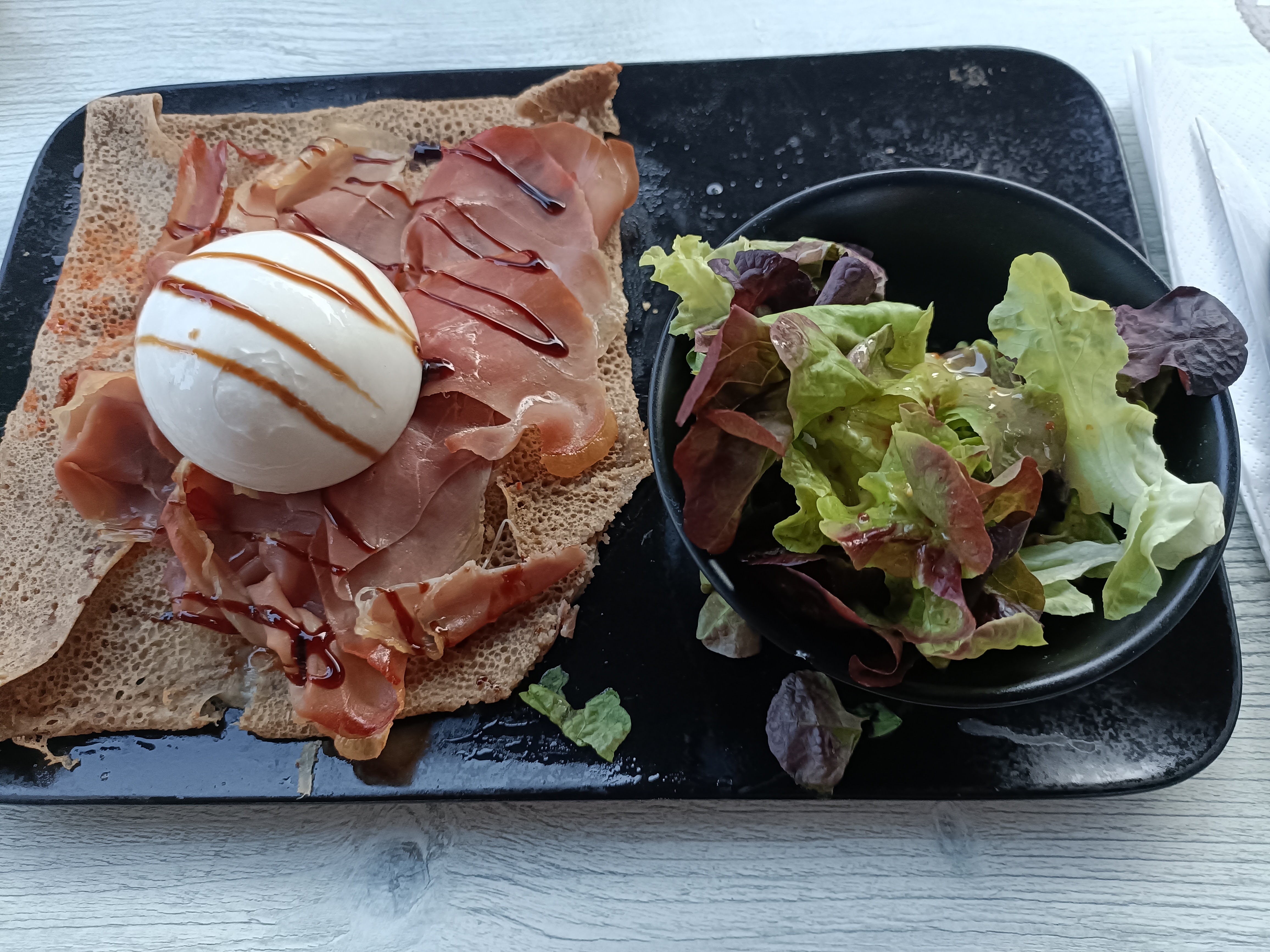 La serveuse était très gentille, souriante et de très bons conseils. Le tartar et la galette etaient très bons . Je recommande ce restaurant vivement. Nous reviendrons avec certitude !