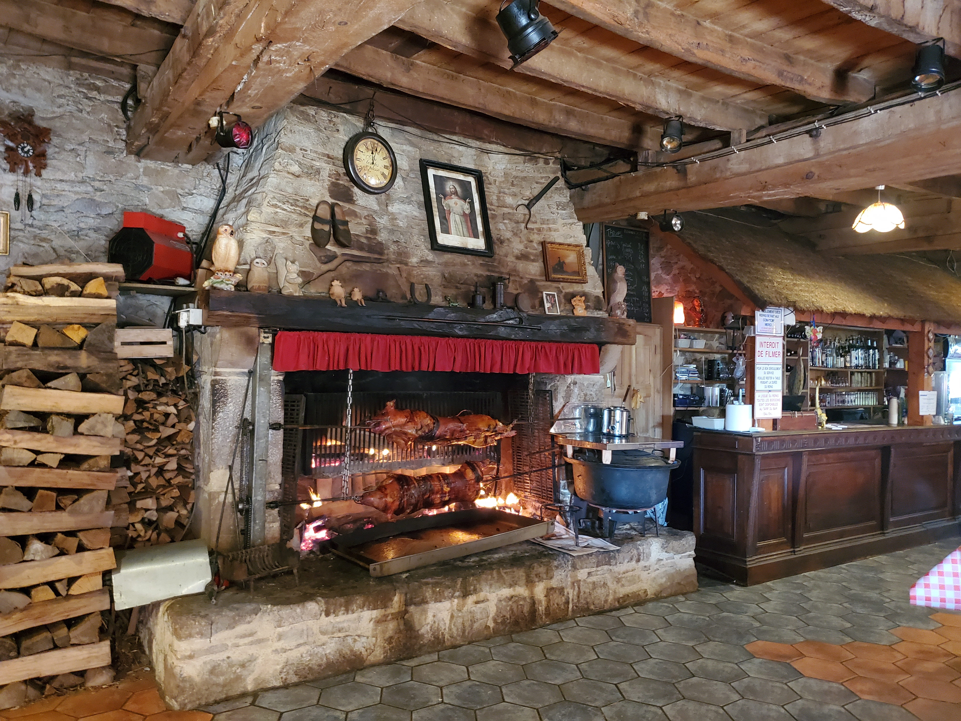 Une belle surprise. On a mangé dans u e ambiance tres chaleureuse, comme un grand repas de famille. Avec un cochon a la broche qui cuisait dans la cheminee. Le personnel tout aussi sympa que l ambiance, tres bon accueil. Les enfants de chaque table qui jouent ensemble, donnait une ambiance de repas de fete. Le repas copieux terroir est tres bon. Et pour finir promenade digestive dans le parc animalier ou la variete d animaix est surprenant. Une adresse a garder sous la main ou l on reviendra c est sur.