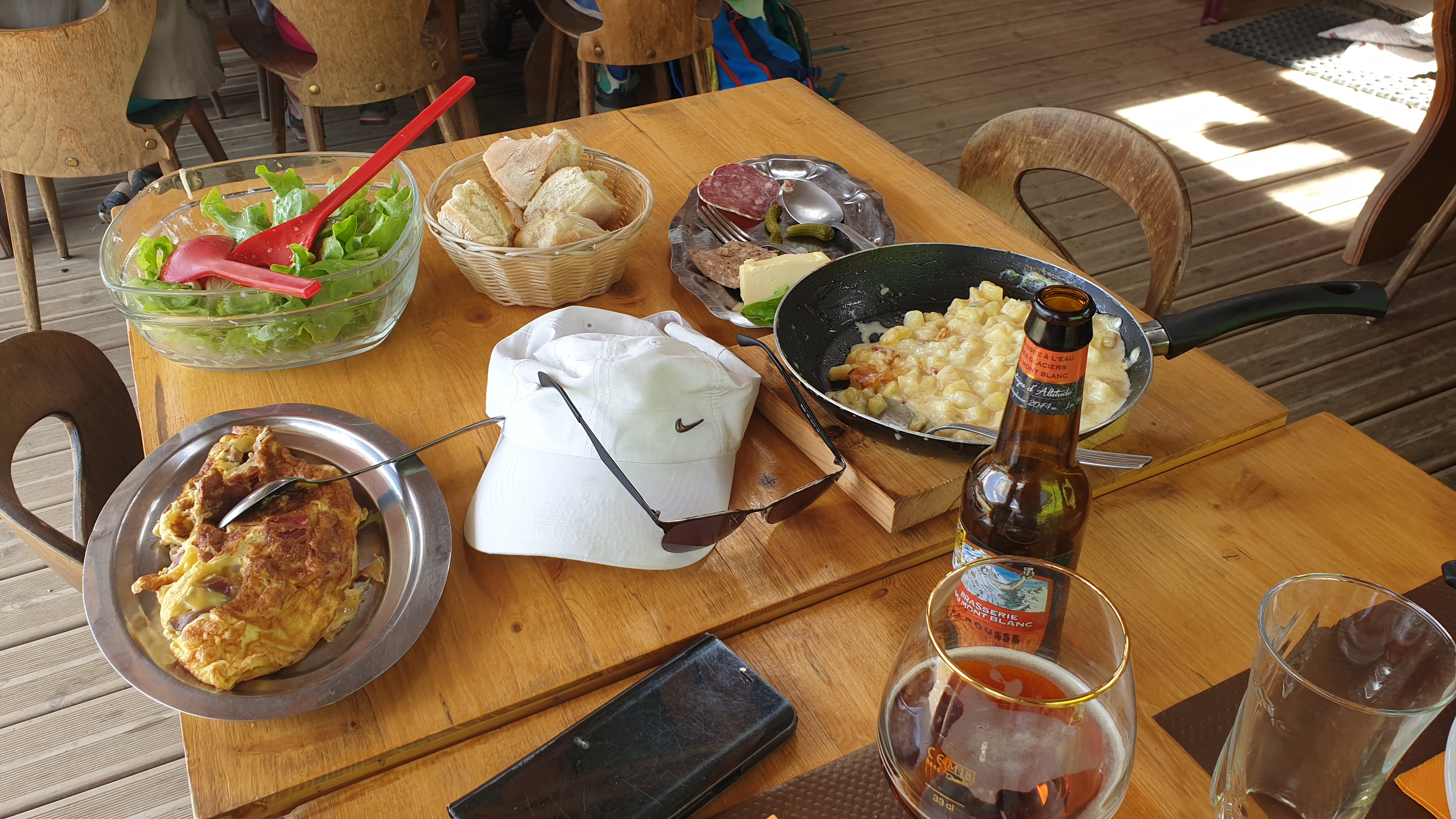 Juste une courte promenade facile et vous êtes à la ferme. Puis déjeuner avec crudités, omelette et fromages. Un vin délicieux avec ! Belle détente sur l'Alpe.
