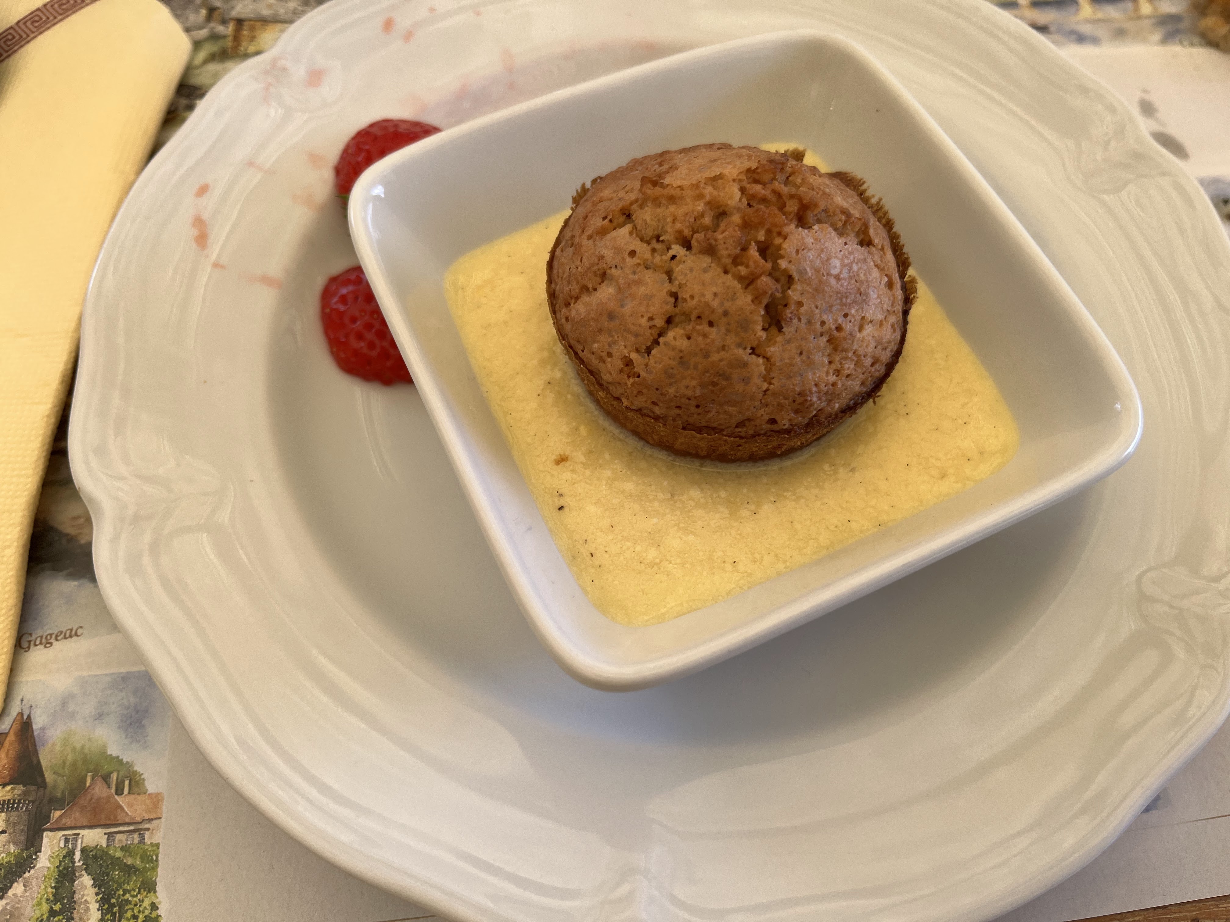 plats très copieux et excellents, le vins de très bonne qualité,accueil chaleureux, cadre très joli petit reproche, manque un peu de sauce avec les plats. Nous y sommes pour la deuxième année, rien a changé, un Monbazillac, il est servi avec des toasts au foie gras le pied