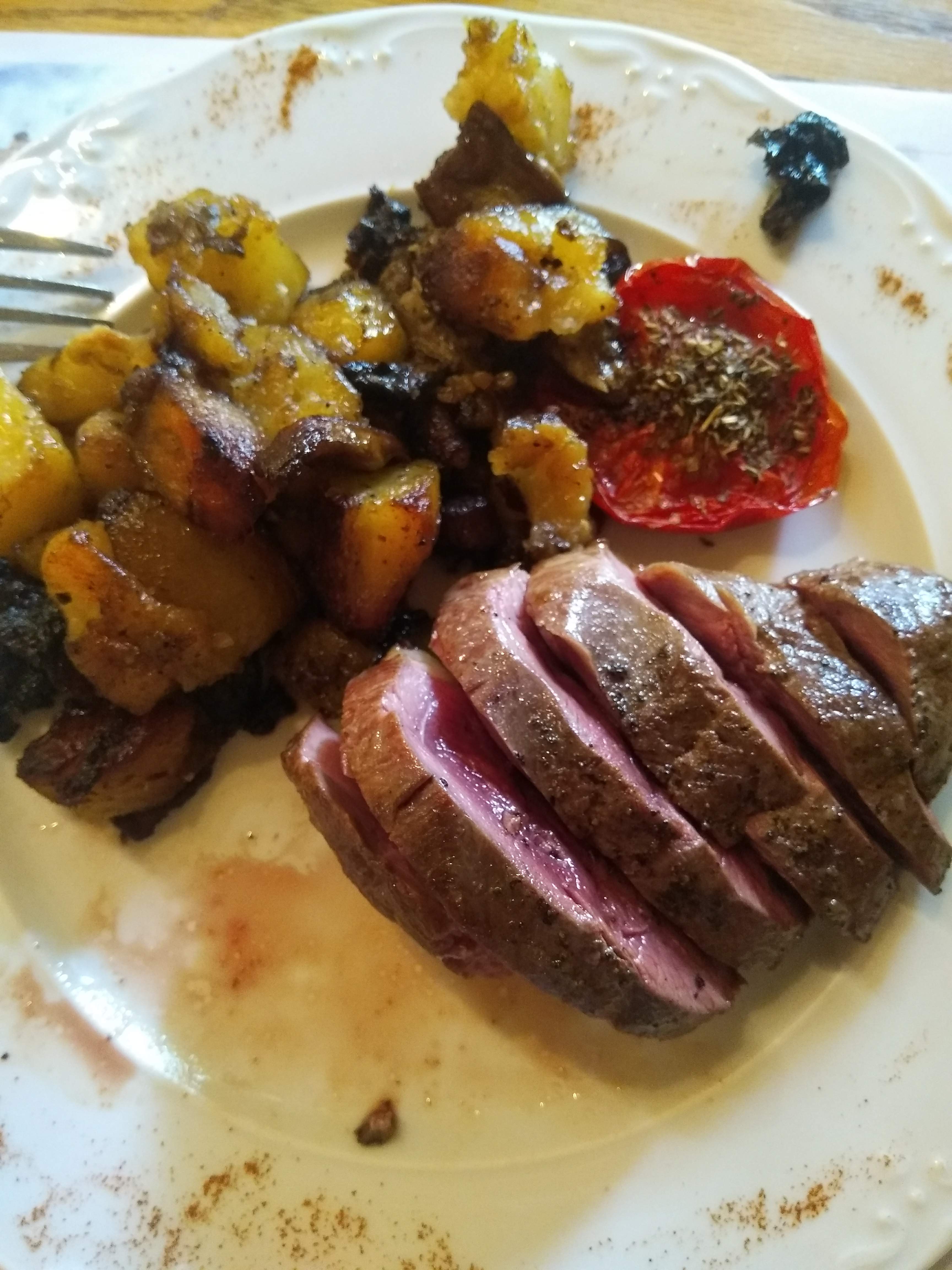 Très bon. Belle maîtrise des cuissons du canard. Un plus bien agréable, du cèpe avec les traditionnelles pommes de terre. Et en ce début de saison un calme parfait.