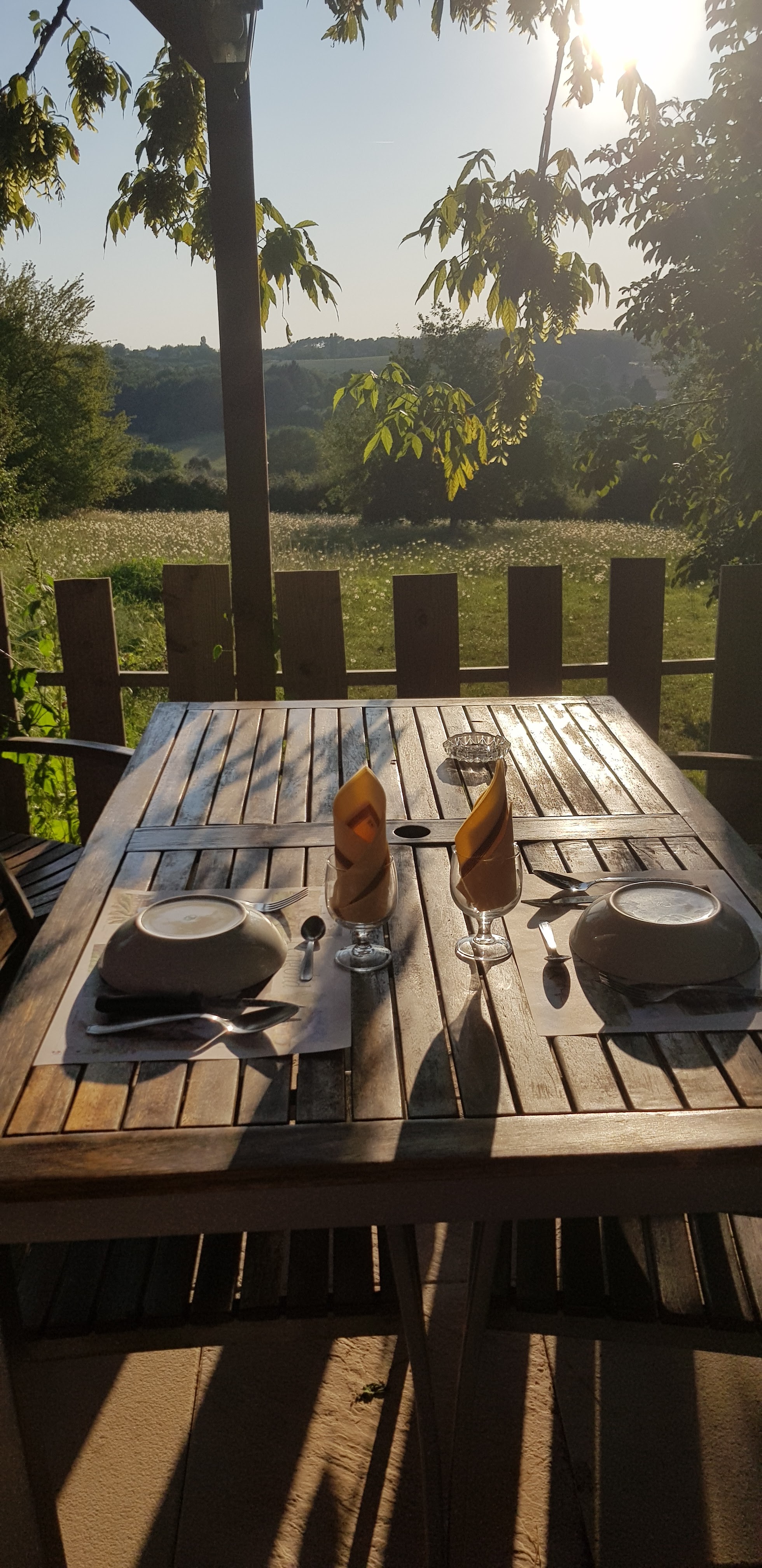 Cadre magnifique Accueil au top ! Repas parfait avec des produits de la ferme et un très bon rapport qualité prix Merci pour tout