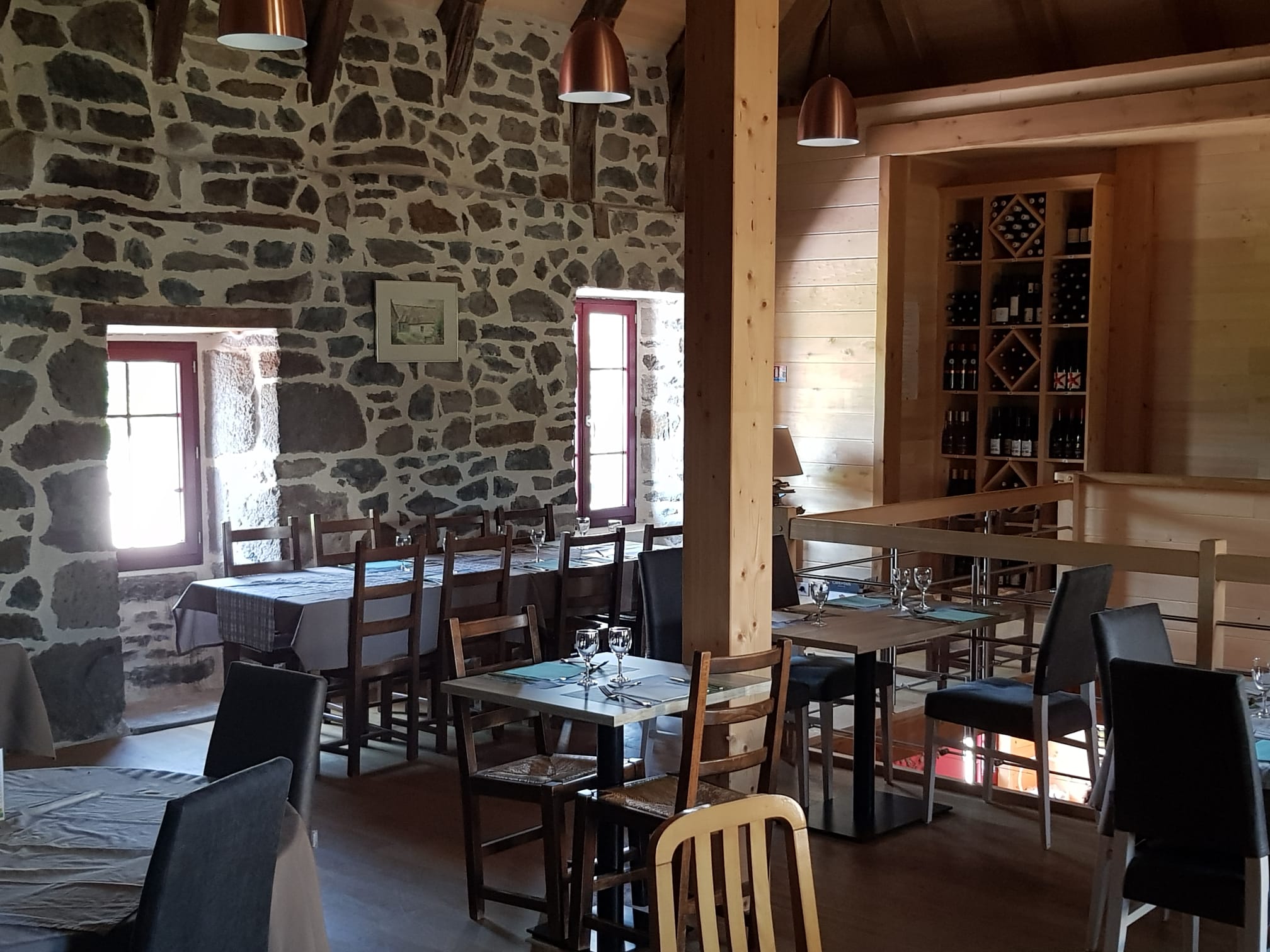 Facile à trouver. Une fois sur place le fléchage mériterait d'être amélioré La bâtisse restaurée est de bon aloi. La salle est magnifique. L'accueil chaleureux, toute la famille se met en quatre, père, mère, grand-mère et filles rivalisent de gentillesse. Réservez, c'est plein Les plats sont locaux, la viande de Salers bien sûr, délicieuse, le Saint-Pourçain parfait. Idée de génie, à généraliser, les familles avec enfants sont dans une autre salle, gage de tranquillité.