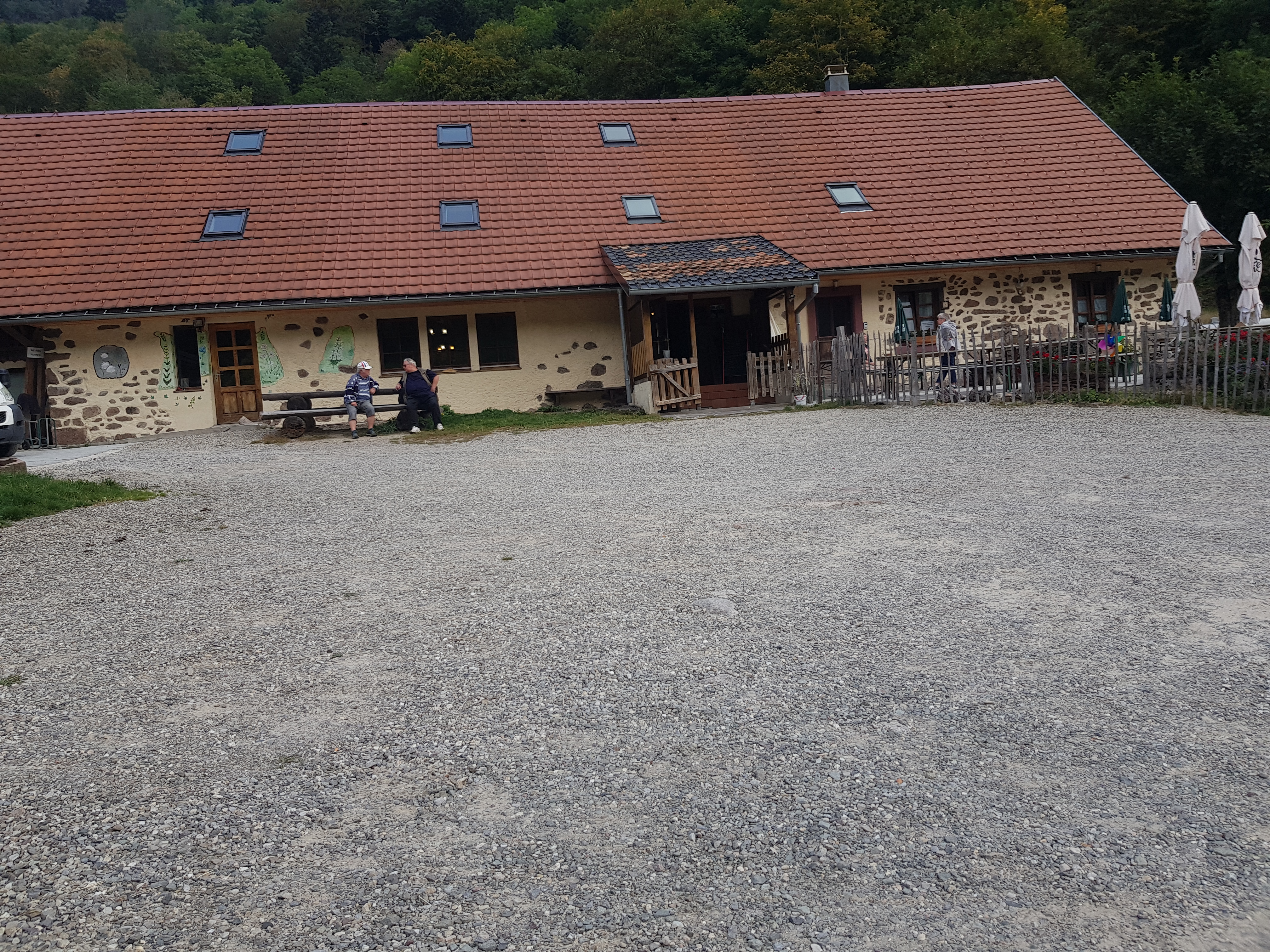 En montant de SEWEN (parking de l'église Notre Dame) à pied avec de bonnes chaussures de marche (4,7km et 200m de dénivelé positif) en longeant de superbes cascades et plans d'eau, la Ferme auberge du Hinteralfeld nous a offert un accueil chaleureux. Nous étions un groupe de 90 personnes, parmi d'autres convives, le service était efficace et rapide, et nous nous sommes régalés. On en a profité pour faire un petit coucou aux animaux de la ferme dans les écuries et le hangar.