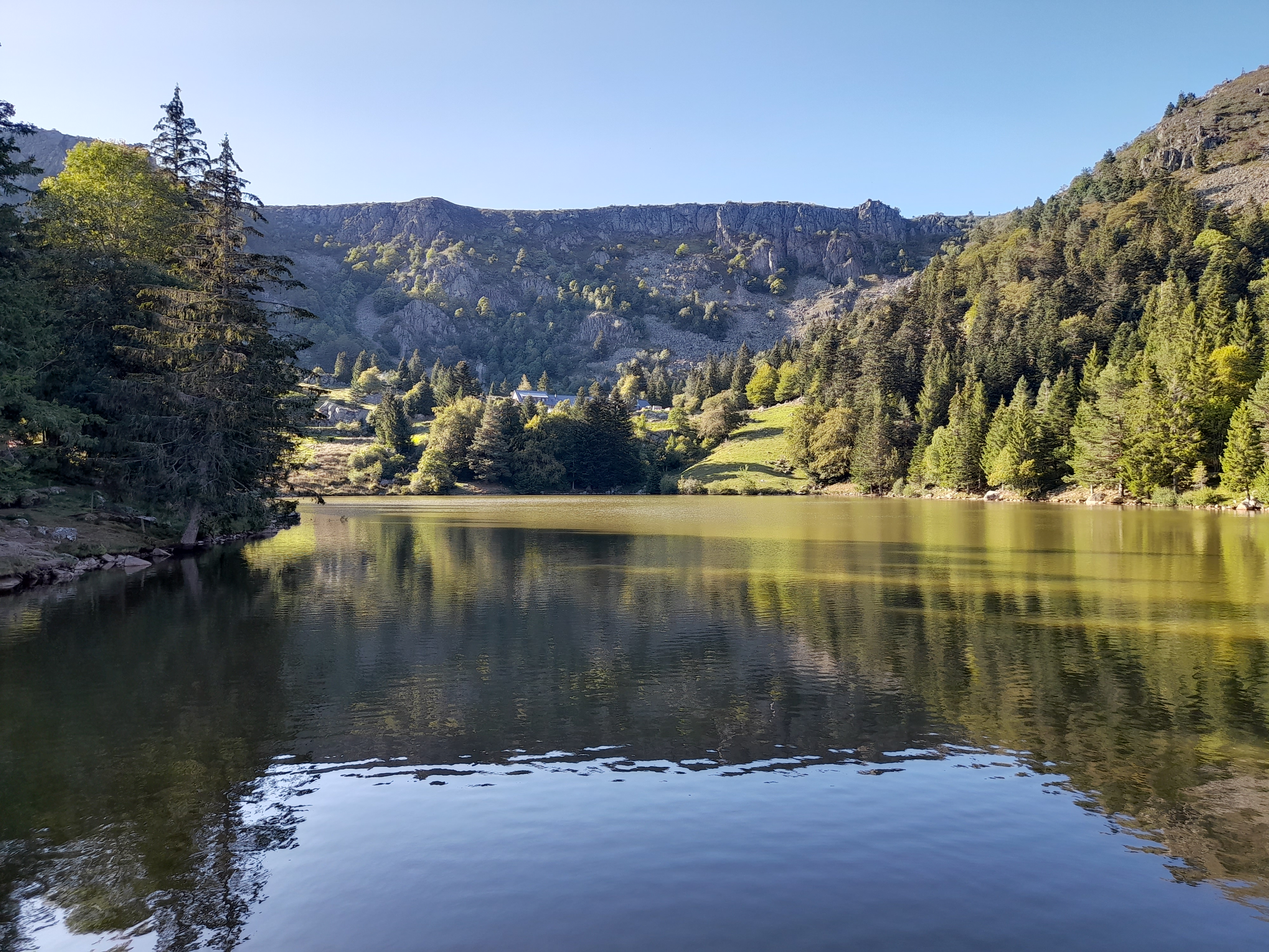 Magnifique site qui se mérite, un cirque loin des routes et des parkings. Belle terrasse avec vue sur le lac et bonne table, parts de tartes copieuses. Tarte au fromage blanc très bonne, sauf que ce n'en est pas une, mais plutôt un genre de flan ou crème aux œufs sur fond de tarte.