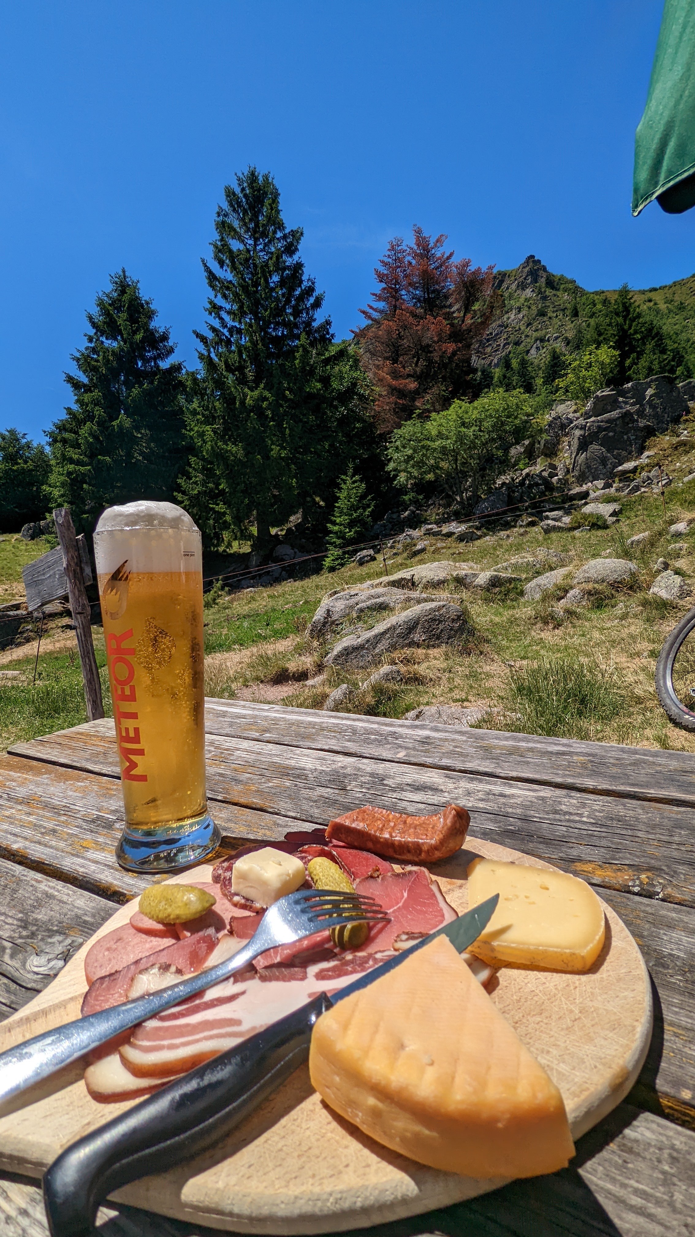 En toute simplicité après notre marche, avons déjeuner simplement, copieusement, Pdt, salade, munster, pour un prix raisonnable, et Hé me suis régalée
