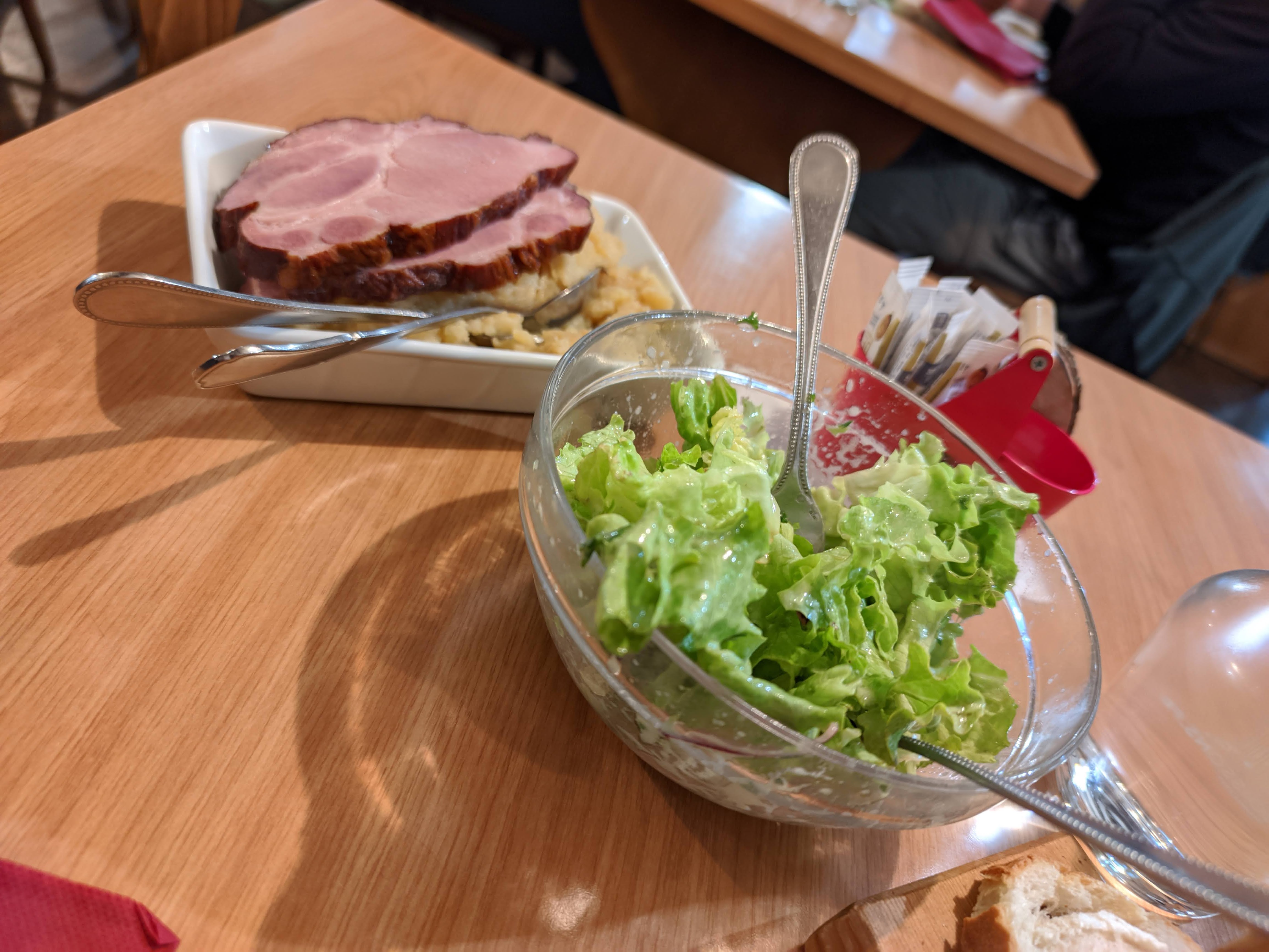 La tourte et le fromage de tête toujours aussi bons. Menu cochonnailles moyen. Arrivée au règlement de l’addition, j’ai testé un nouveau concept… Les « grandes « tablées peuvent régler avant les plus petites dixit le patron, pour 60€ de plus on a droit au meilleur 😅