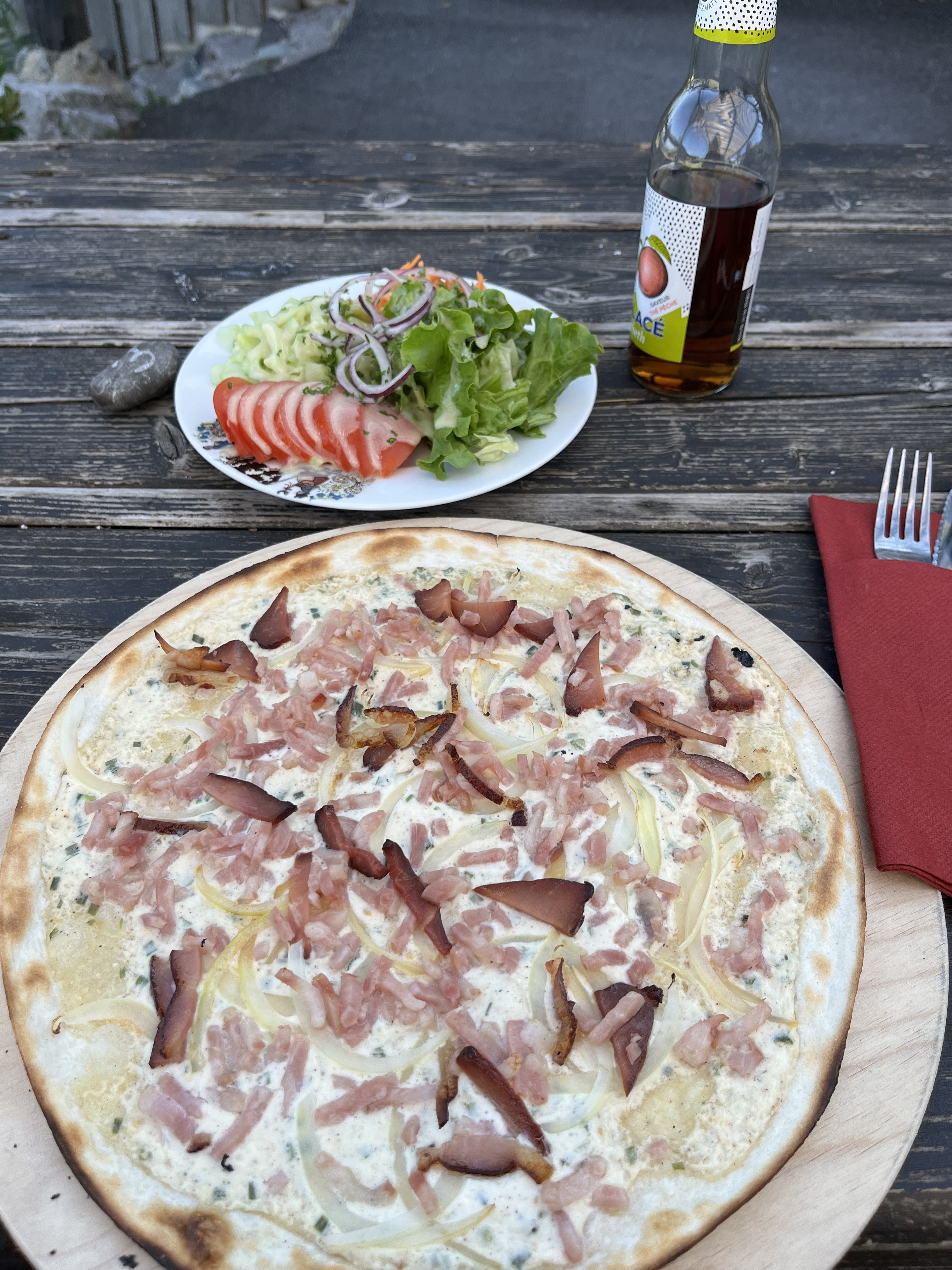 Quel bonheur de venir se restaurer dans un si bel endroit. La tarte flambée paysanne est très généreuse. Sans oublier le sieskas de fin de repas !
