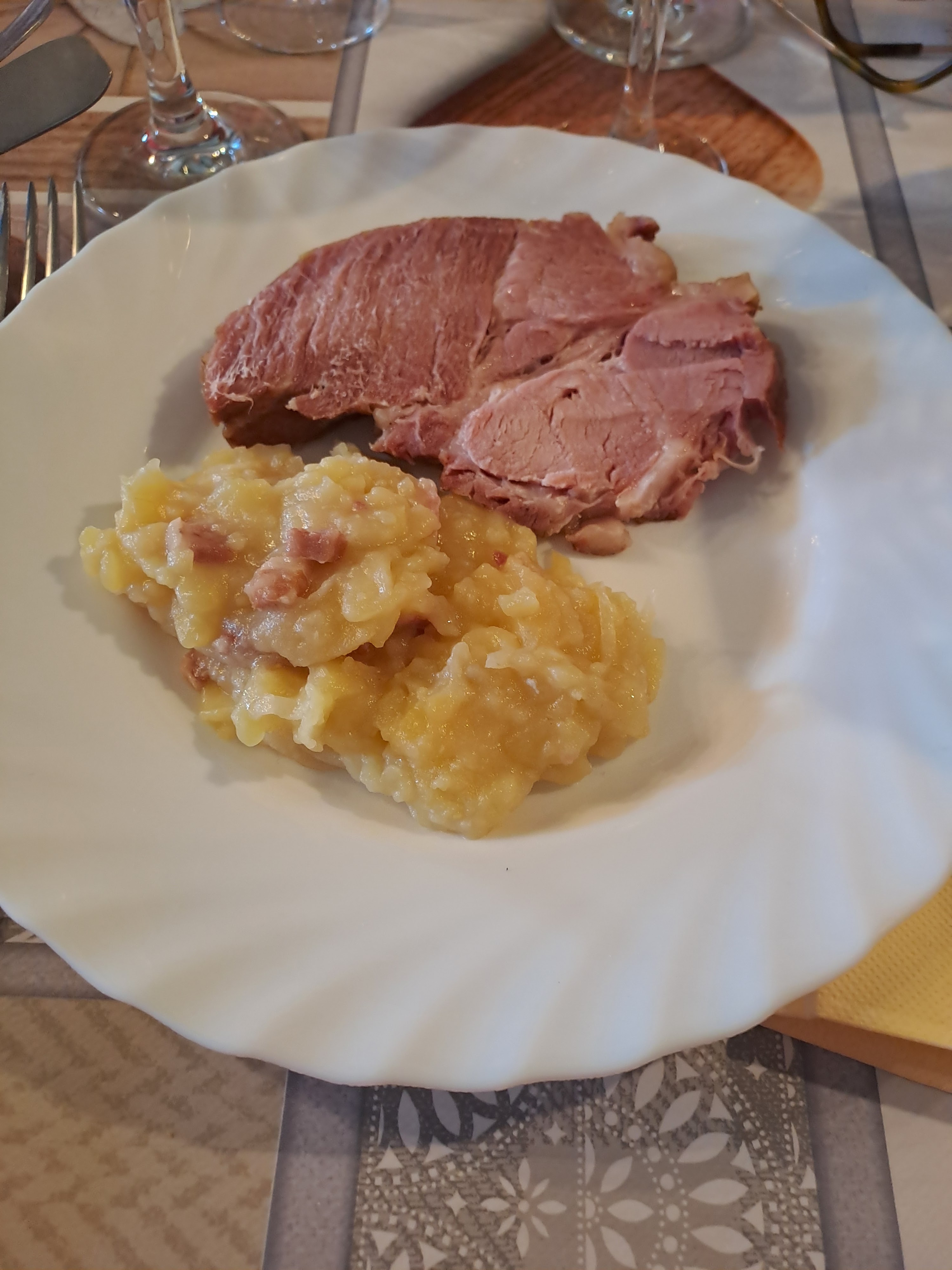 Arrêt indispensable , une choucroute au navet ça surprend à la lecture de la carte mais quel délice ! La charcuterie qui l’accompagne est de première qualité 👍👍