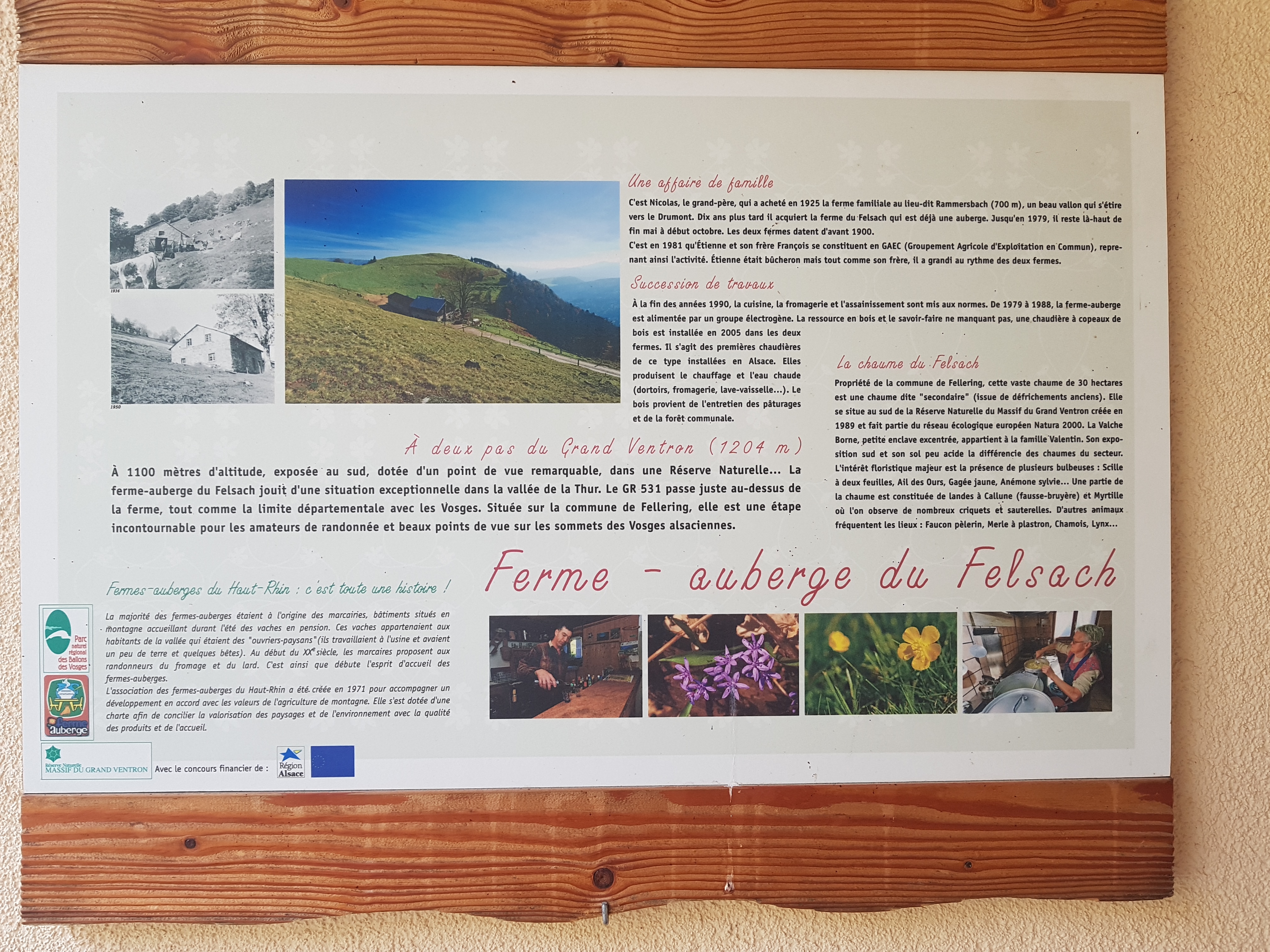 Nous avons passé un agréable moment dans une ambiance familiale et bien sympathique. Cuisine traditionnelle pour rassasier les promeneurs et les randonneurs. Après le repas un petite promenade digestive au tour et au sommet du Felsachkopf offre un joli point de vue sur la vallée, le lac de Kruth (même s'il est à moitié à sec).