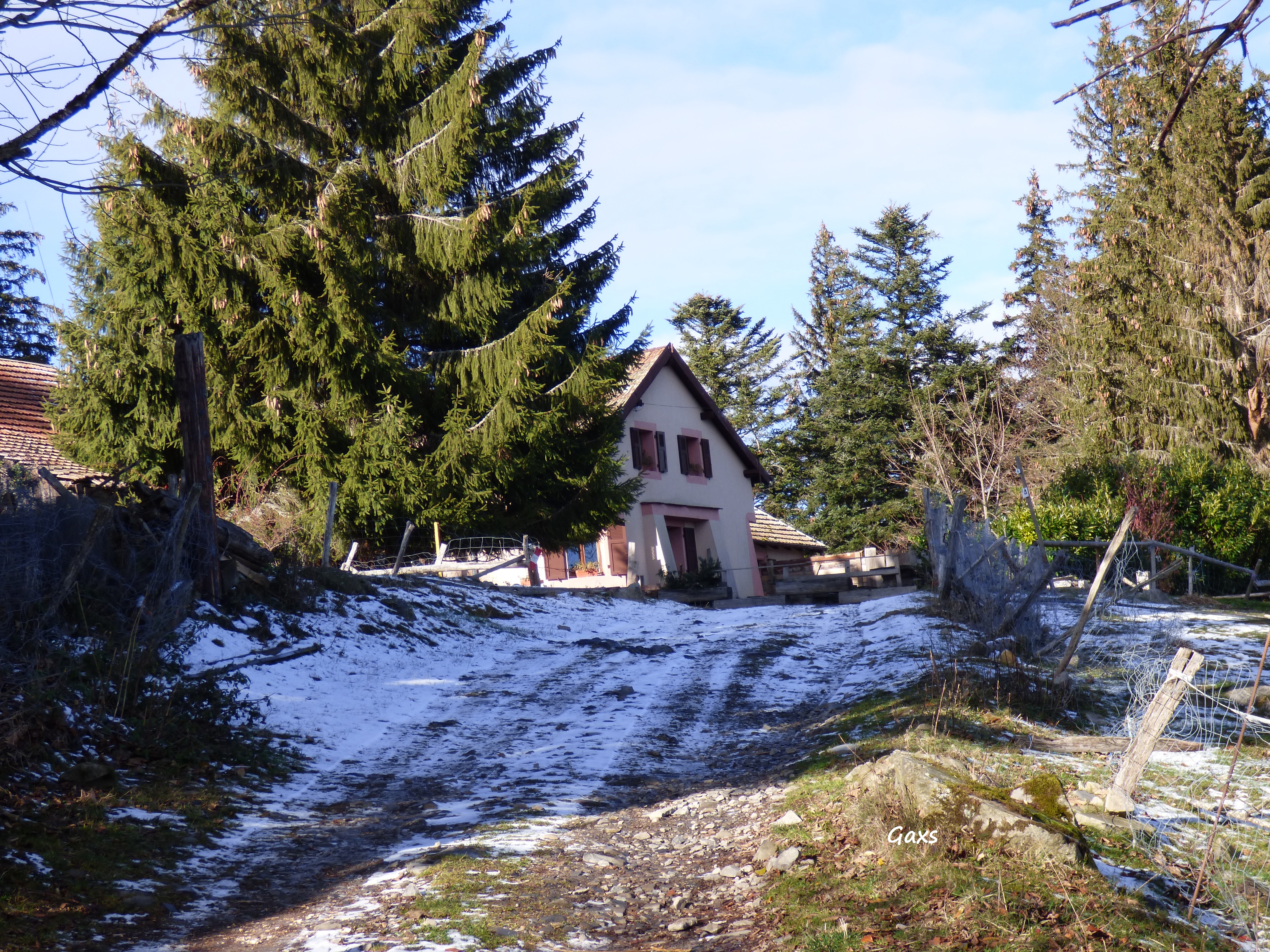 Altitude 980m pour cette ferme auberge, non loin du lac du Ballon, pas de route pour y accéder, mais un chemin forestier. De nombreux sentiers de randonnées s'y croises. Altitude 980m for this farmhouse, not far from Lake Ballon, no road to access, but a forest path. Many hiking trails cross there.