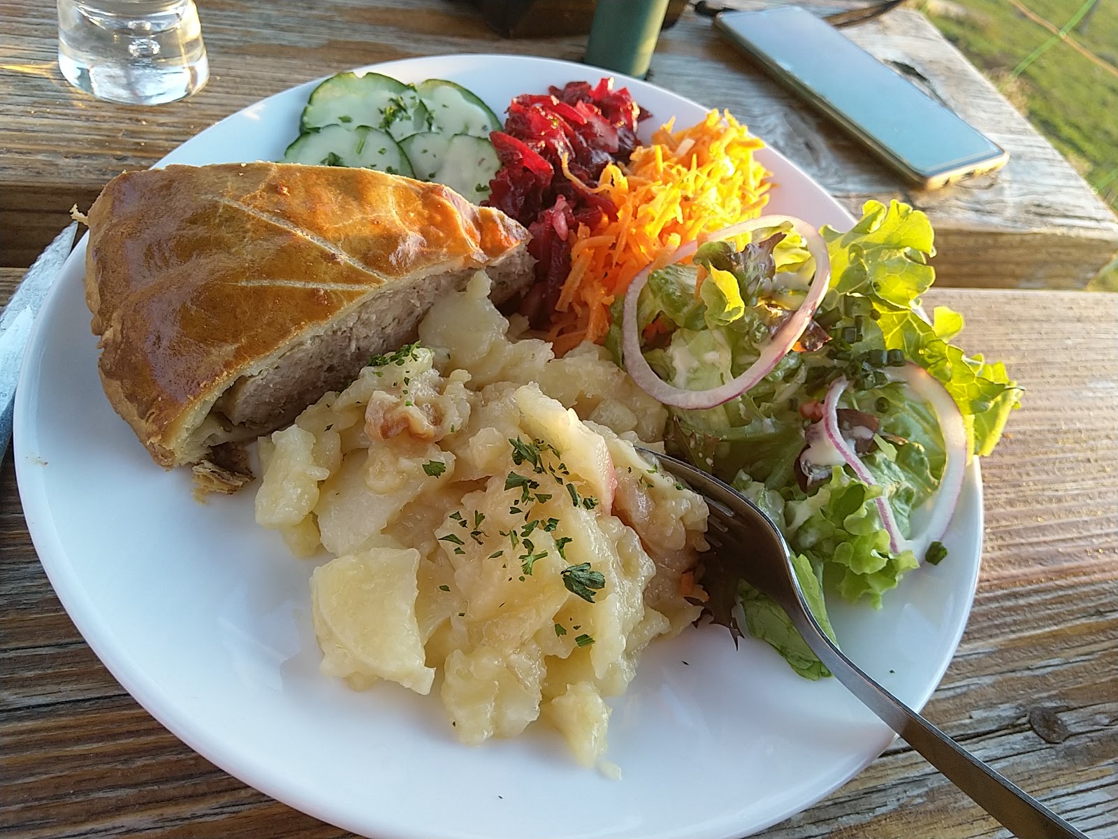 J'ai pris une tourte avec crudités c était excellent, quantité pour gros mangeur, la tarte aux pommes maison un pur régal , le service était aimable et chaleureux.