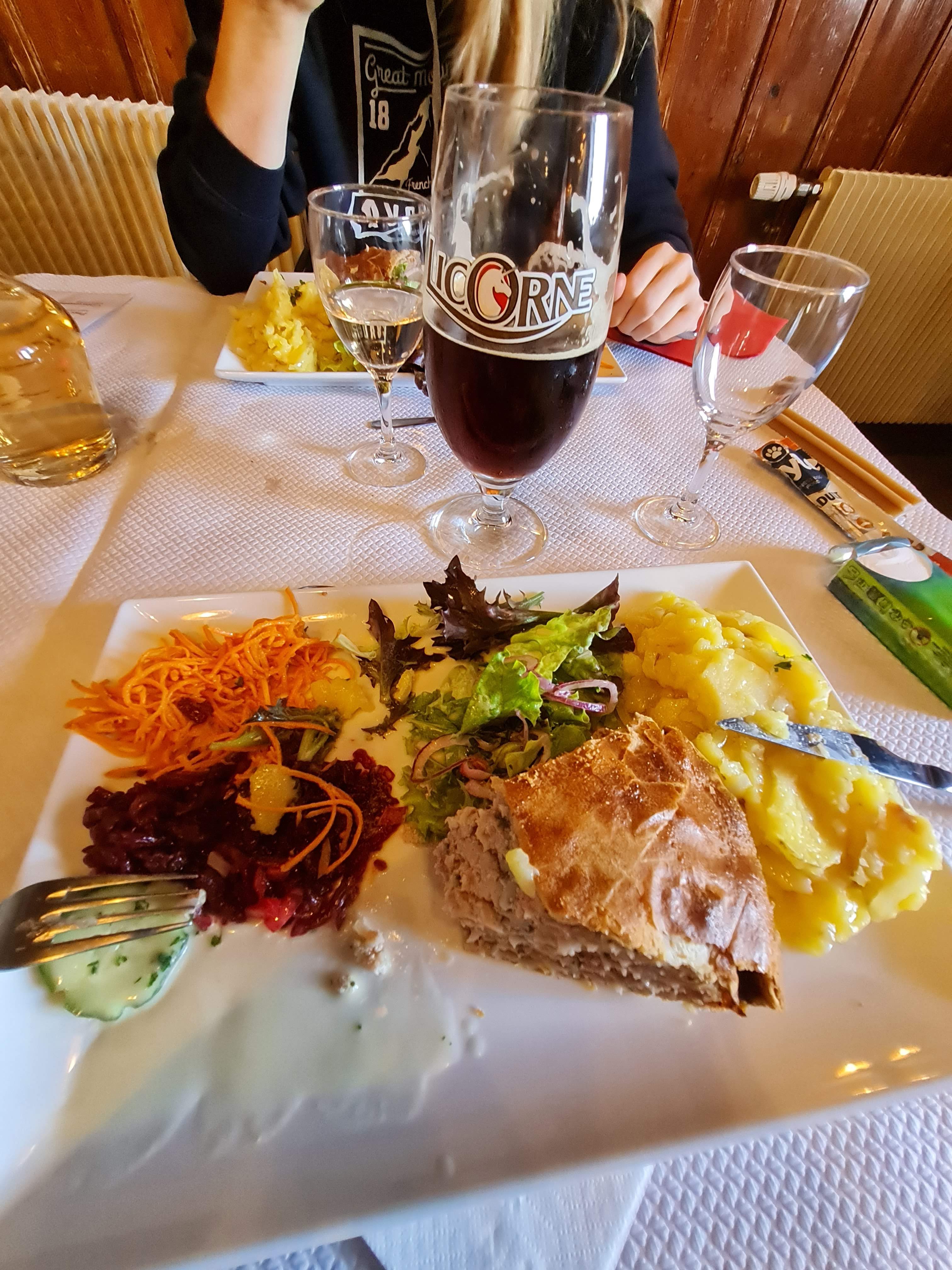 Cuisine bonne et typique des Vosges, le siaskass est vraiment très bon et fait le jour même. De la licorne black à la pression 😀. Il y a juste un soucis si vous êtes assis près de l´entrée, les nombreuses entrées et sorties font rentrer l´air frais, la porte automatique n´y change rien, un rideau ou un sas plus grand serait bénéfique.