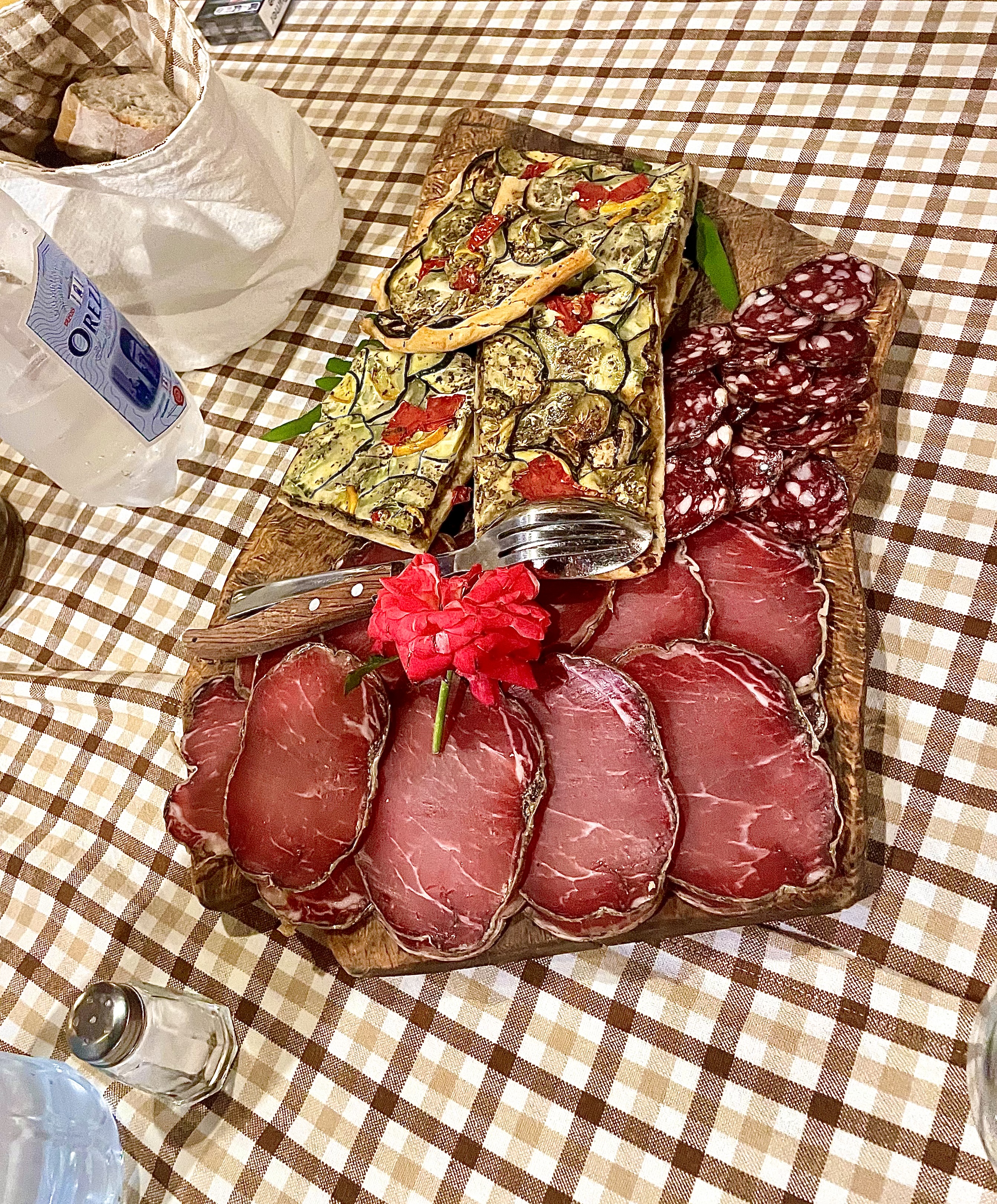 Super déjeuner corse en terrasse, avec une vue superbe au cœur du village de Penta di Casinca. La charcuterie provient directement de ce la cave … en contre bas . Excellent accueil
