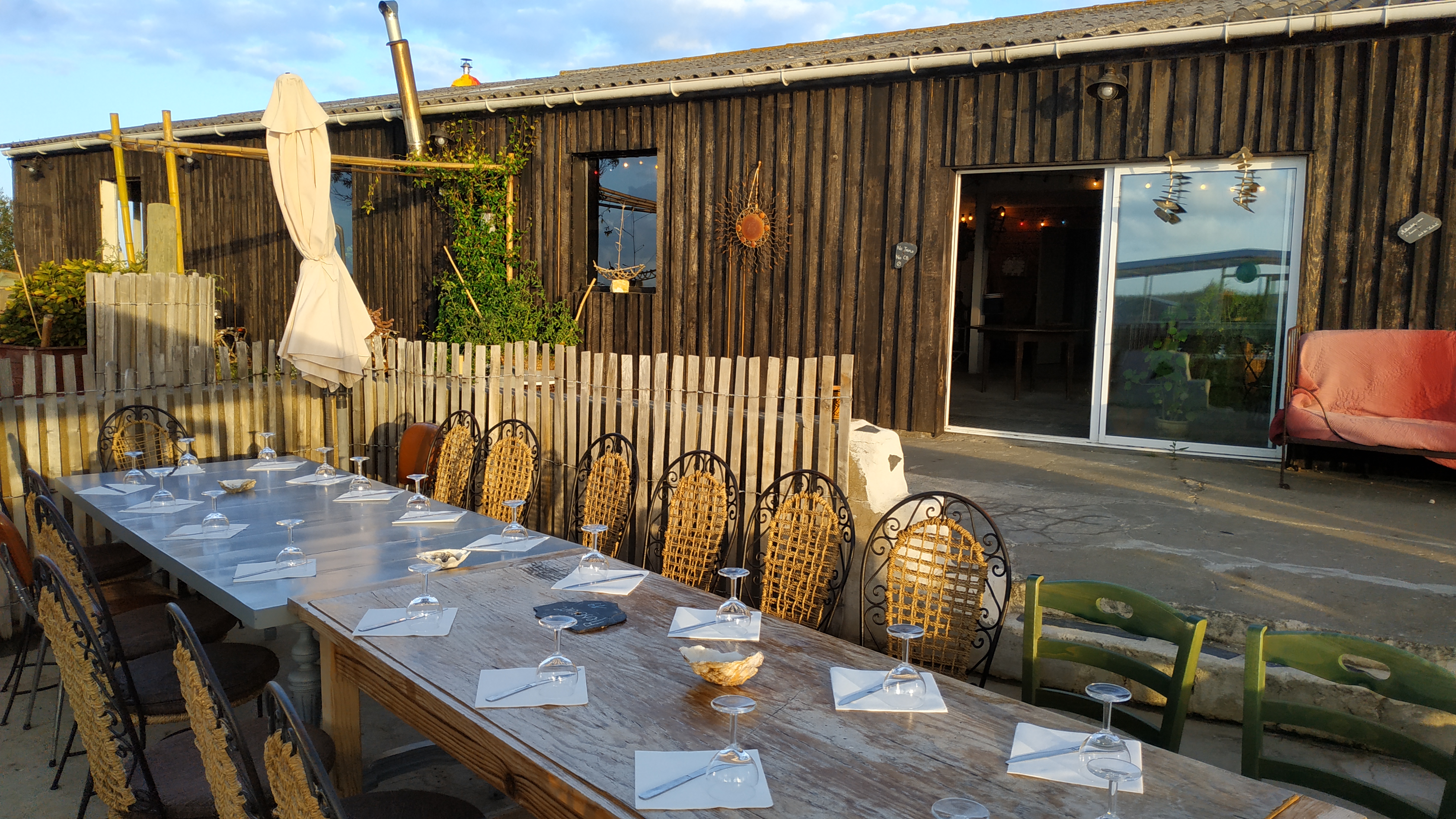 Nous avons été très bien reçu. Les personnes qui tiennent ce restaurant sont d'une gentillesse à retenir. Nous avons tres bien mangé. Pour les enfants ramener du jambon il vous fournisse des frites qui d'ailleurs son maison ! Et délicieuse ! Les moules sont bien pleines et succulentes. Le cadre idéal nous fait penser que l'on est chez des amis au bord des claires. Si vous voulez passer un délicieux moment n'hésitez pas. Je vous conseil fortement de reserver ce petit cocon est très prisé. Je vous conseil aussi la veste ou le manteau quand le soleil se couche il fait vite frais. Merci nous reviendrons très bientôt.