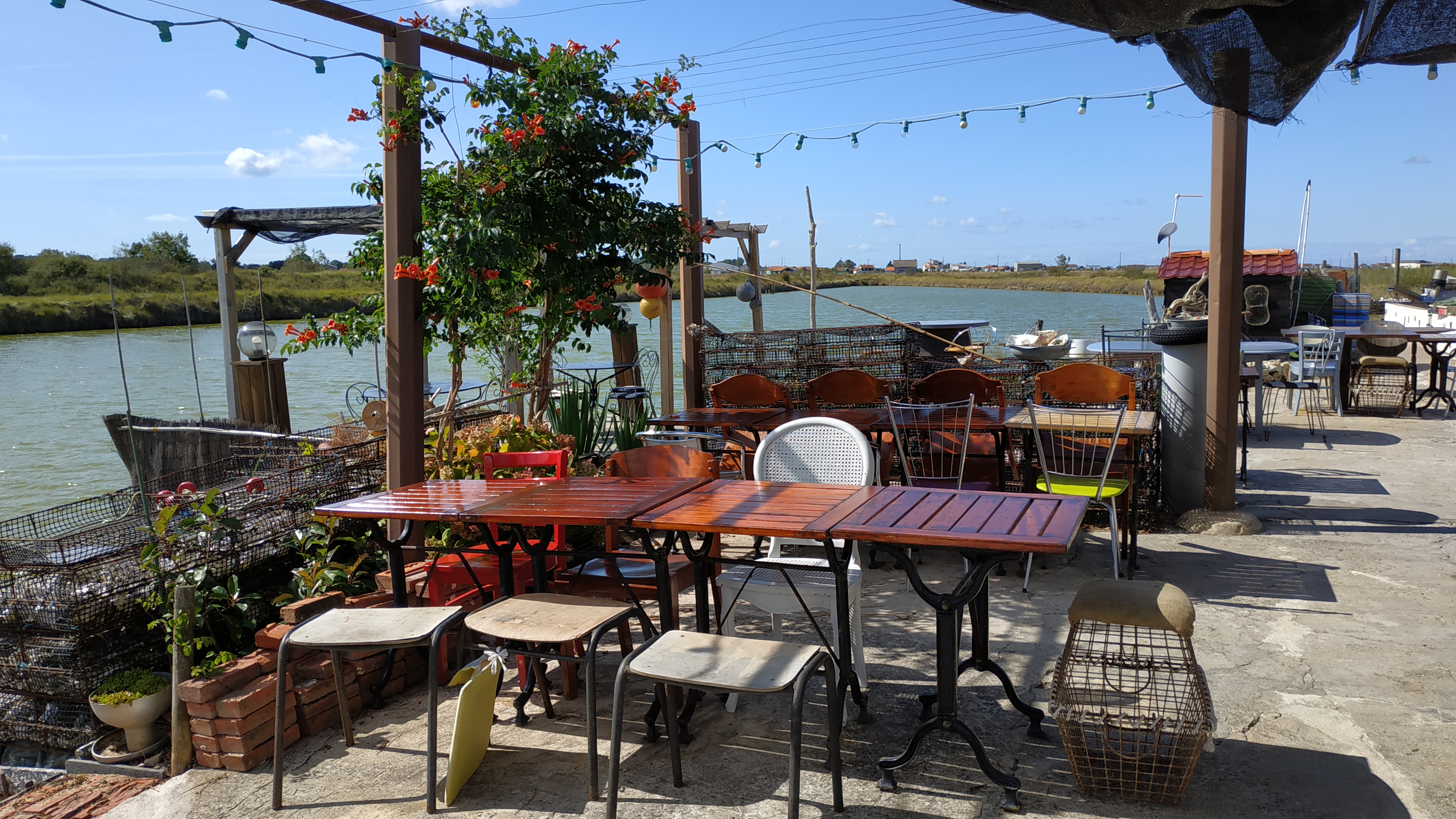 Lieu totalement atypique. Cuisine orientée sur les produits de la mer locaux ; le tout servi au bord des claires dans les marais. Seul bémol : les moustiques pendant un bon quart d'heure à la tombée de la nuit. Je conseille cependant pour la qualité des produits l'amabilité des propriétaires et la beauté du site