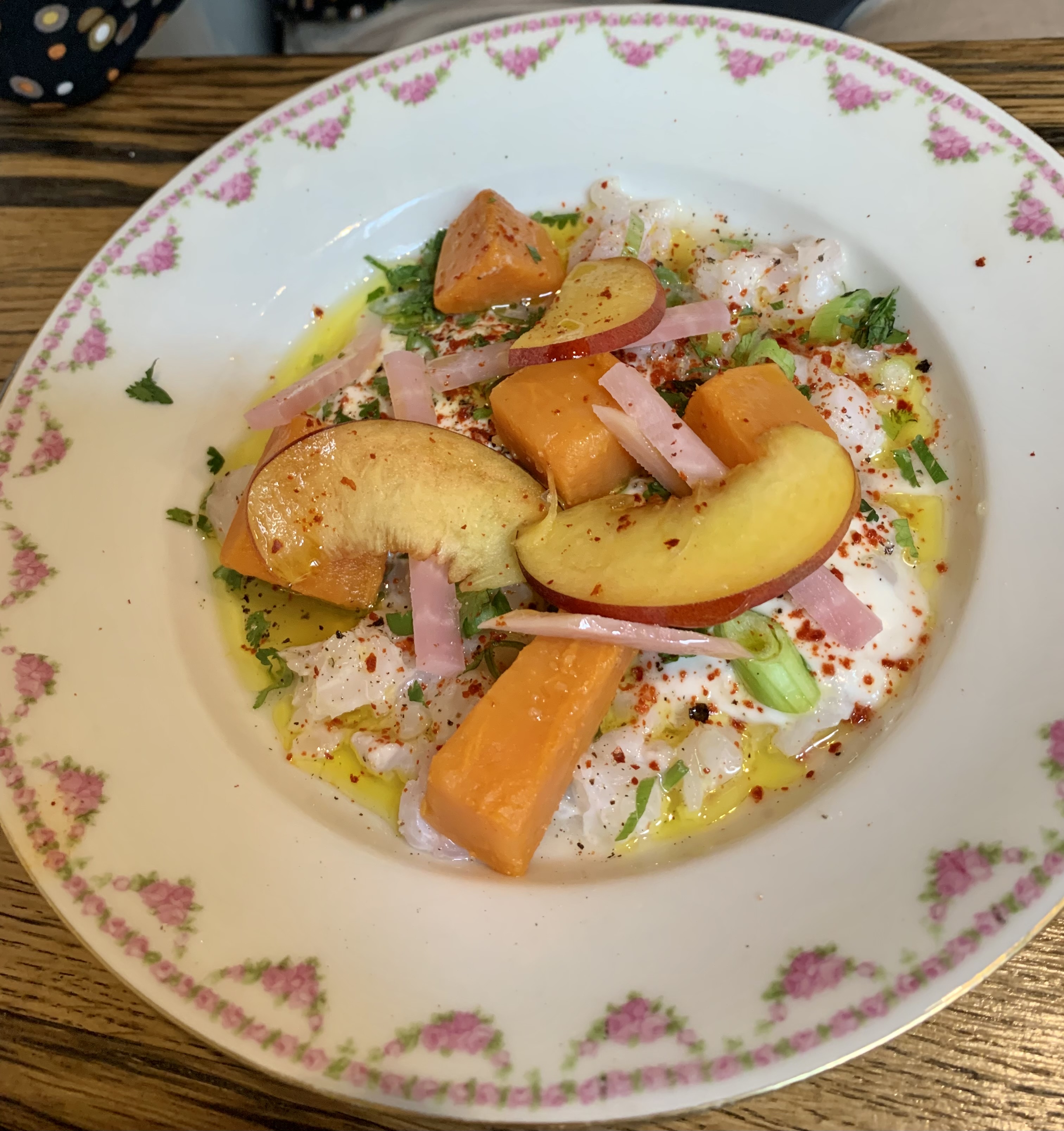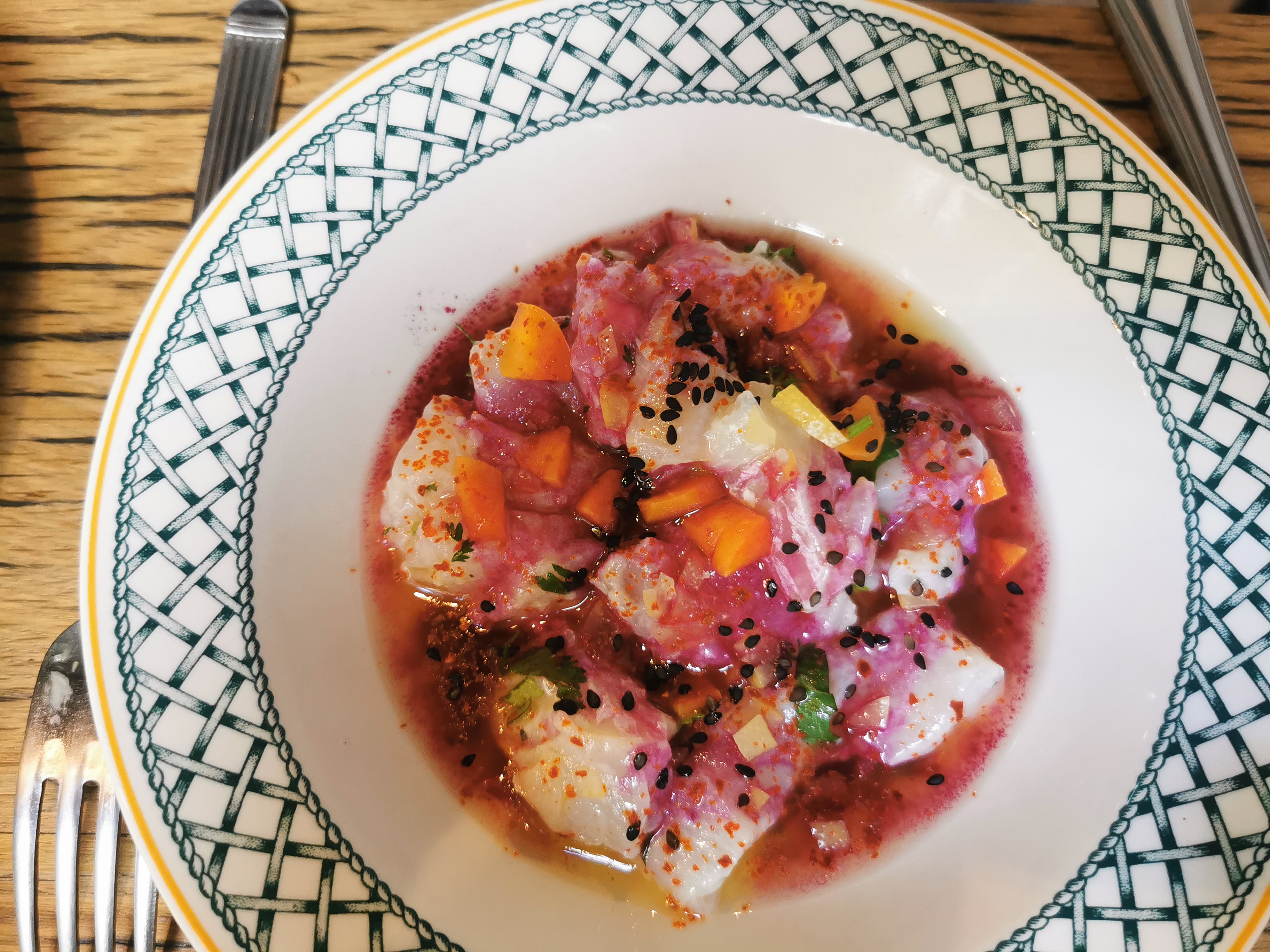 Expérience intéressante de cuisine fermentée mais si on n’aime pas … pas d’autre choix ! Crème au chocolat au miso très salée et dans le ceviche : le poisson est coupé épais et malheureusement trop « cru » . Ceci dit , le reste est bon