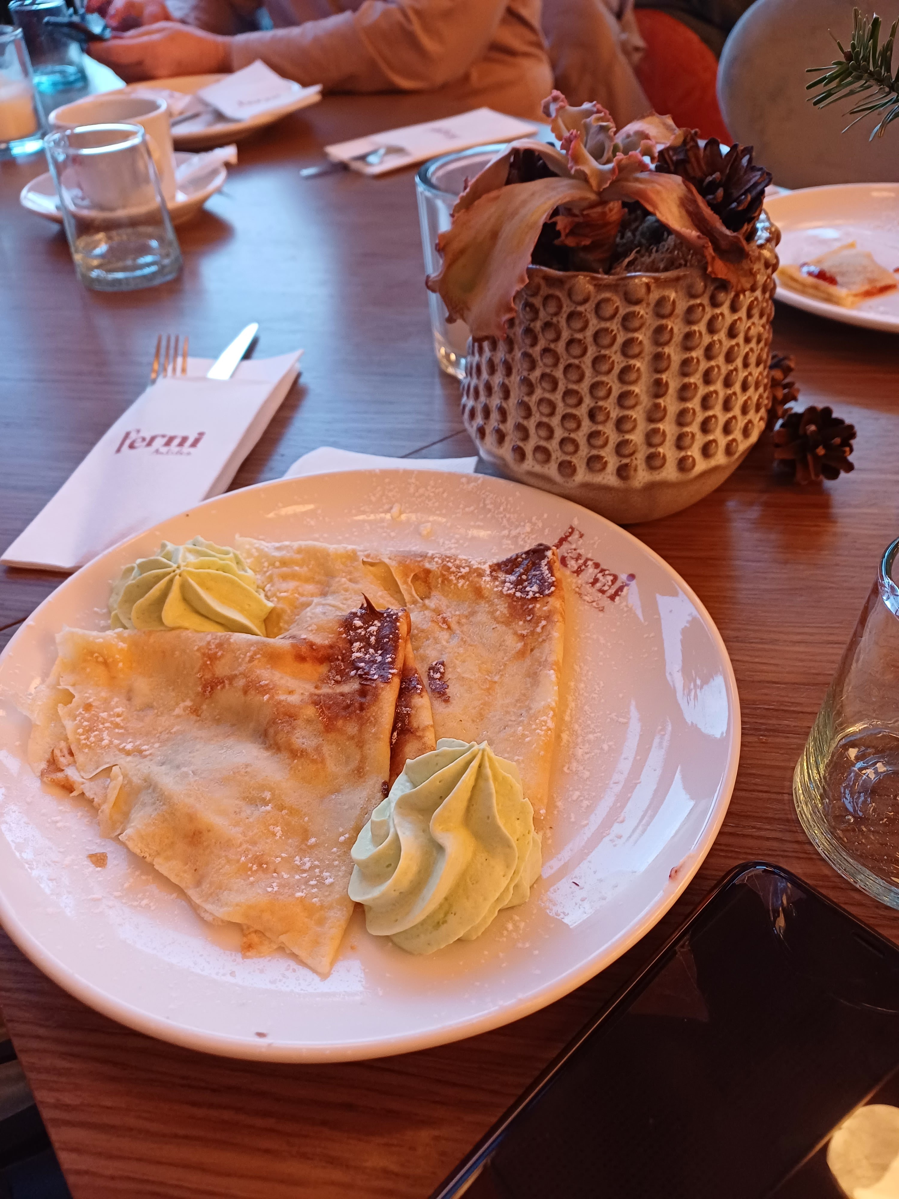 Au top ! La décoration, la situation dans la ville ( au centre sur une grande place) avec une large terrase, le personnel : tout était vraiment agréable ! (+ les toilettes originales et atypiques dans le bon sens ^^) Bref à visiter, Ferni vaut le détour !!