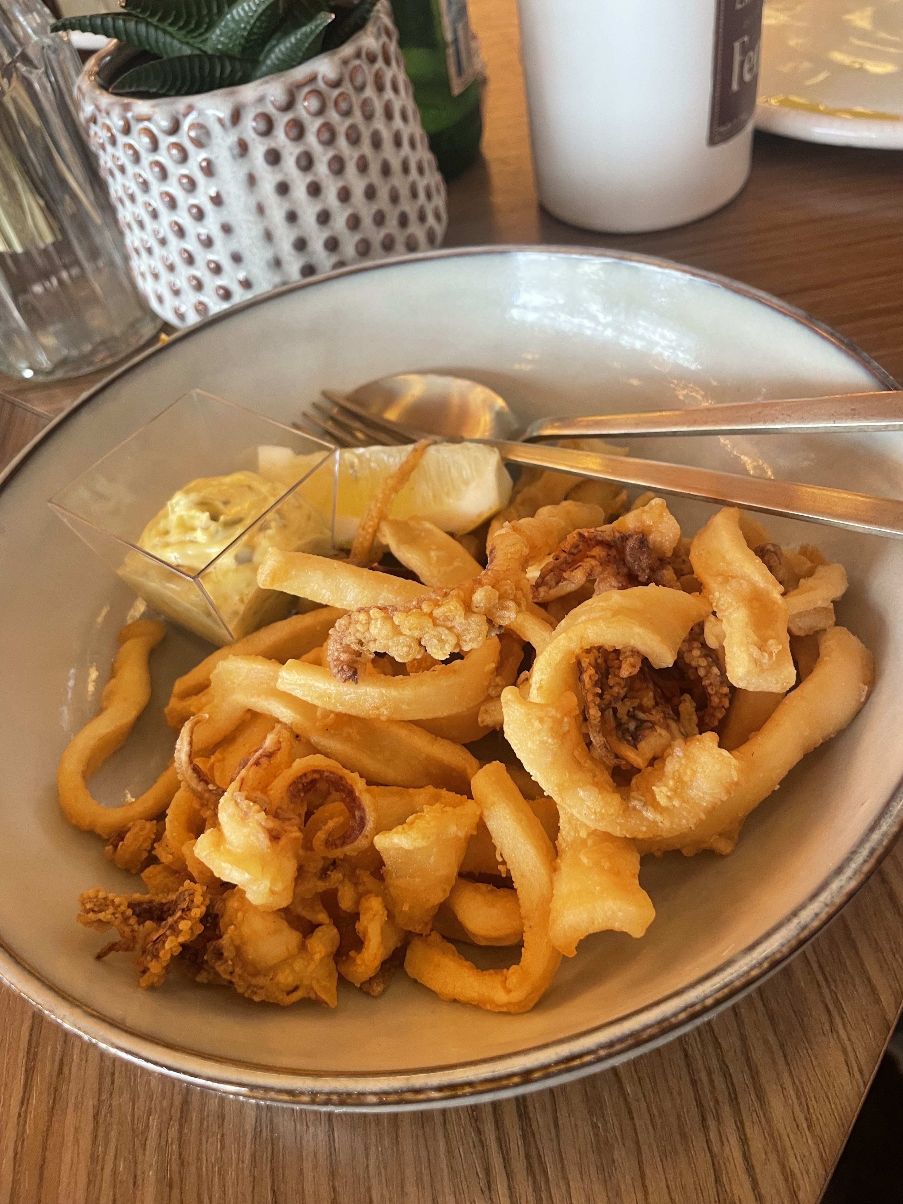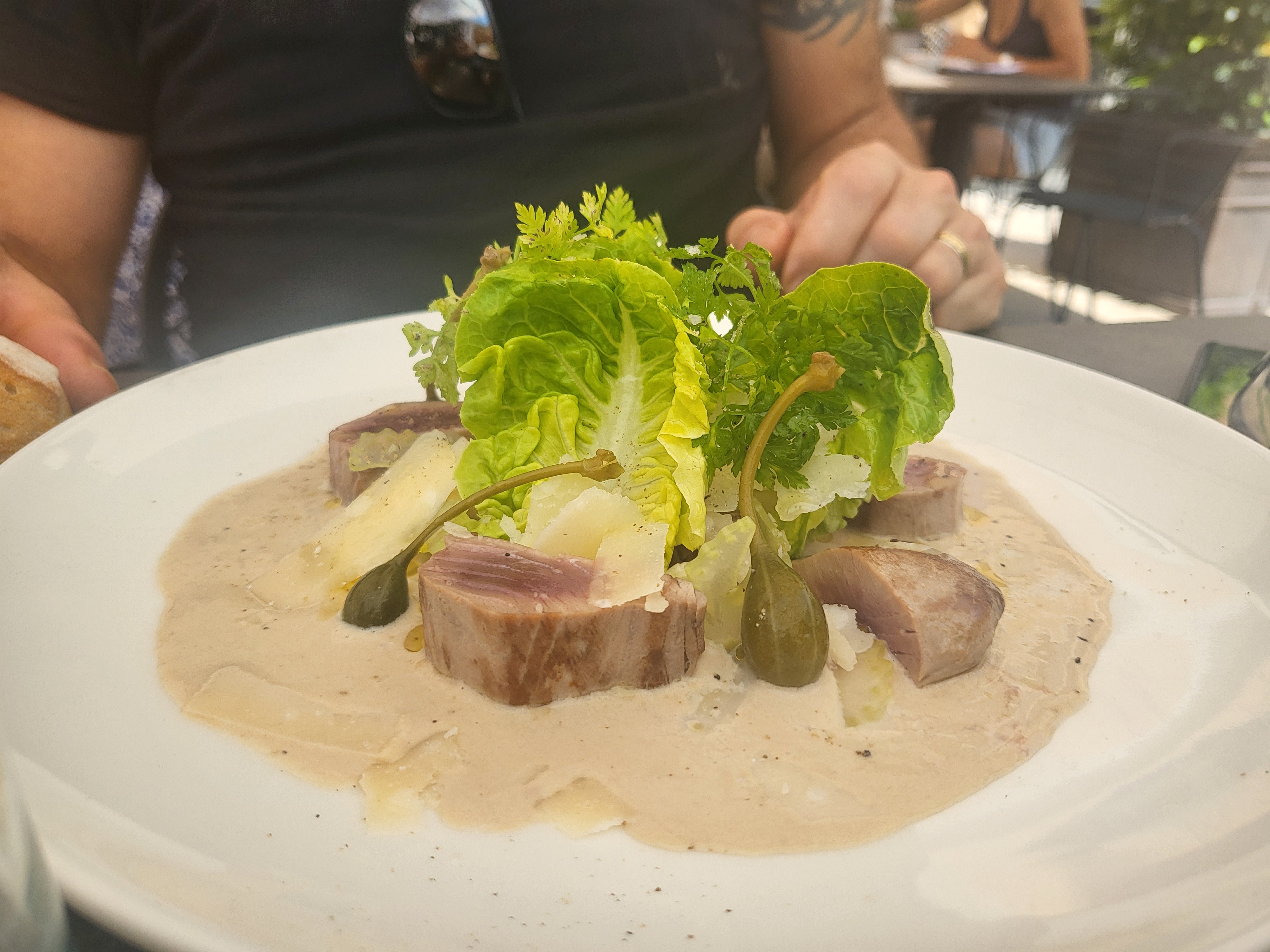 Super! Nous sommes tombés sur ce restaurant par hasard, attirés par la beauté de la décoration et le soin avec lequel les détails ont été étudiés. Personnel compétent et gentil, dès que nous nous sommes assis, ils nous ont apporté du pain avec une excellente huile d'olive extra vierge d'Italie. J'ai eu une salade niçoise : bien assaisonnée, avec des ingrédients frais et bien cuisinés (croustillants comme c'était écrit sur le menu). Service rapide et impeccable. Hautement recommandé!
